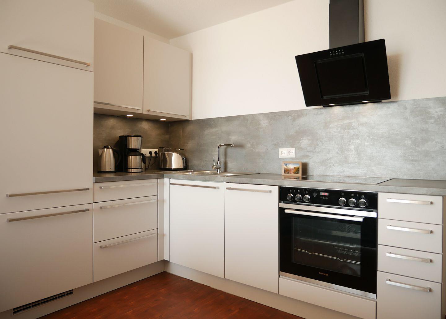 Die integrierte Küche verfügt über viele technische Geräte, die Sie für die Zubereitung Ihrer Mahlzeiten benötigen. Dazu gehören ein Herd mit Backofen, Geschirrspülmaschine, Kühlschrank mit Gefrierfach, Kaffeemaschine und vieles mehr.