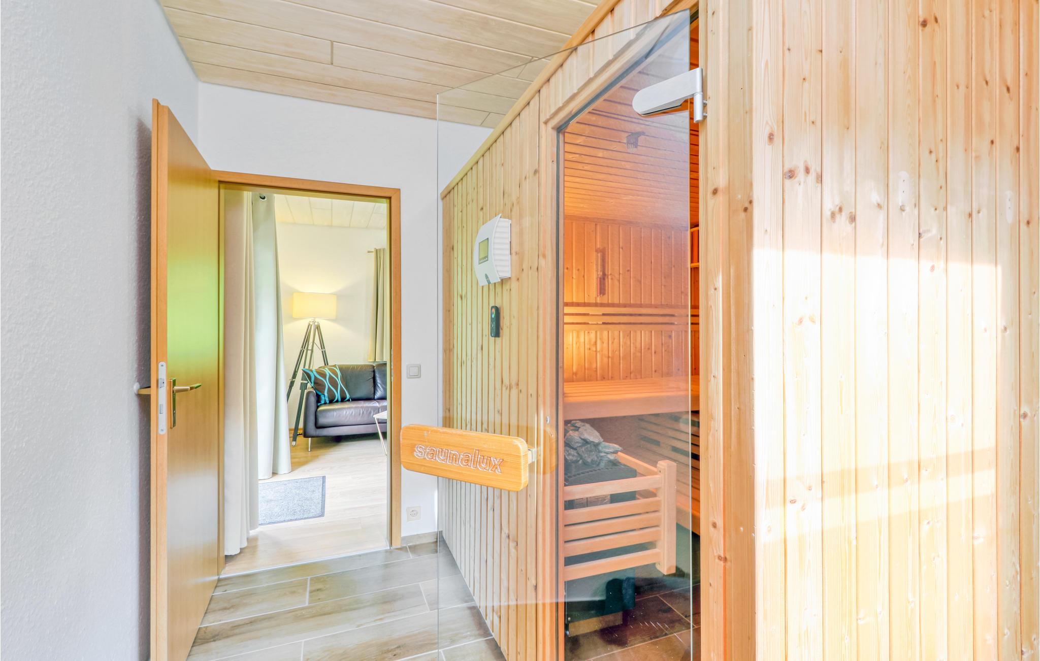 Huset fordeler sig over to etager og har med fire soveværelser plads nok til en afslappende ferie for syv personer og et kæledyr. I stueetagen er der en dejlig opholdsstue, et veludstyret køkken, et badeværelse og en sauna. De fire soveværelser og et andet badeværelse ligger på første sal i huset. Det smukke opholdsstue med en stor sofa og et langt spisebord lægger op til hyggelige aftener med familie eller venner.