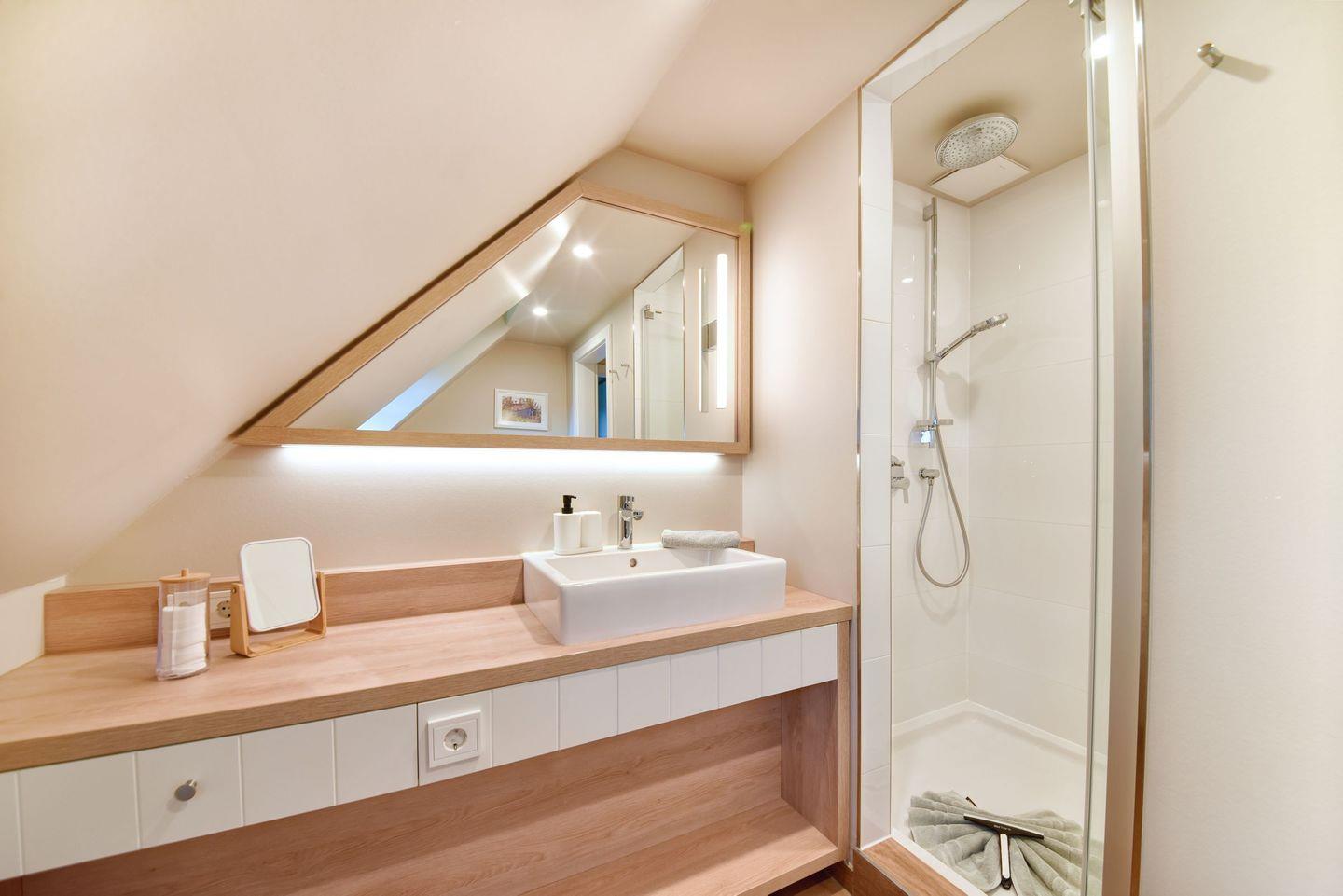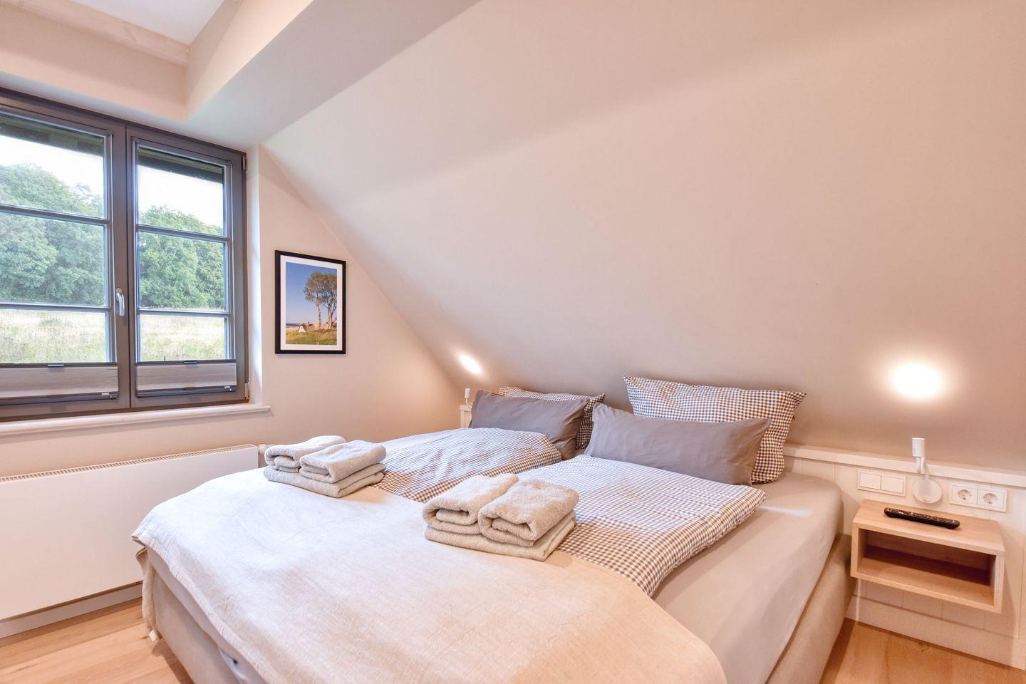 Zubereiten können Sie sie in der offenen und modernen Küche. Alle Geräte sind hochwertig. Ein komplettes Geschirr-Service befindet sich in den Schränken. Abwaschen muss hier zum Glück niemand. Es gibt einen Geschirrspüler. Weiter geht’s mit den beiden komfortablen Schlafzimmern. Ein bequemes Boxspringdoppelbett (180 x 200) und zwei Boxspringeinzelbetten (90 x 200) versprechen erholsame Träume. Die Zimmer verfügen über je einen Kleiderschrank und ebenfalls einen Flat-TV. Zwei Bäder mit Dusche und WC sorgen für genügend Raum zum Frischmachen. Das Bad im EG ist zudem mit einer Finnischen Sauna ausgestattet. Bei Anreise liegen Handtücher für Sie bereit und die Betten sind bezogen.