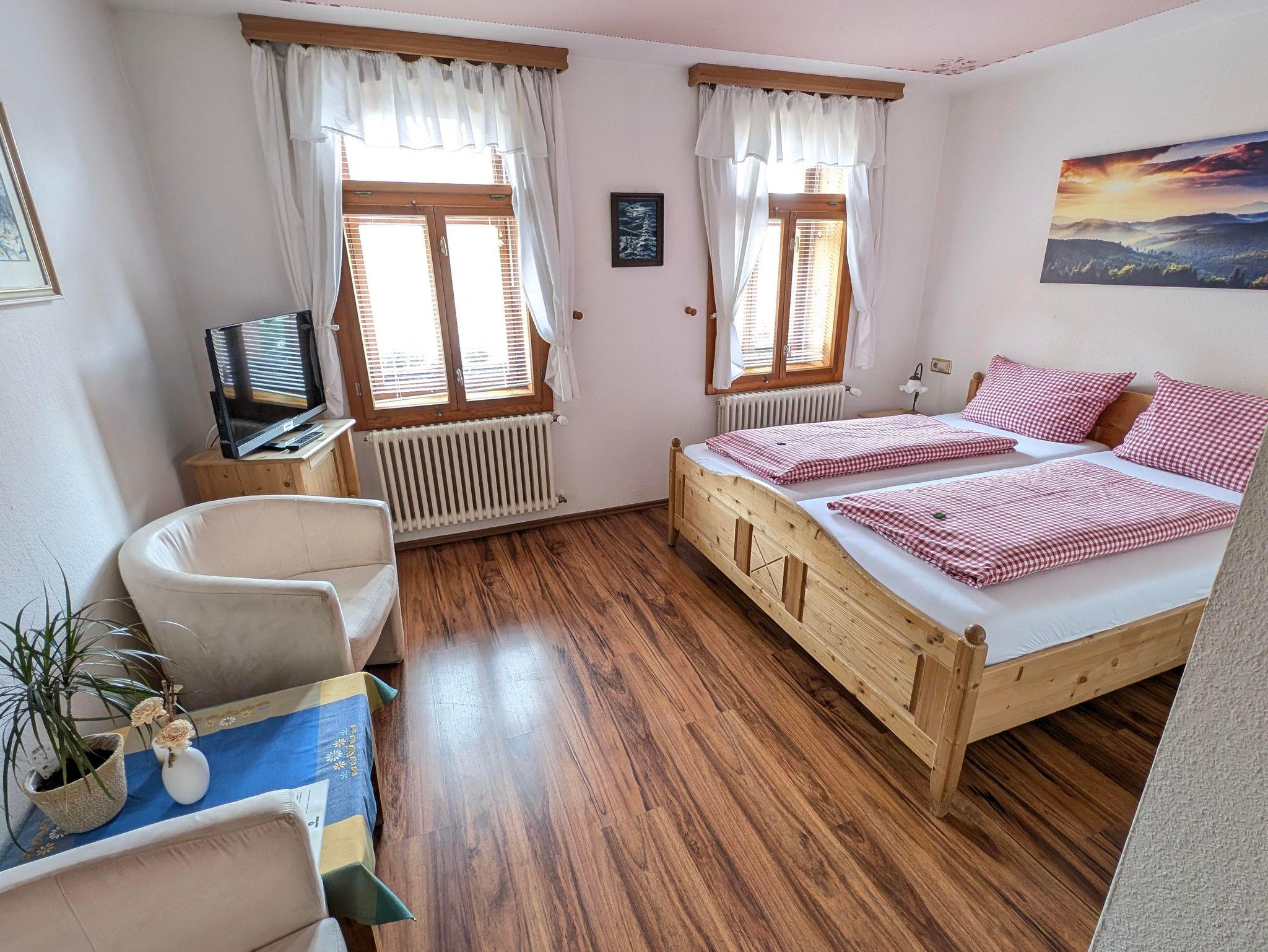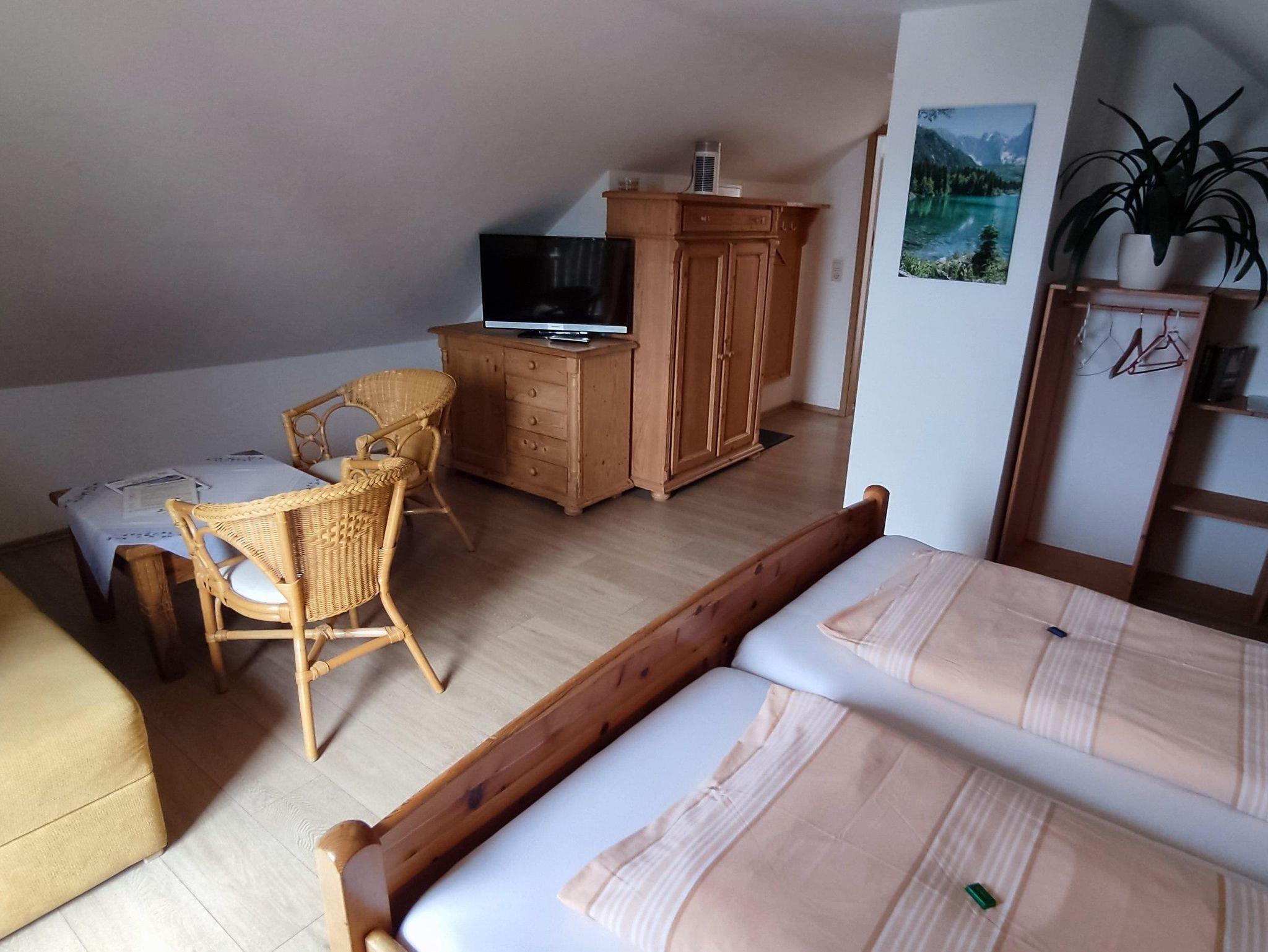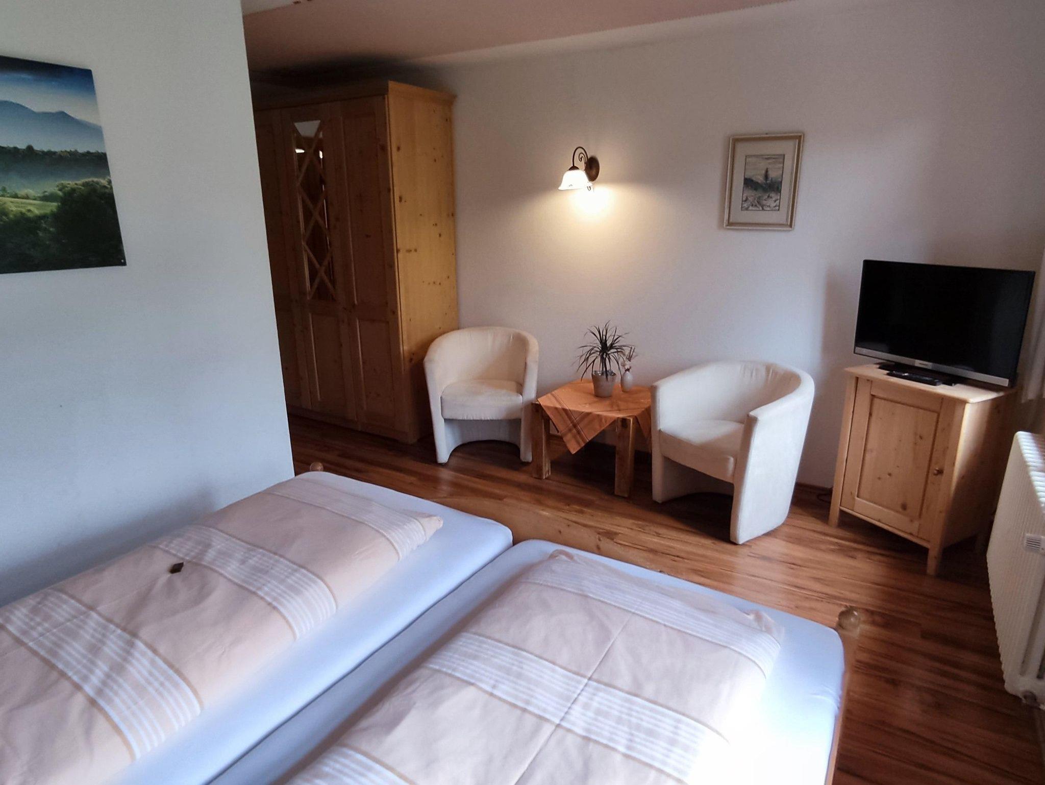 Ausstattung im Überblick: Blick zum Aschberg, Satelliten-TV, Dusche, WC, Preis zzgl. Kurtaxe