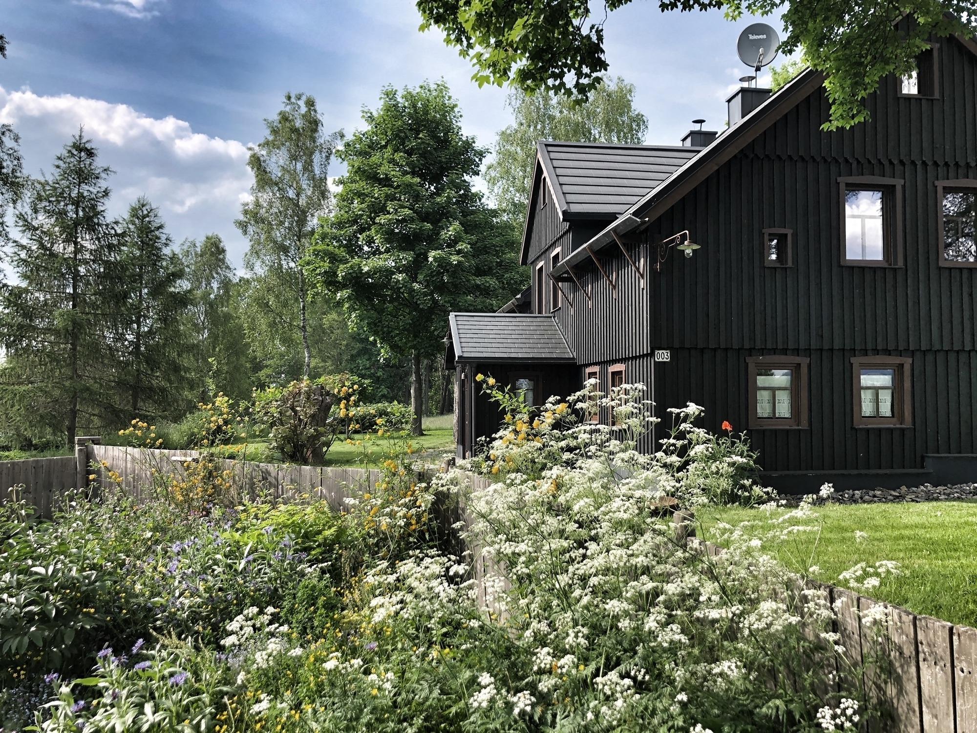 In unserer Berghütte haben alle Räume einen freien Blick - entweder ins Böhmische in der Tschechischen Republik oder ins Erzgebirge. Von der ruhigen Terrasse im eigenen Gartenparadies auf 2.000 m² (komplett umzäunt) schweift der Blick über Wiesen in die umliegenden Berge.