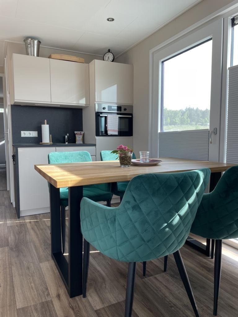 Die moderne Wohnküche ist vollständig ausgestattet und macht das gemeinsame Kochen zum Genuss: Kühlschrank, Ceranfeld, Geschirrspüler, Backofen mit Mikrowellenfunktion, Filter-Kaffeemaschine, Toaster, Wasserkocher sowie Geschirr und Besteck stehen Ihnen zur Verfügung – alles, was gute Hobbyköche brauchen. Während Sie das Essen vorbereiten, plätschern die Wellen leise gegen den Ponton – die passende Kulisse ist inklusive.