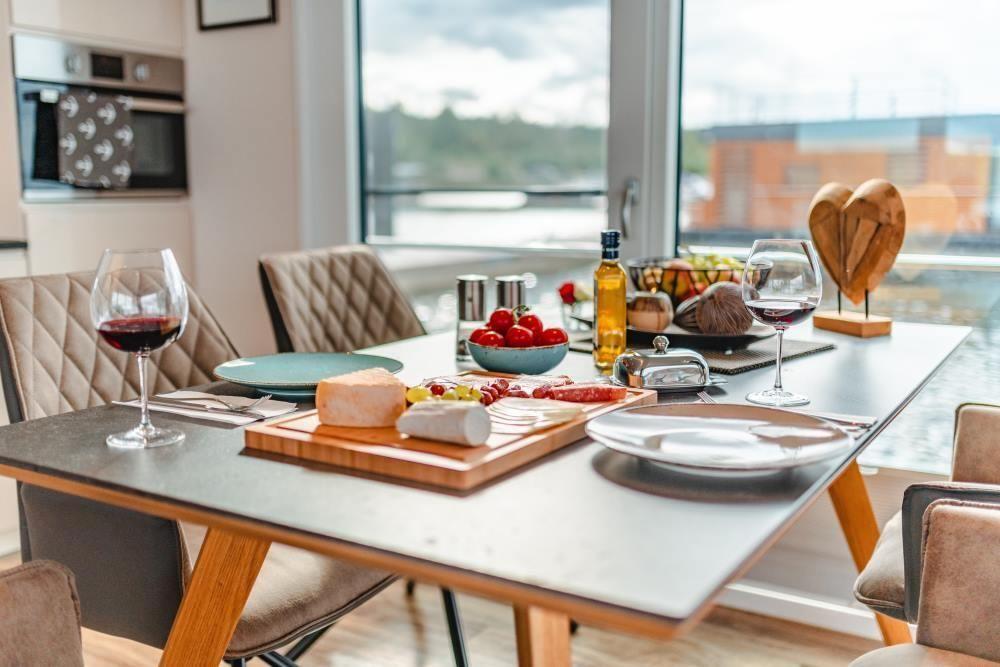 Floatinghouse Skyline: Ferienhaus auf dem Wasser mit Terrasse