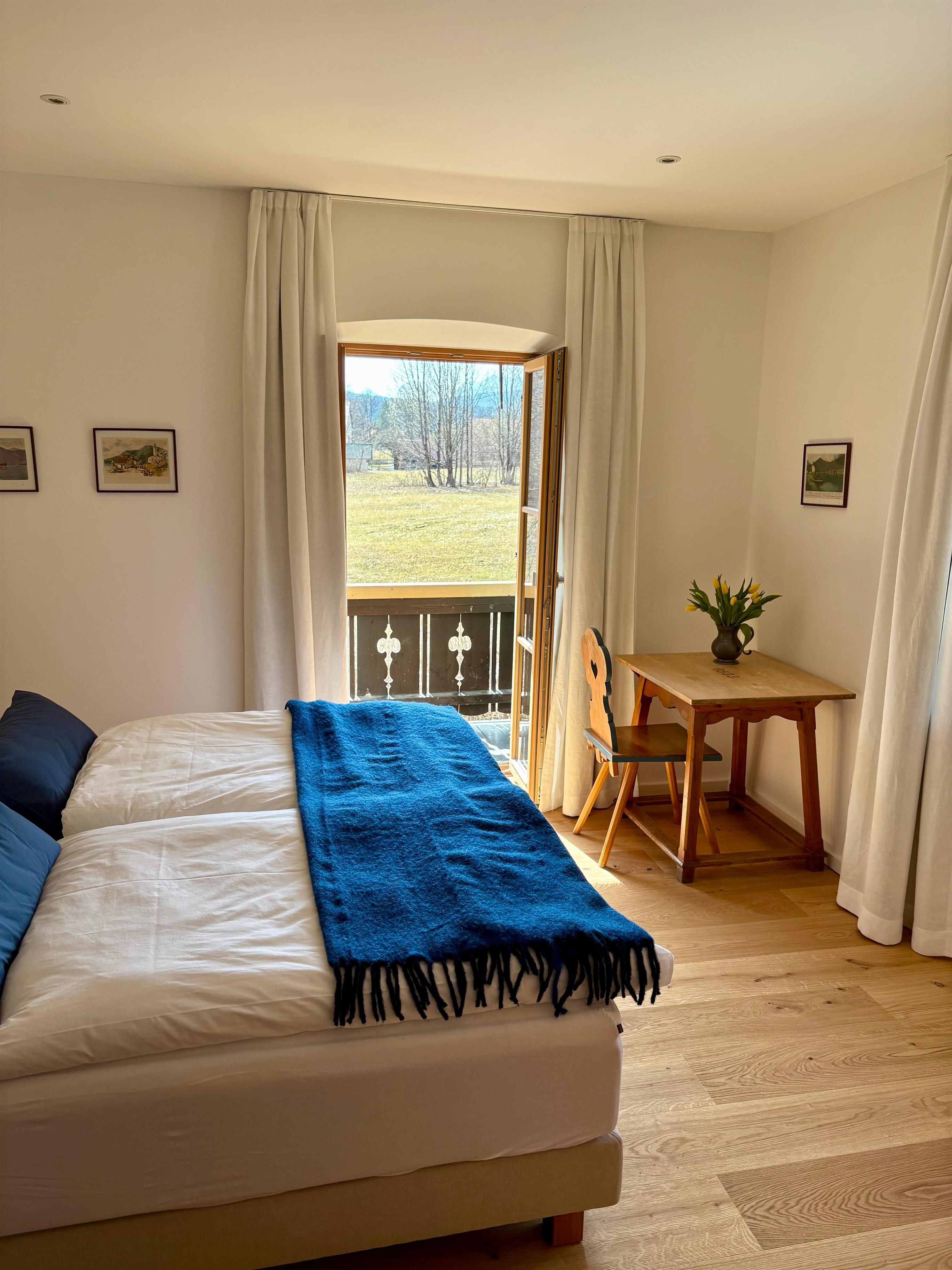 Draußen wartet ein echtes Highlight: eine sonnige Terrasse und ein riesiges Grundstück mit über 2500?qm Garten, das Freiheit, Natur und Privatsphäre vereint. Der Walchensee liegt direkt gegenüber nah genug, um ihn zu spüren, und weit genug, um die Ruhe des Gartens zu genießen.