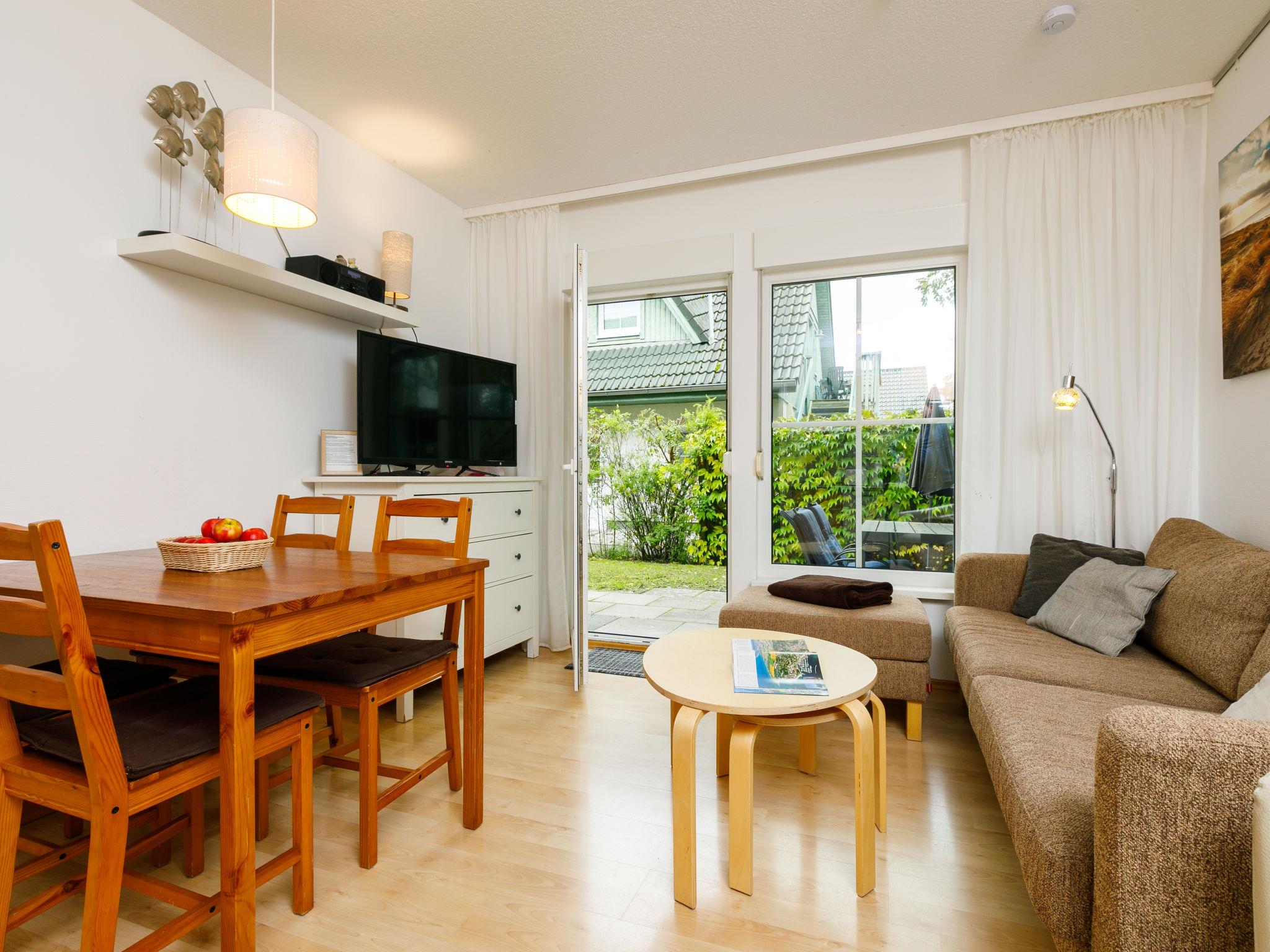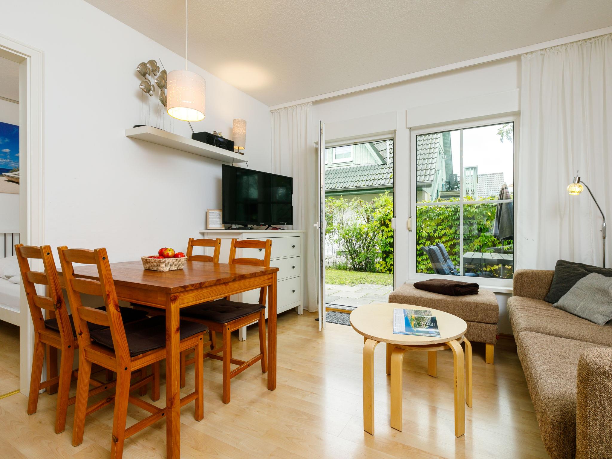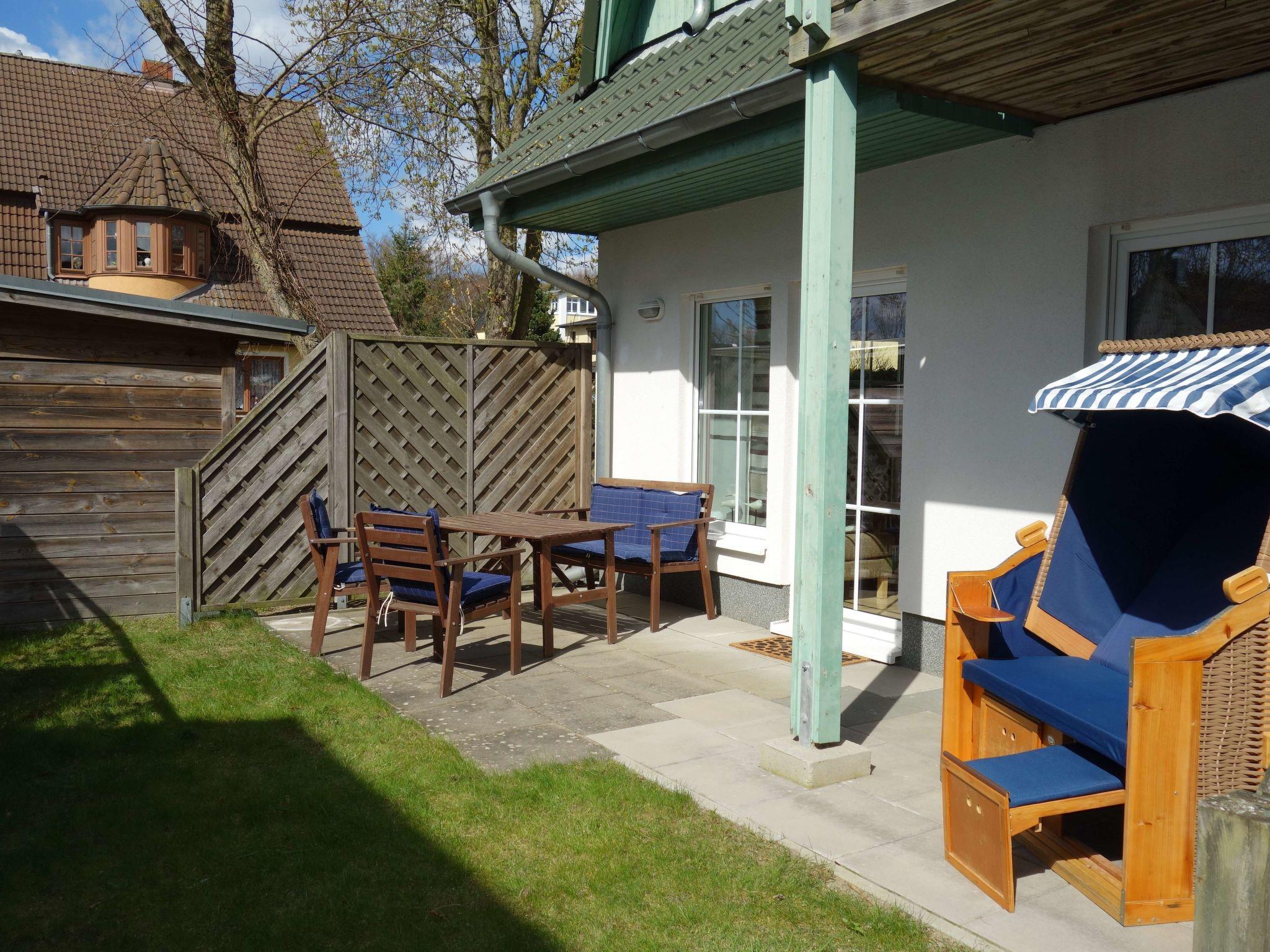 "Am Küstenwald", 3-room apartment 40 m2, on the ground floor. Cosy furnishings: living/dining room with satellite TV (flat screen), radio and DVD. Exit to the terrace. 1 room with 1 double bed. 1 room with 1 x 2 bunk beds. Open kitchen (oven, dishwasher, 2 ceramic glass hob hotplates, toaster, kettle, microwave, electric coffee machine). Shower/WC. Terrace. Terrace furniture. Facilities: children's high chair, baby cot. Internet (WiFi, free). Please note: non-smokers only. Maximum 2 pets/ dogs allowed. Smoke alarm.