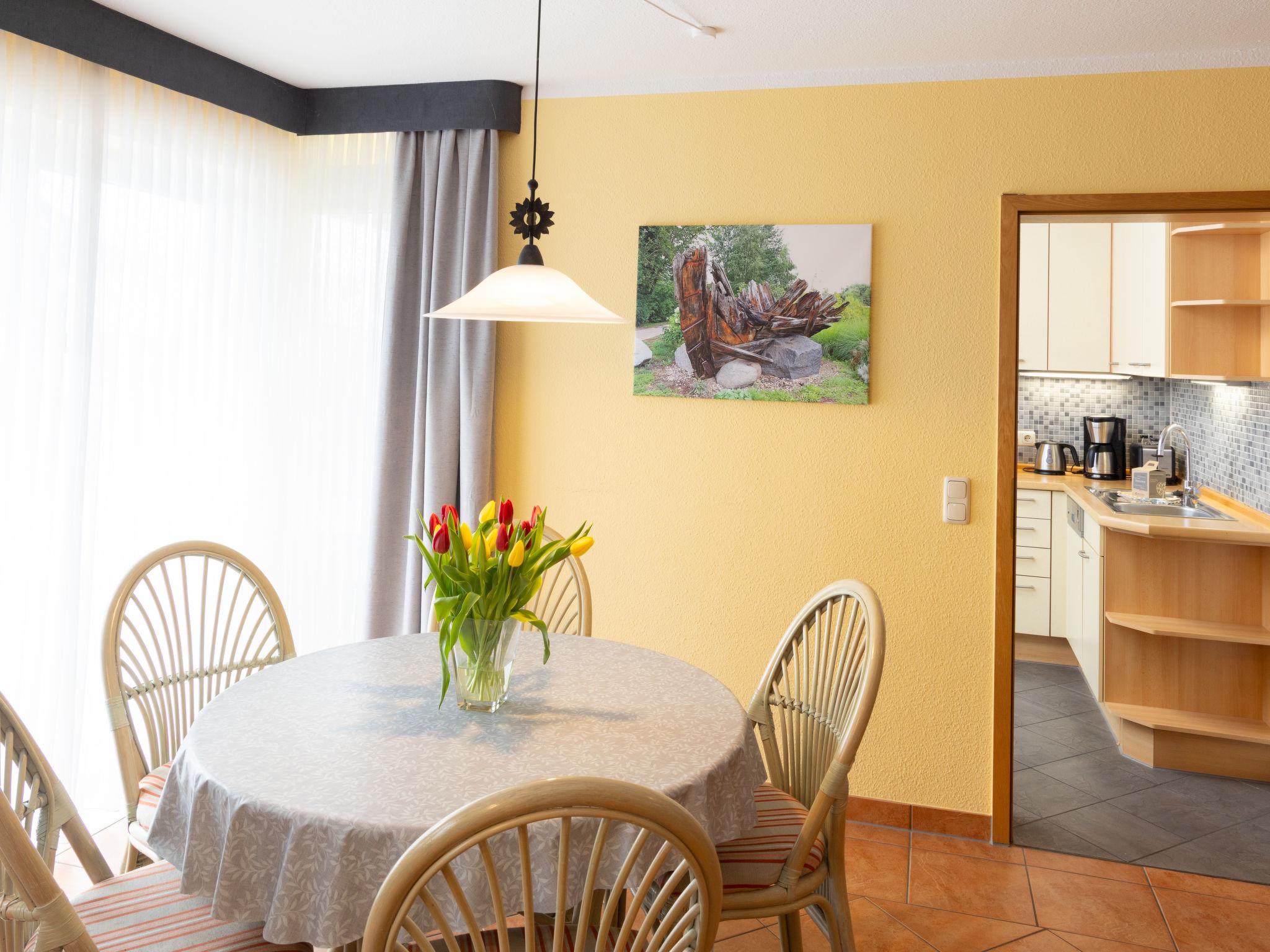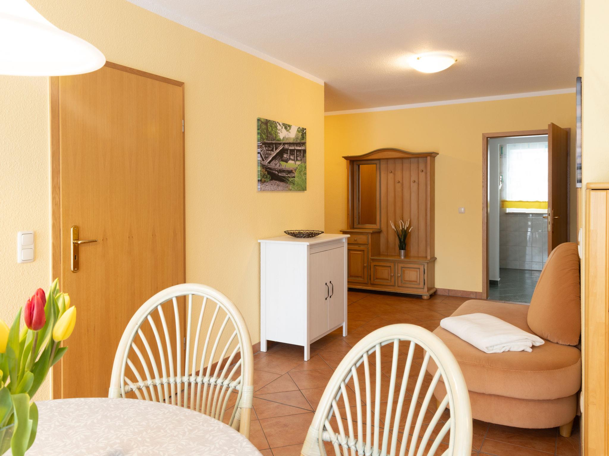 "Ritter", 2-room apartment 75 m2, on the ground floor. Cosy furnishings: living/dining room with 1 double sofabed and cable TV (flat screen), radio. Exit to the terrace. 1 room with 1 double bed (200 cm, length 200 cm). Kitchen (oven, dishwasher, 4 induction hot plates, toaster, kettle, microwave, electric coffee machine). Bath/shower/WC, double hand-basin, Sauna. Terrace. Terrace furniture. Facilities: children's high chair, baby cot. Internet (WiFi, free). Please note: non-smokers only. Smoke alarm.