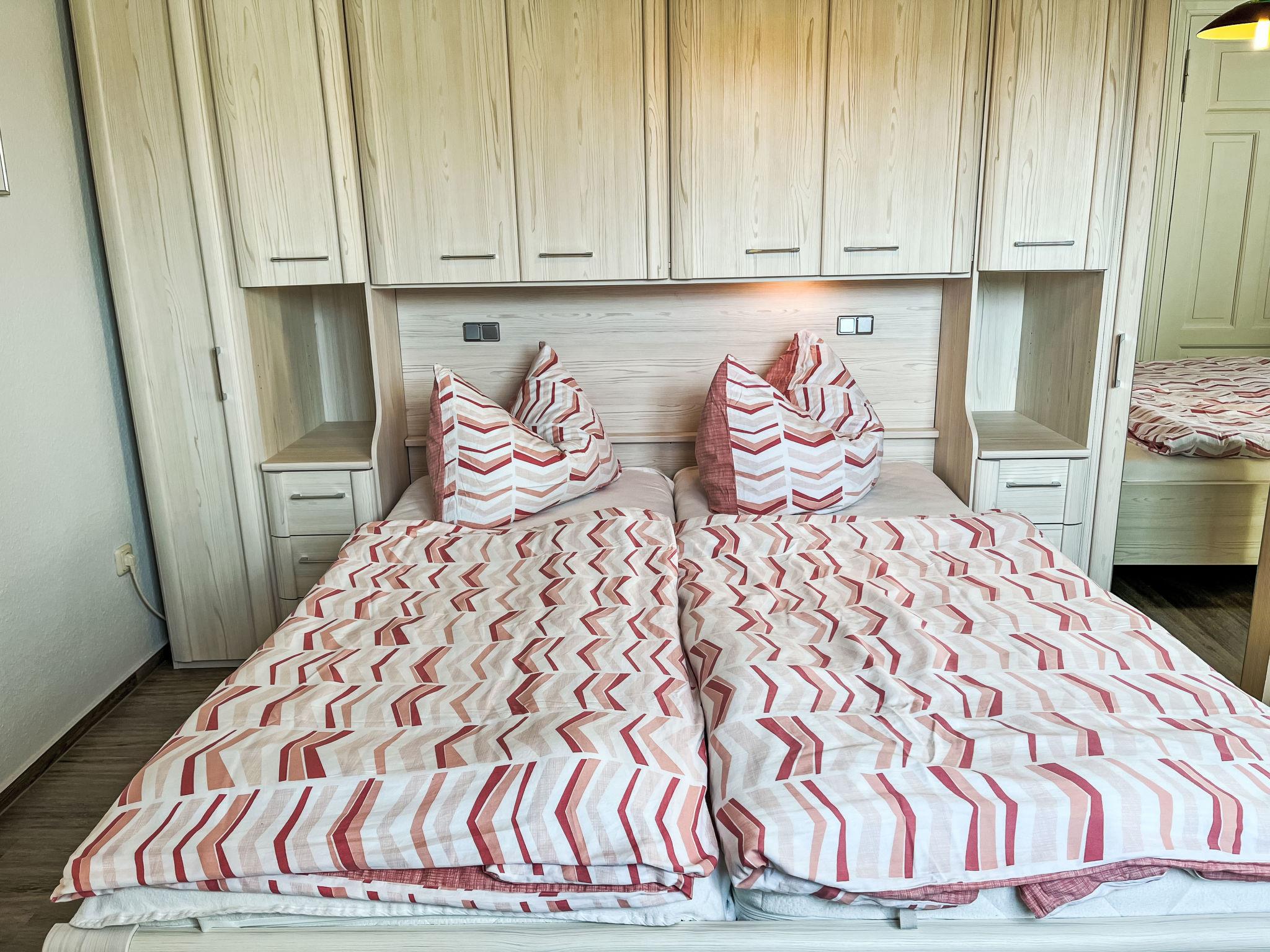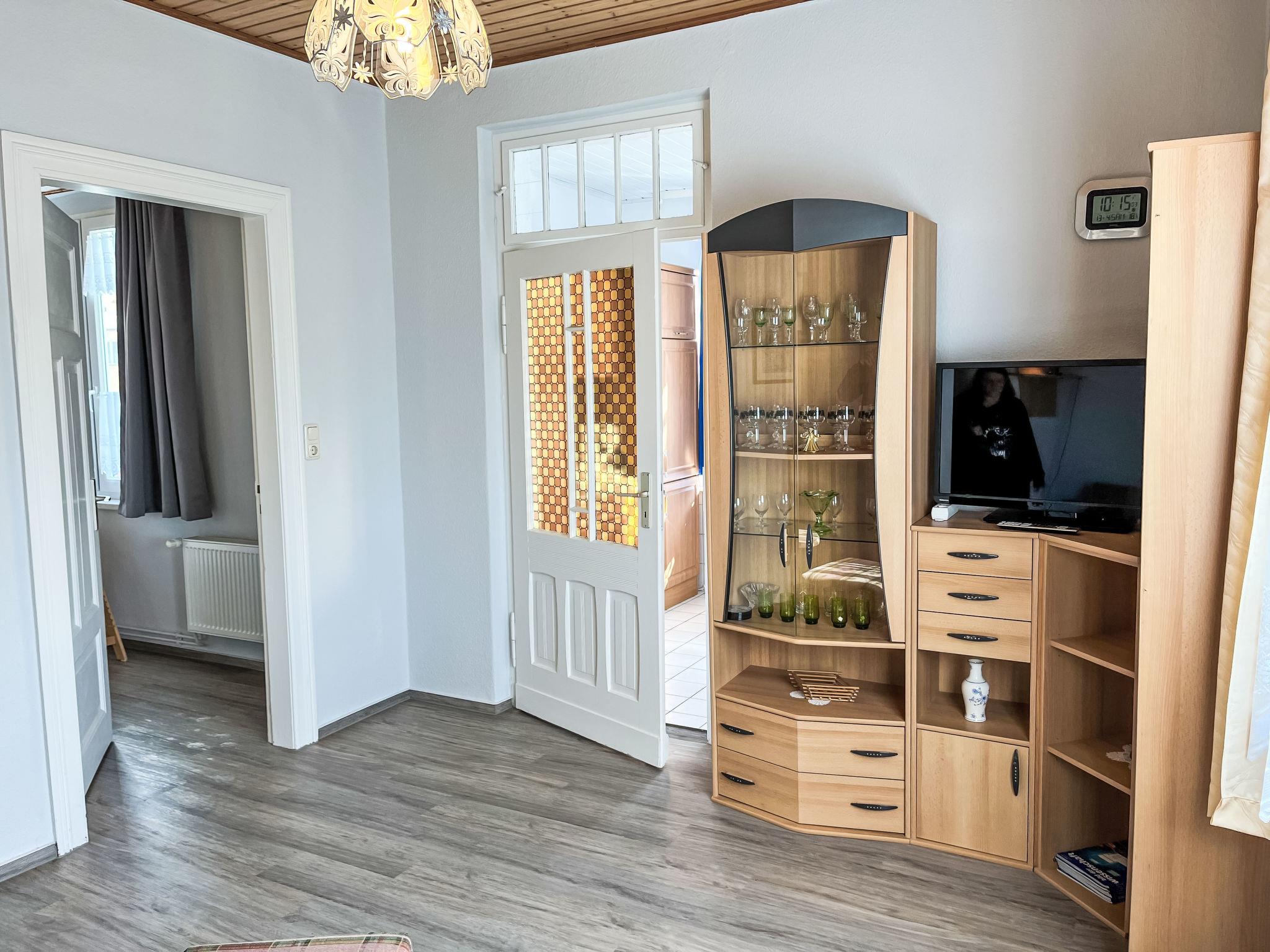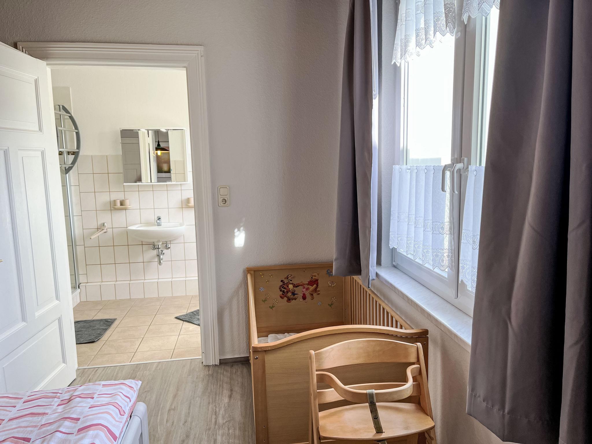"Burgfried (App. 1)", 2-room apartment 50 m2, on the upper floor. Practical furnishings: living room with cable TV (flat screen), radio. 1 room with 1 double bed. Kitchen (4 hot plates, oven, toaster, kettle, electric coffee machine) with dining table. Shower/WC. Patio. Facilities: children's high chair, baby cot. Internet (WiFi, free). Parking (1 car) at the house. Please note: non-smokers only. Smoke alarm. Steps inside the apartment. Steep stairs to the upper floor.