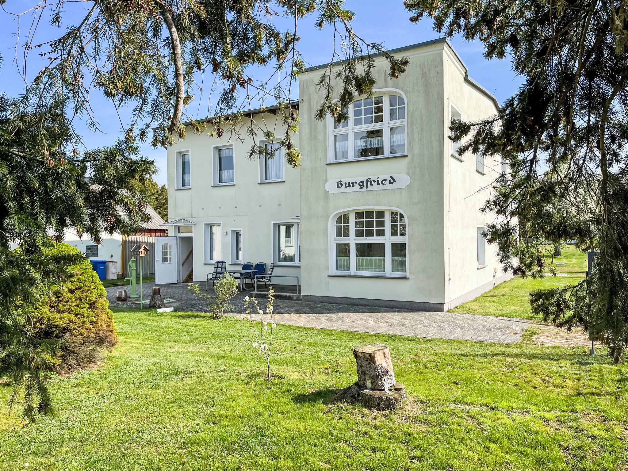 House "Burgfried". 5 apartments in the property. In the resort 300 m from the centre of Koserow, 900 m from the sea, from the beach. For shared use: property (fenced) with meadow. In the house: central heating system. Parking on the premises. Supermarket 700 m, restaurant 100 m, bakery 900 m, café, bus stop 550 m, railway station 1.1 km, sandy beach 900 m, thermal baths "Bernsteintherme" 9 km. Golf course (18 hole) 18 km, surf school 9 km, minigolf 500 m. Covered bicycle parking space available (not lockable).