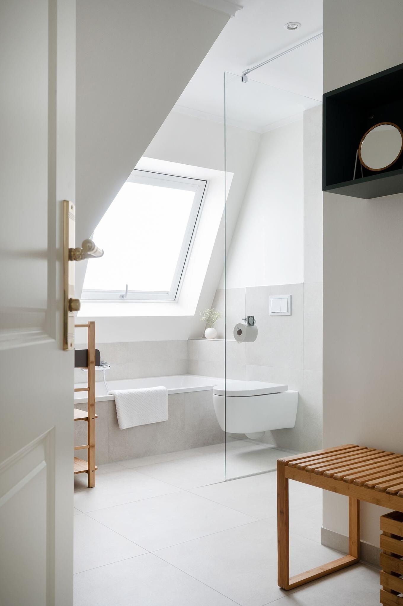 Das Badezimmer ist mit einer bodengleichen Dusche mit Regendusche ausgestattet und bietet mit einer Badewanne ein weiteres Highlight.