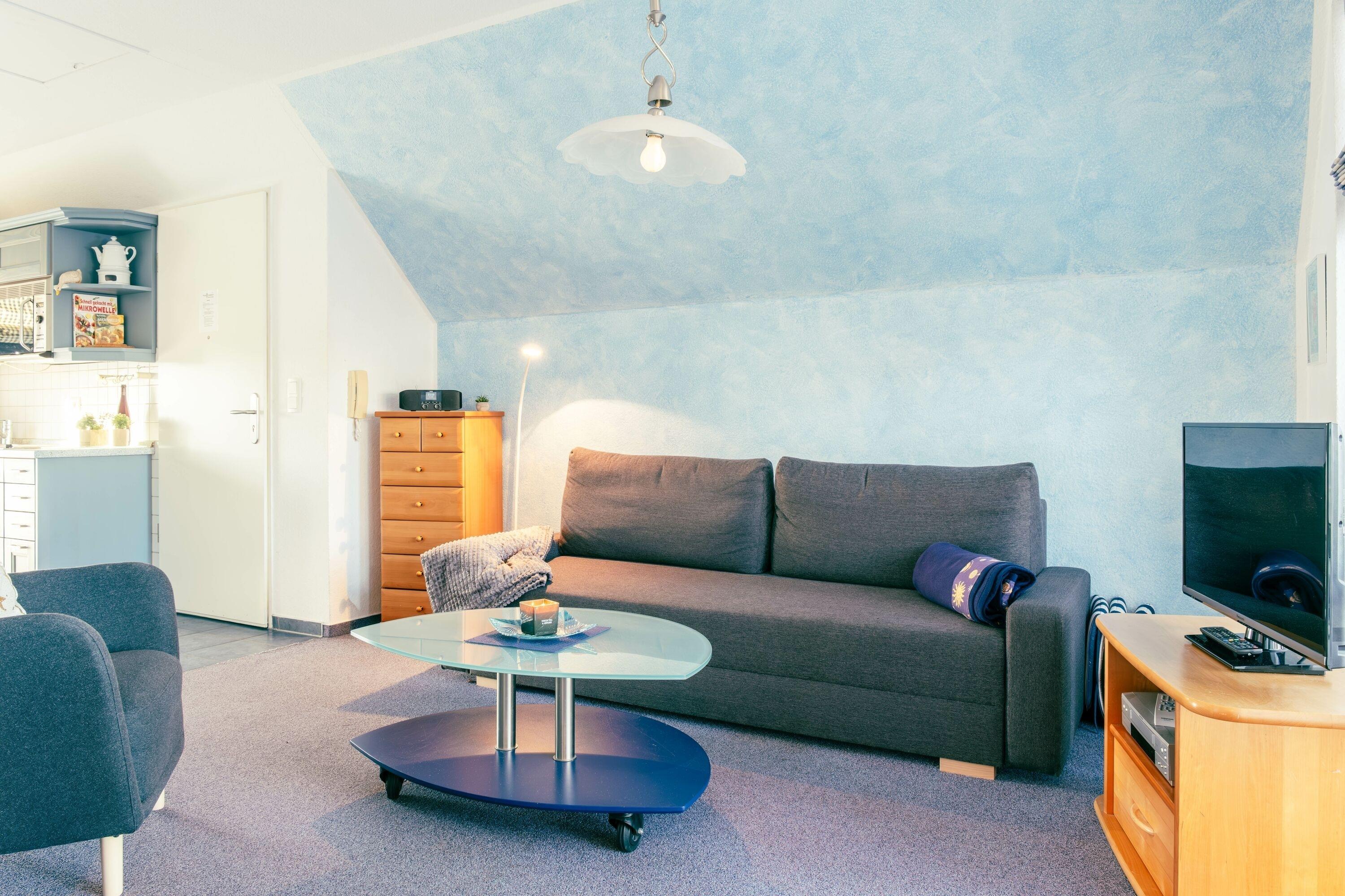 Das Nichtraucherappartement befindet sich im 2. Obergeschoss der Ferienanlage "Seeblick", die im Jahr 1999 erbaut wurde und verfügt über eine Dusche mit WC, einen Wohnraum mit TV und DAB-/Internet-Radio, eine integrierte Küche und einen möblierten Balkon mit Blick auf die Ostsee. Des Weiteren gibt es ein Schlafzimmer mit einem Doppelbett. Das Appartement ist zentralbeheizt und bietet Platz für 2-3 Personen, da es neben dem Doppelbett im Schlafzimmer auch eine Schlafcouch im Wohnraum gibt. Bei der Buchung sind Bettwäsche und Handtücher im Set enthalten.