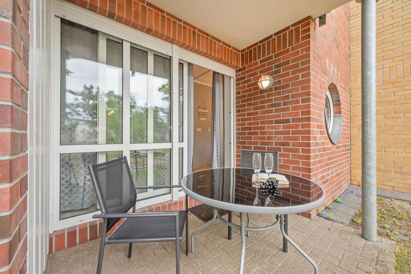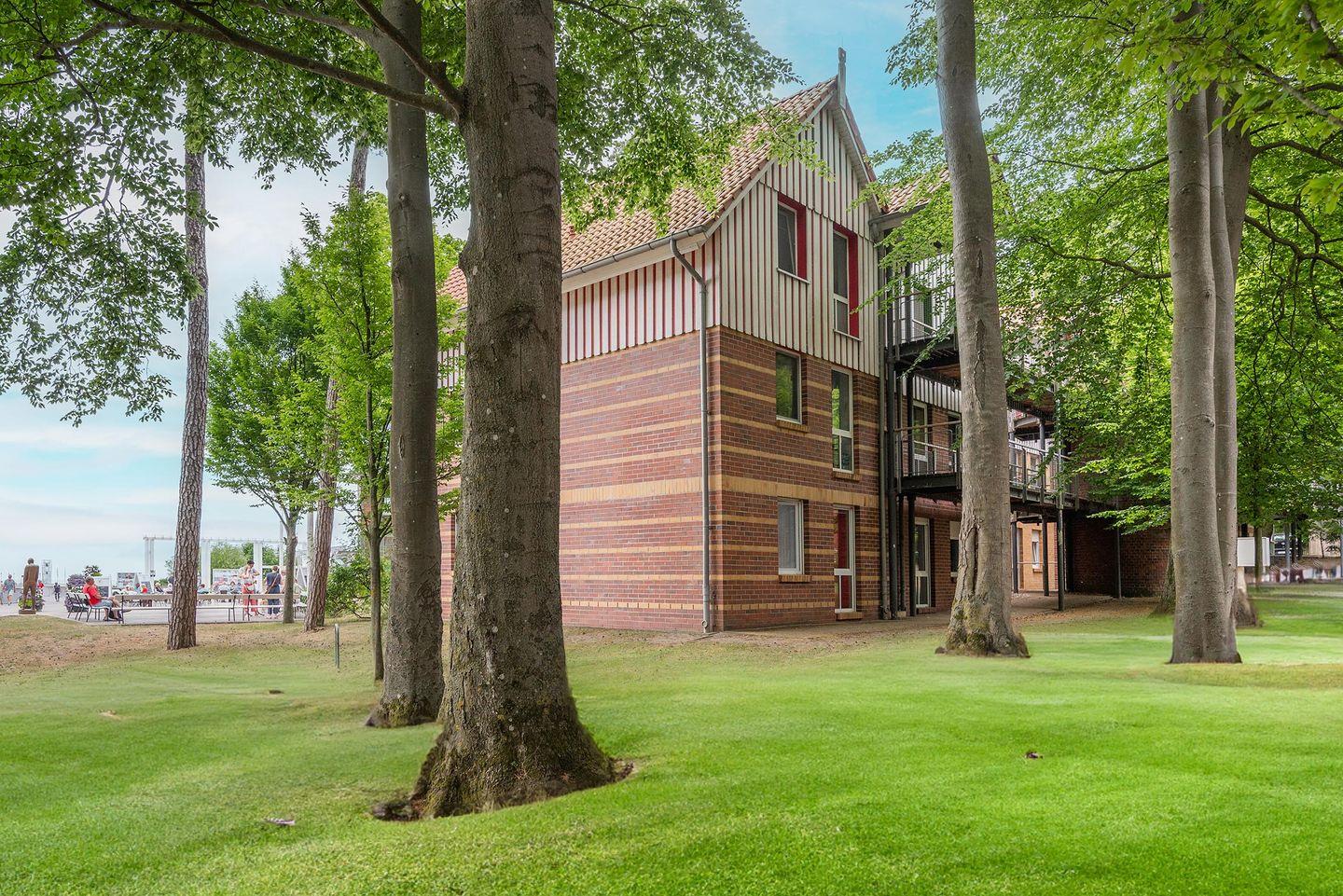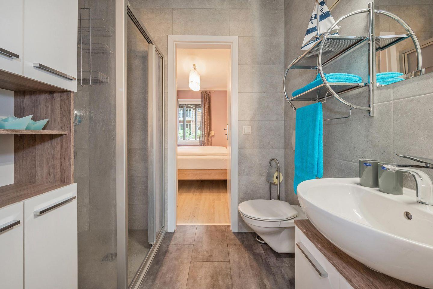 Auf 47 Quadratmetern finden in der Zwei-Raum-Wohnung bis zu drei Personen Platz. Die Wohnung befindet sich in Parterre des Hauses und besticht durch einen maritimen, modernen Einrichtungsstil.