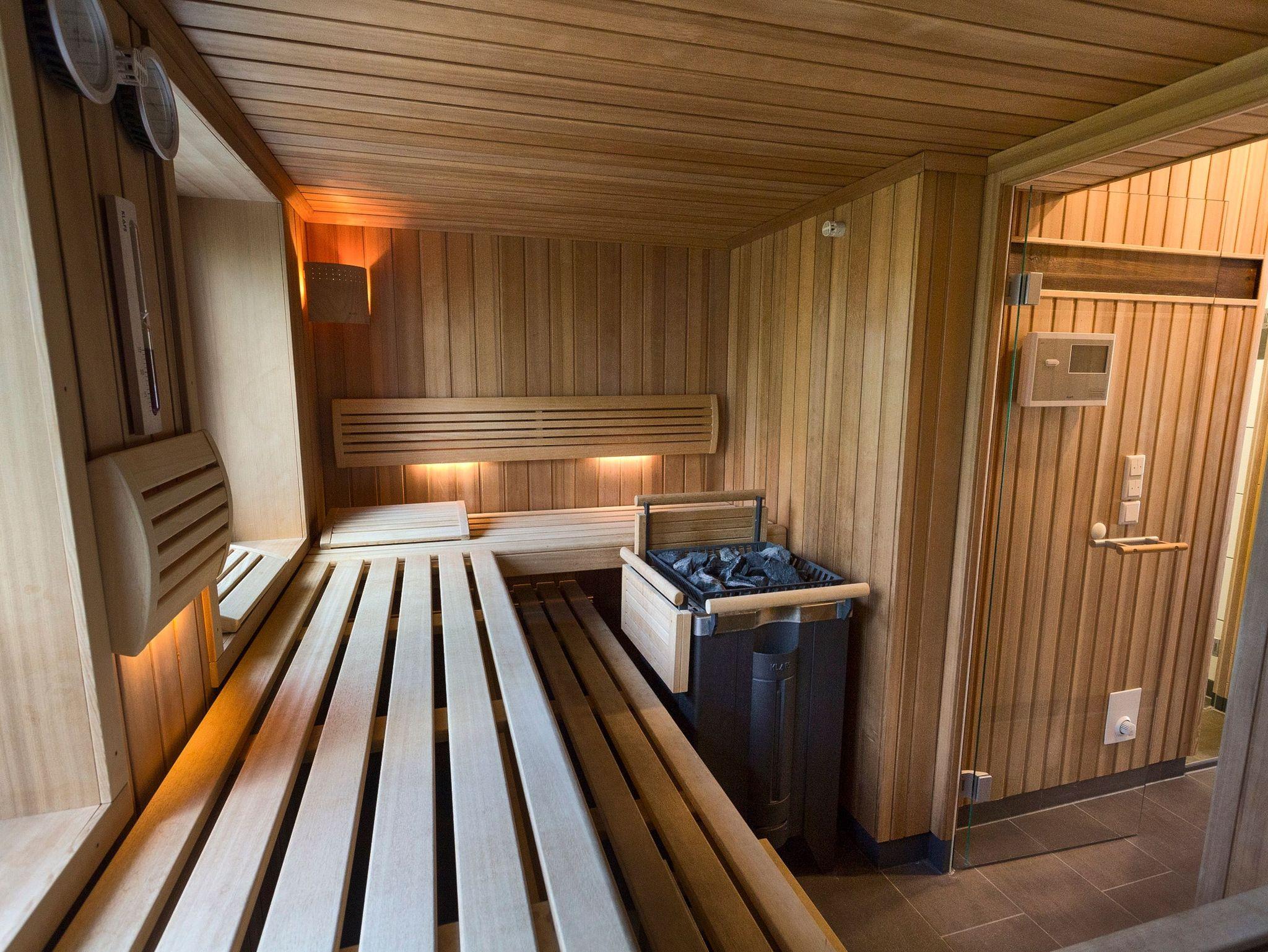 Im Dachgeschoss befindet sich ein 40m² großer Schlafraum/Saunabereich mit separater Dusche (nicht ebenerdig), separatem WC und frei zugänglichen Ruheliegen, Zugang zum Balkon und offen gestaltetem Schlafbereich mit zwei Einzelbetten und TV.