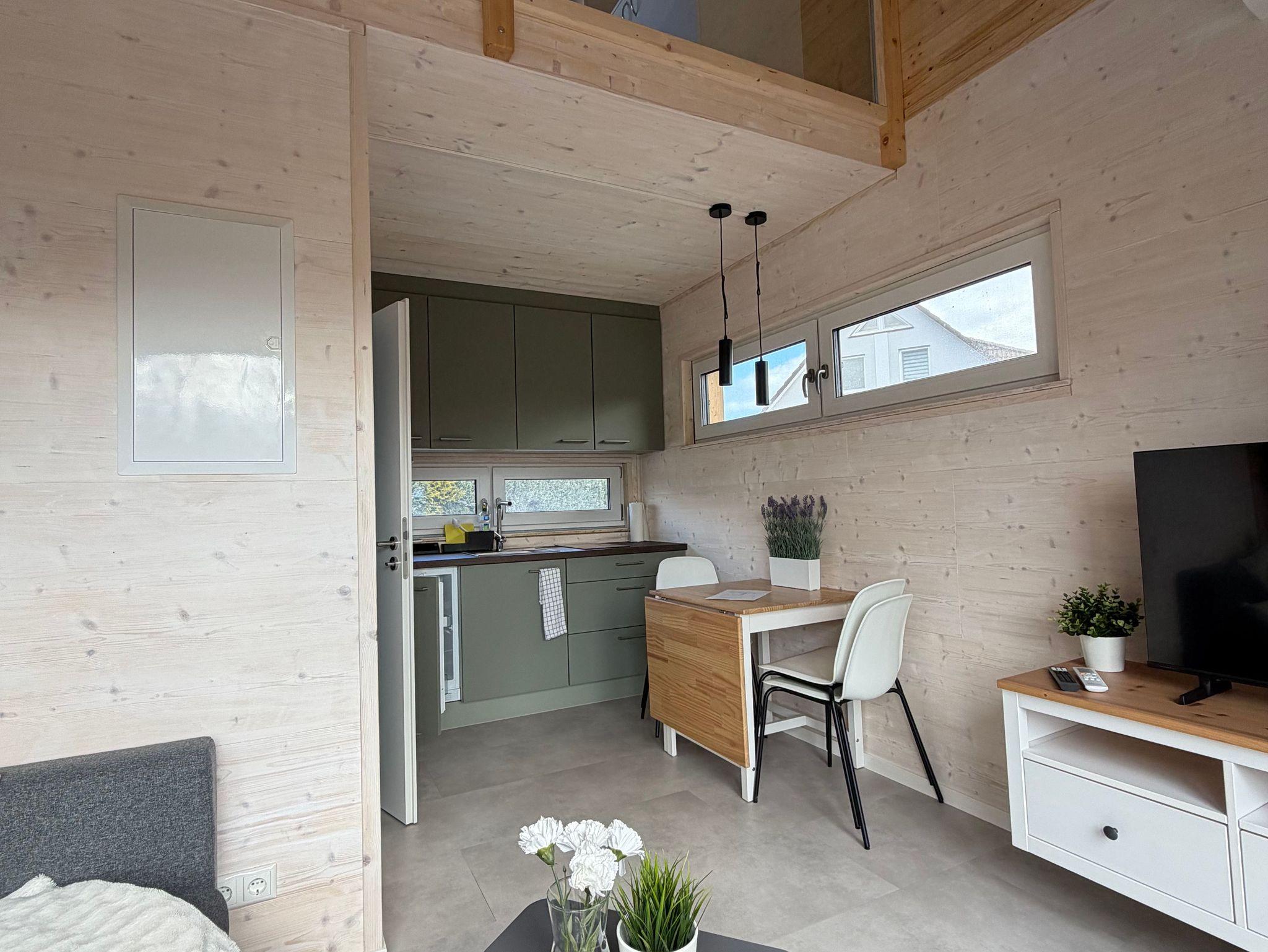 Unser modernes Tiny House in ökologischer Holzbauweise bietet auf ca. 35 m² Platz für bis zu 4 Personen. Freu dich auf stilvolles Design, eine voll ausgestattete Küche, gemütliche Schlafplätze, Klimaanlage (Heizen & Kühlen) und eine sonnige Terrasse.