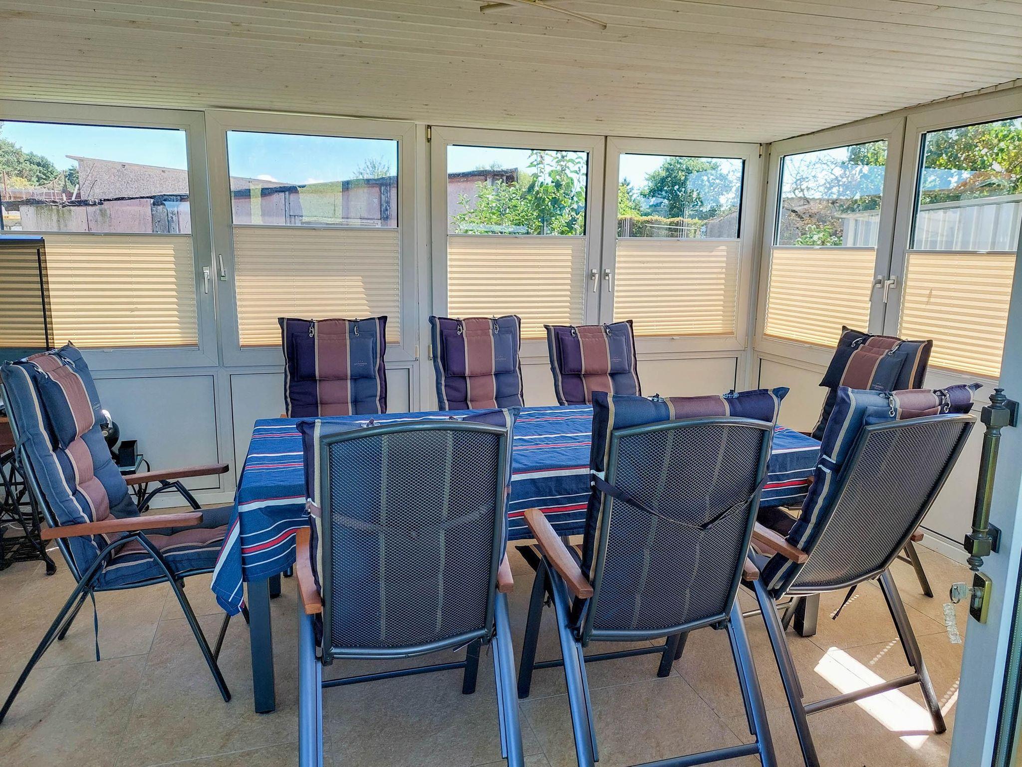 Auf dem Grundstück gibt es eine Terrasse mit Gartenmöbeln und Grill sowie Abstellmöglichkeiten für Fahrräder und Pkw.