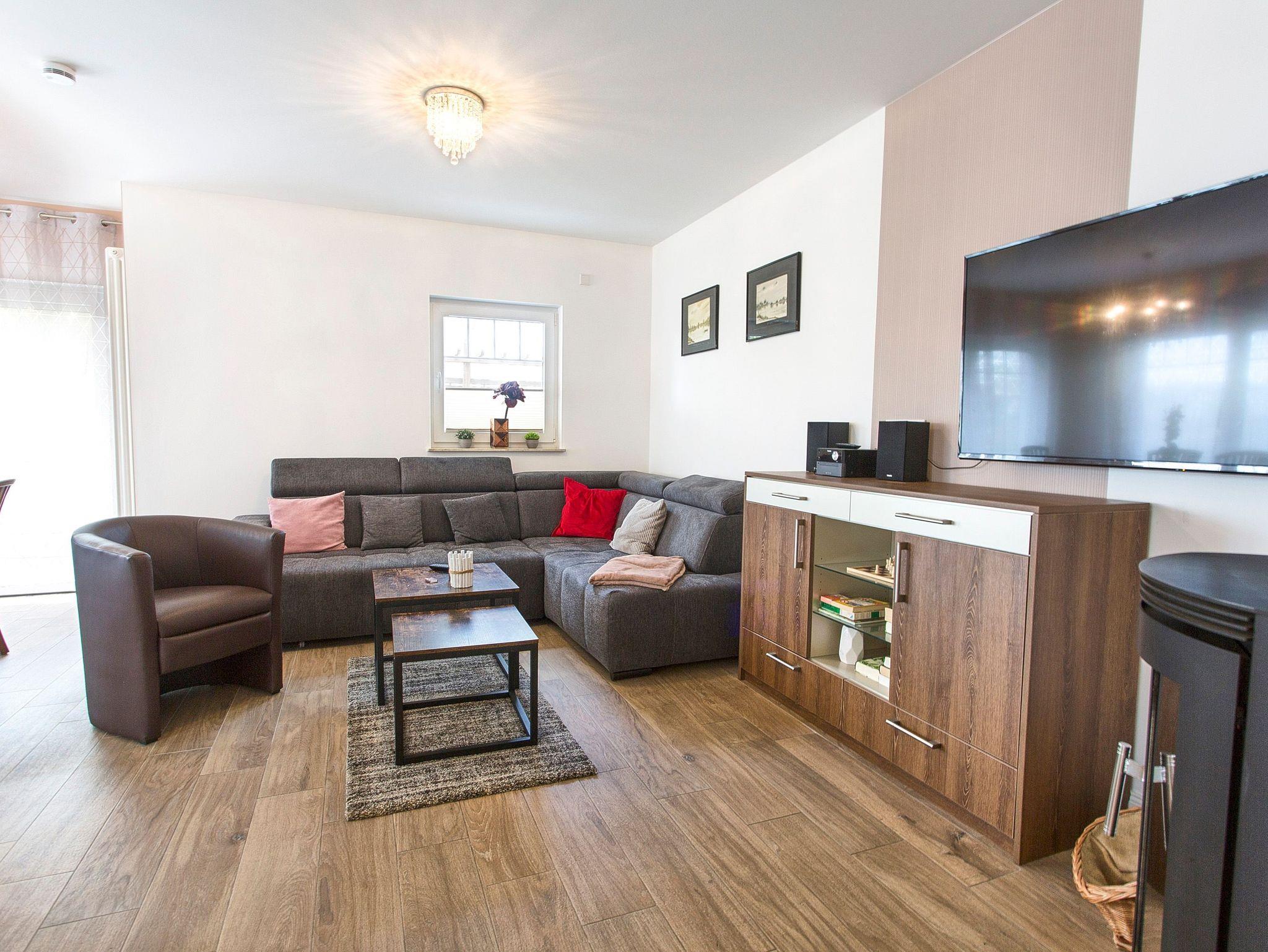 Im großzügigen Wohnbereich erwarten Sie eine gemütliche Wohnlandschaft, Kamin, Smart-TV, eine offen gestaltete Küche sowie ein großer Esstisch. Die Küche ist umfangreich ausgestattet mit Kühlschrank, Gefrierschrank, Ceran-Kochfeld, Backofen, Spülmaschine, Mikrowelle, Kaffeemaschine, Wasserkocher, Toaster und alle den kleinen Dingen des täglichen Bedarfs.