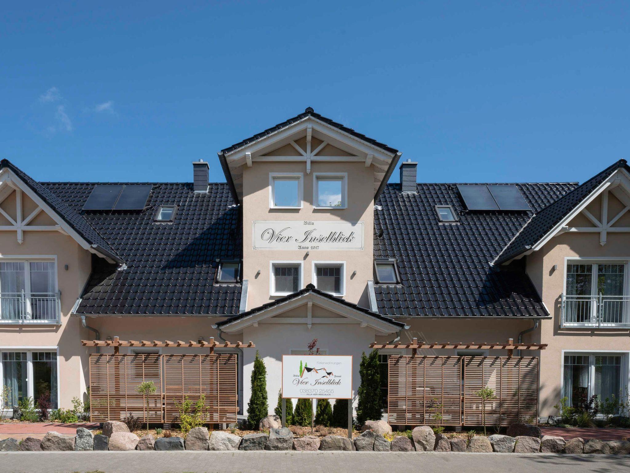 Das Ferienhaus Villa Vier Inselblick mit seinen 4 modernen und komfortabel eingerichteten Ferienwohnungen befindet sich im idyllischen Fischerdorf Freest und wurde 2018 neu erbaut. Genießen Sie Ihre Zeit mit der Familie oder Freunden und entspannen Sie sich in Ihrer eigenen Sauna oder erkunden die vielfältige Umgebung . Auch für einen gemeinsamen Grillabend steht alles bereit.