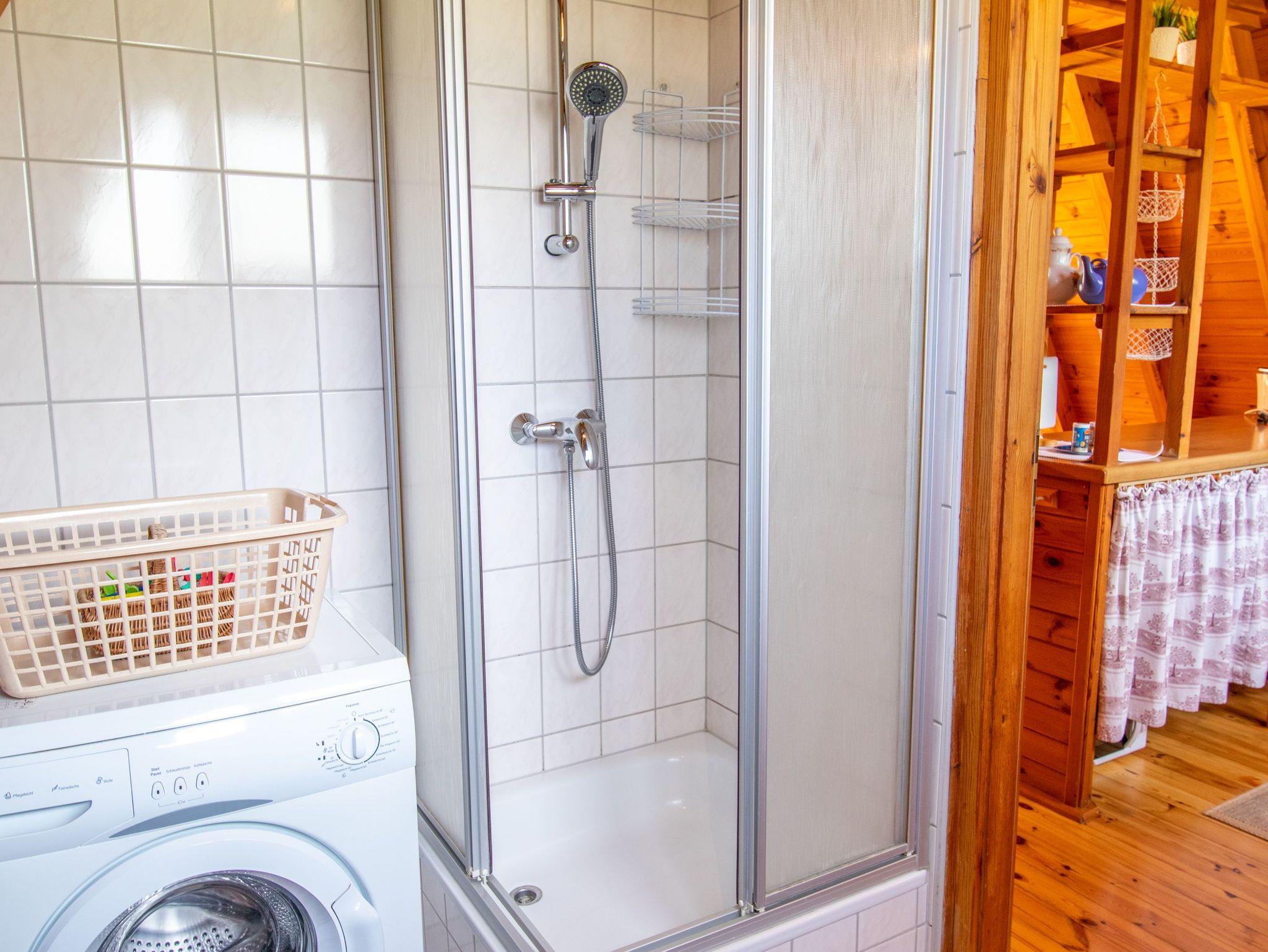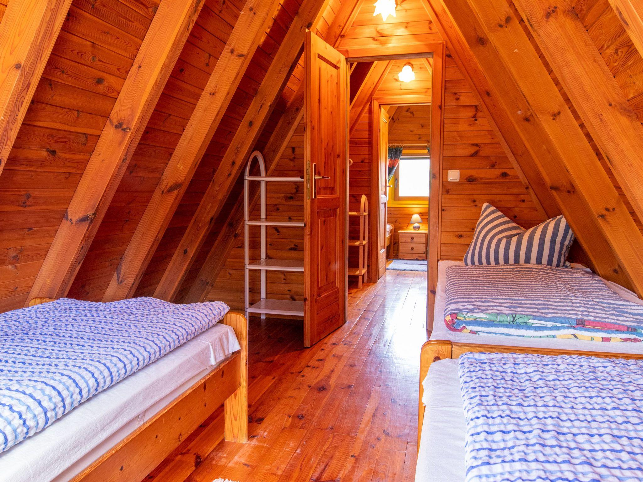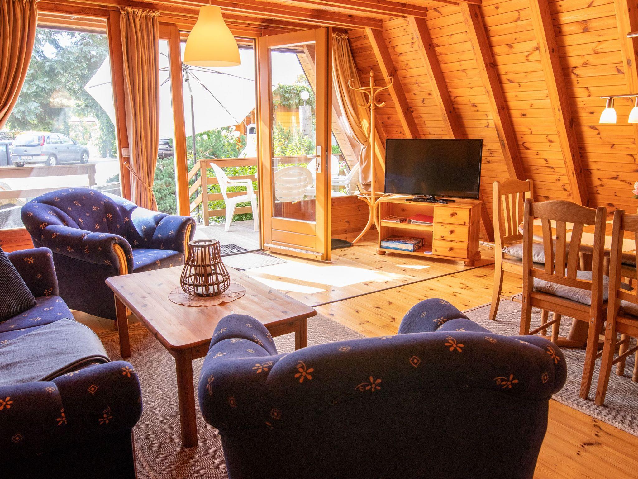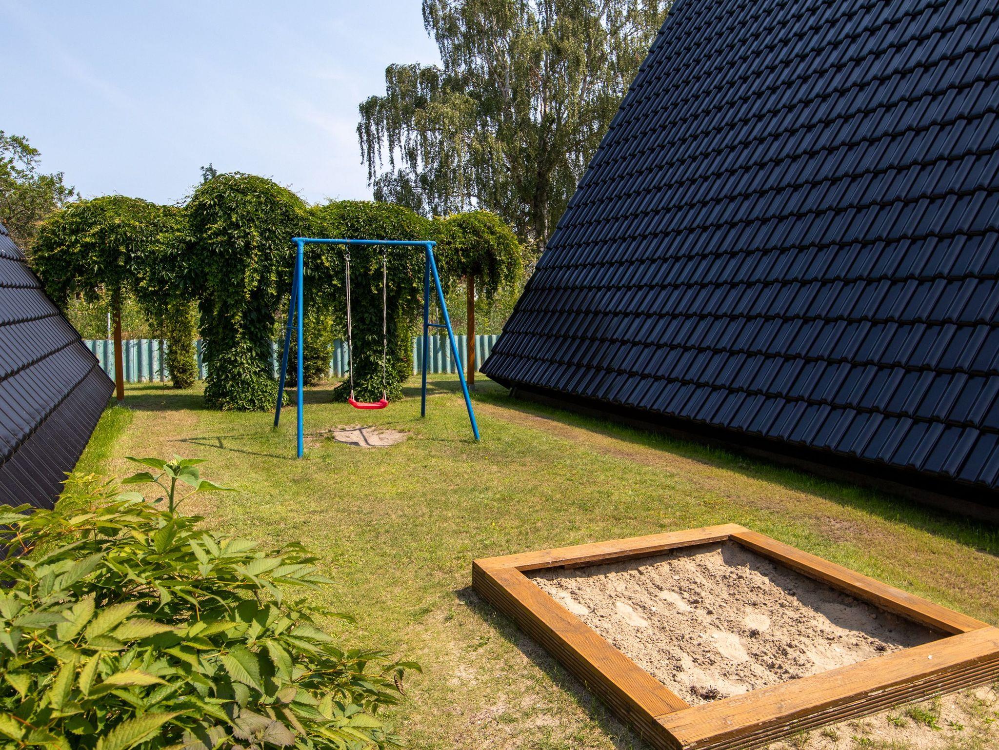 Im Erdgeschoss erwartet dich ein großzügiges Wohnzimmer mit TV, einer bequemen Sitzecke und einem Esstisch. Die offene Küche ist ebenfalls hier untergebracht und komplett ausgestattet, unter anderem mit einem Kühlschrank, Geschirrspüler und einer Kaffeemaschine. Zusätzlich befindet sich im Erdgeschoss ein Badezimmer mit Dusche, WC und einer Waschmaschine. Über eine Raumspartreppe gelangst du ins Obergeschoss, wo sich zwei Schlafzimmer mit insgesamt fünf Einzelbetten (90x200) verteilen. Zu jedem unserer 70 m² großen Häuser gehört eine eigene Terrasse sowie ein Grillplatz. Für beide Häuser gibt es eine Tischtennisplatte, und für die kleinen Gäste stehen ein Sandkasten und eine Schaukel zur Verfügung.