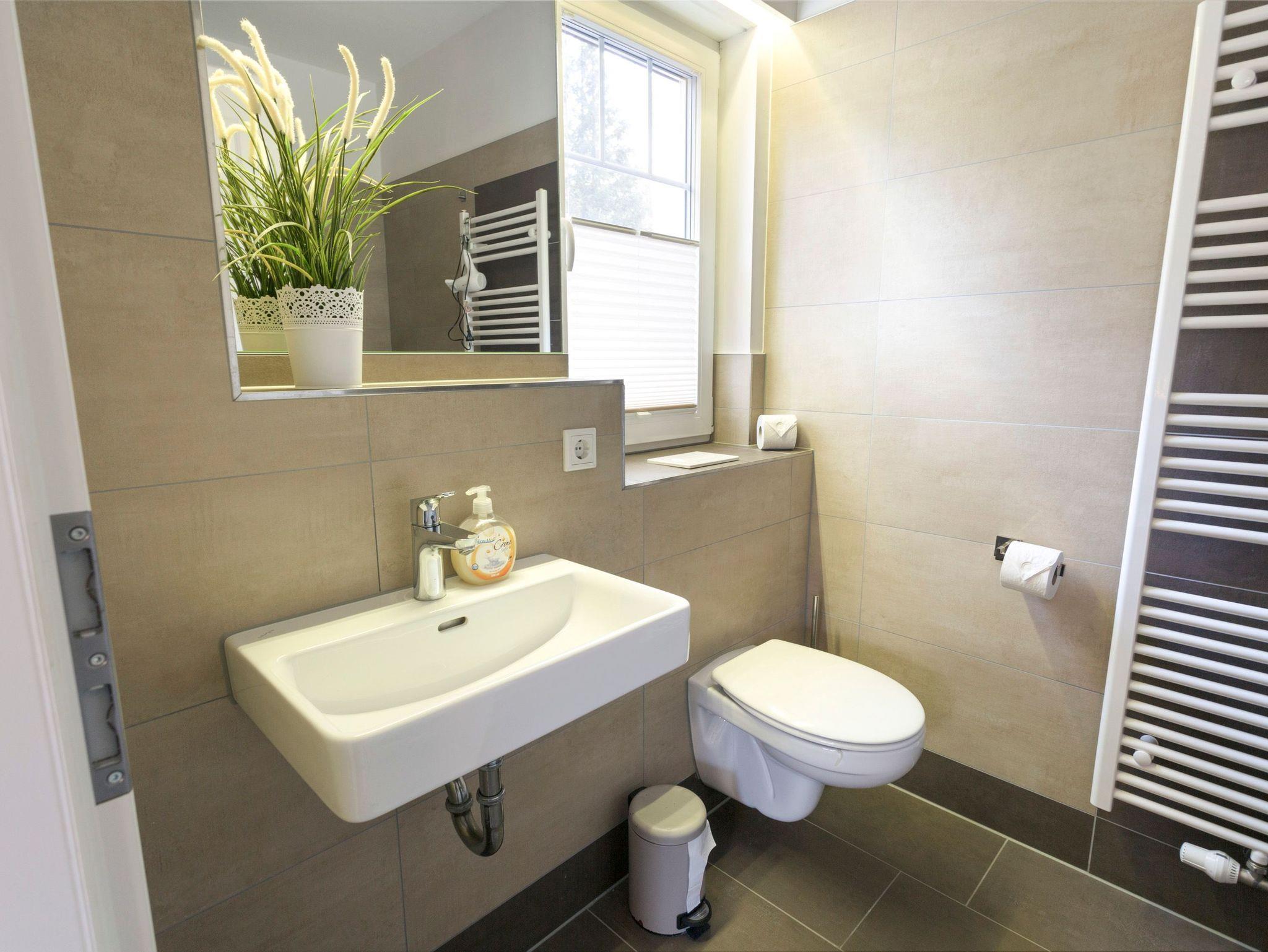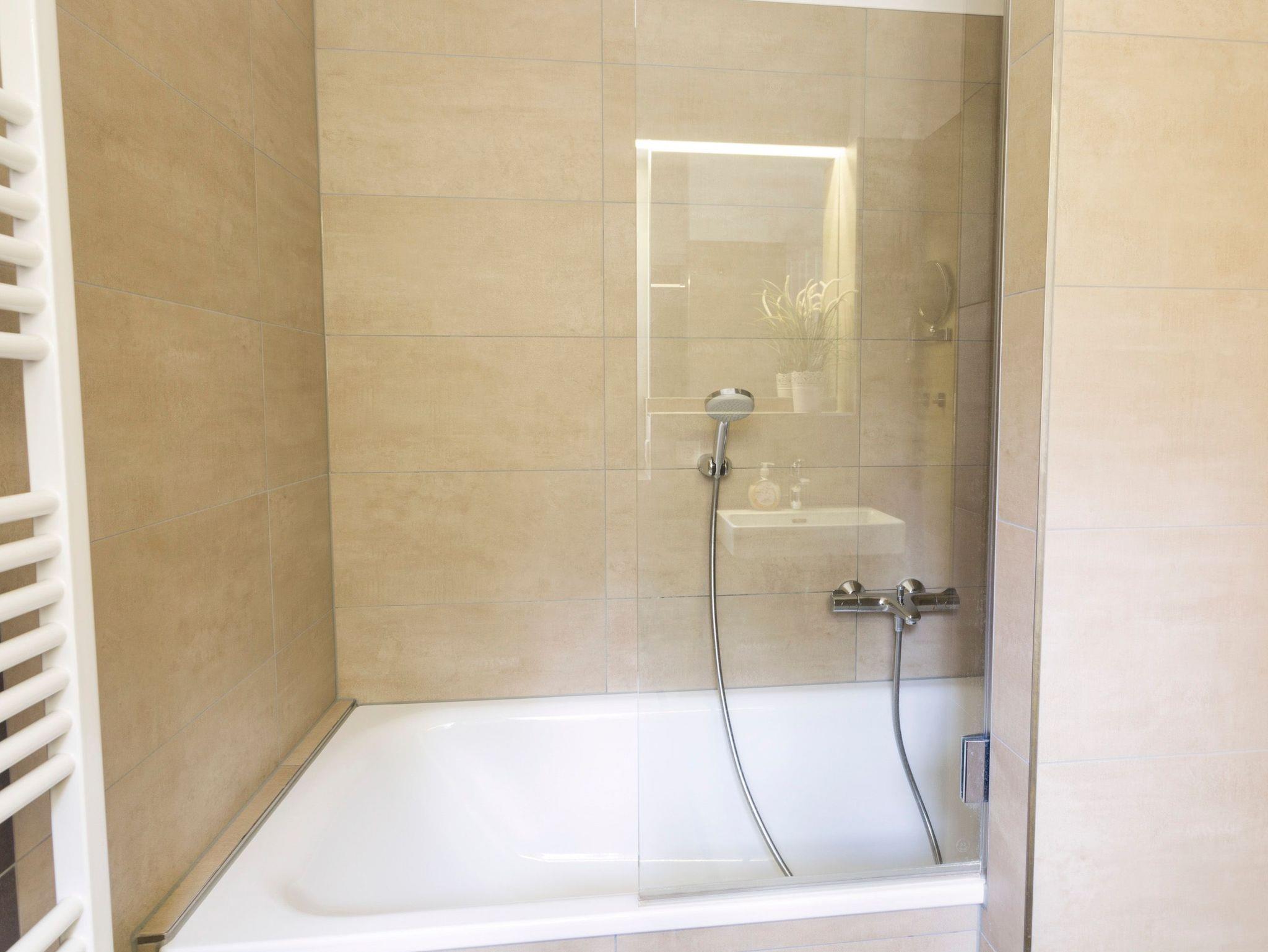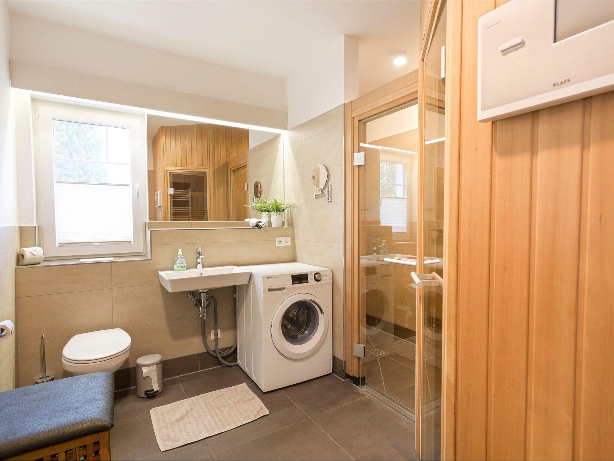Ein Badezimmer ist mit Badewanne, Föhn und WC ausgestattet, das 2. Badezimmer mit Dusche, Föhn und WC, Waschtrockner und eigener Sauna, welche kostenfrei zur Verfügung steht.