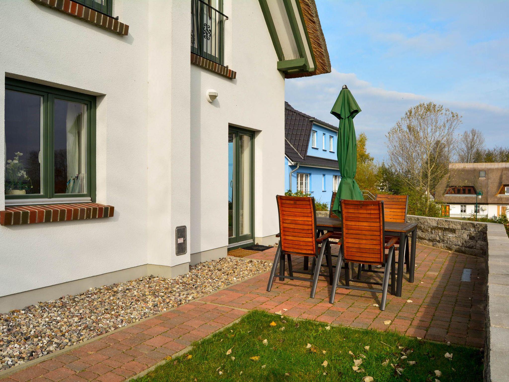 Die reetgedeckte bildschöne Doppelhaushälfte mit eigenem Eingang erstreckt sich über 2 Etagen und ist ca. 80 m² groß. Die untere Etage hat eine große Wohnküche und ein Bad mit Dusche und WC. Die obere Etage hat ein Schlafzimmer mit Doppelbett, ein weiteres Schlafzimmer mit zwei Einzelbetten sowie ein Bad mit Dusche und WC. Die hochwertig und komfortabel eingerichtete Haushäfte ist dem Garten zugewandt. Von der Terrasse haben Sie Blick auf den Garten.