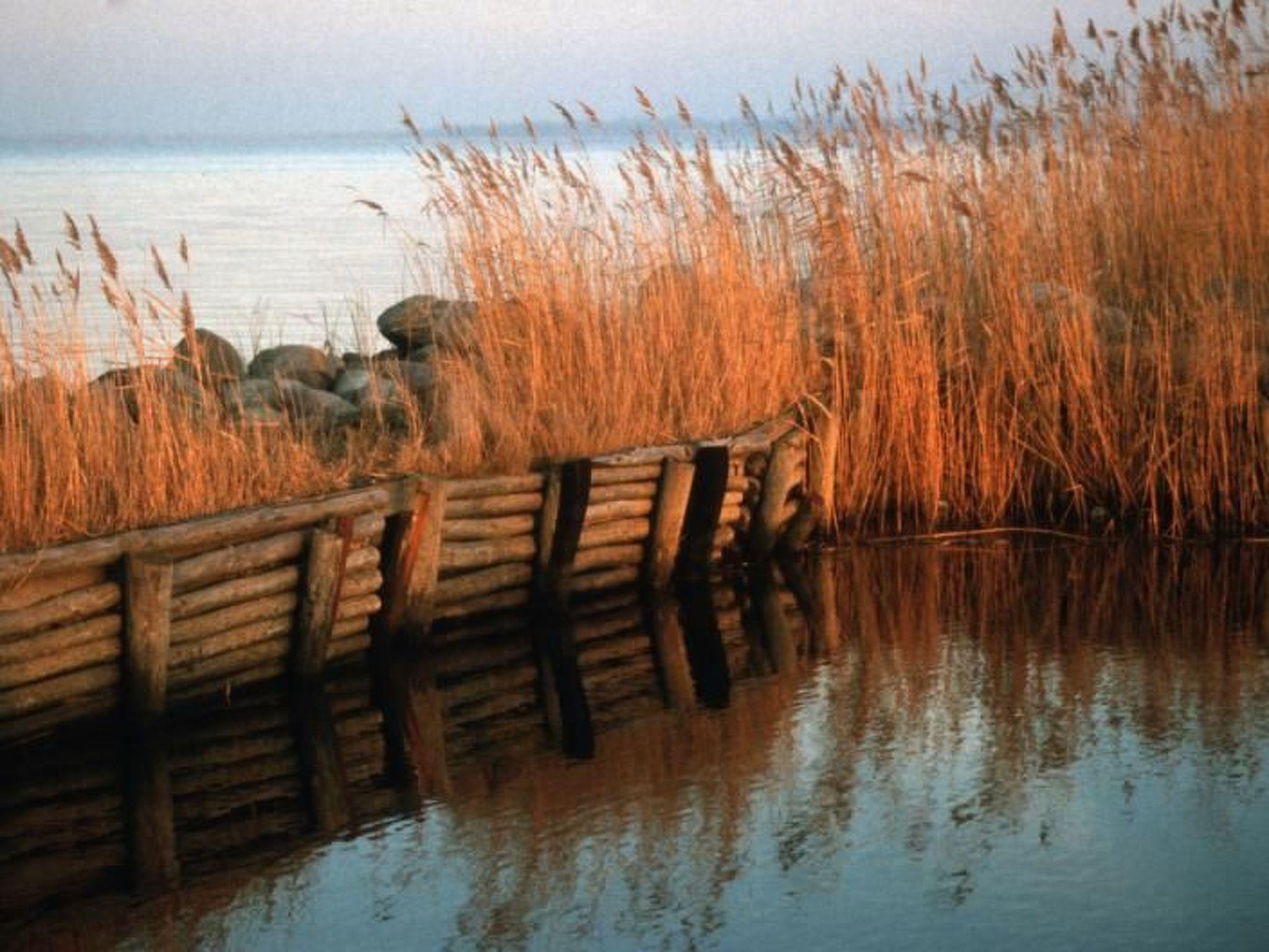- a balcony with a view of the garden and partly of the Greifswald Bodden