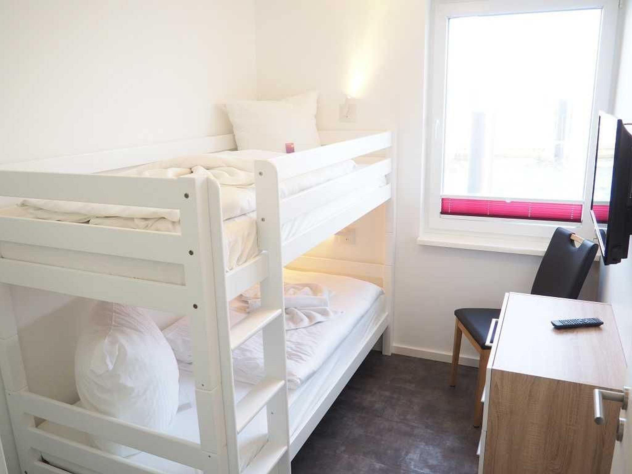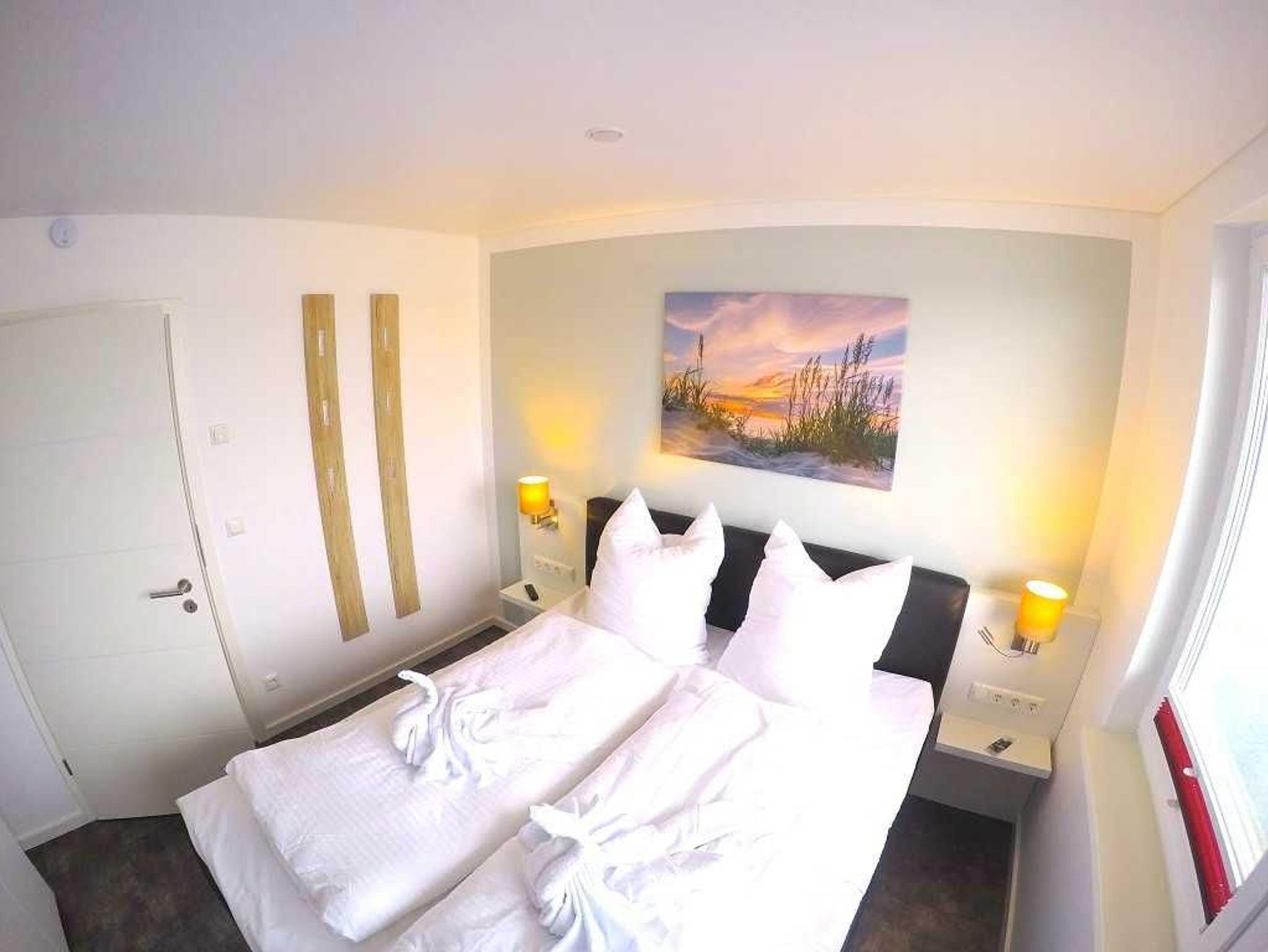 Neben den 3 separaten Schlafzimmern - 2 Schlafzimmer mit jeweils einem Doppelbett, 1 Schlafzimmer mit einem Hochbett und für die 7. und 8. Person eine Aufbettung in der 1. Etage im Wohnzimmer, befindet sich außerdem das Bad mit Dusche/WC im unteren Deck sowie ein Bad mit Waschbecken und WC.