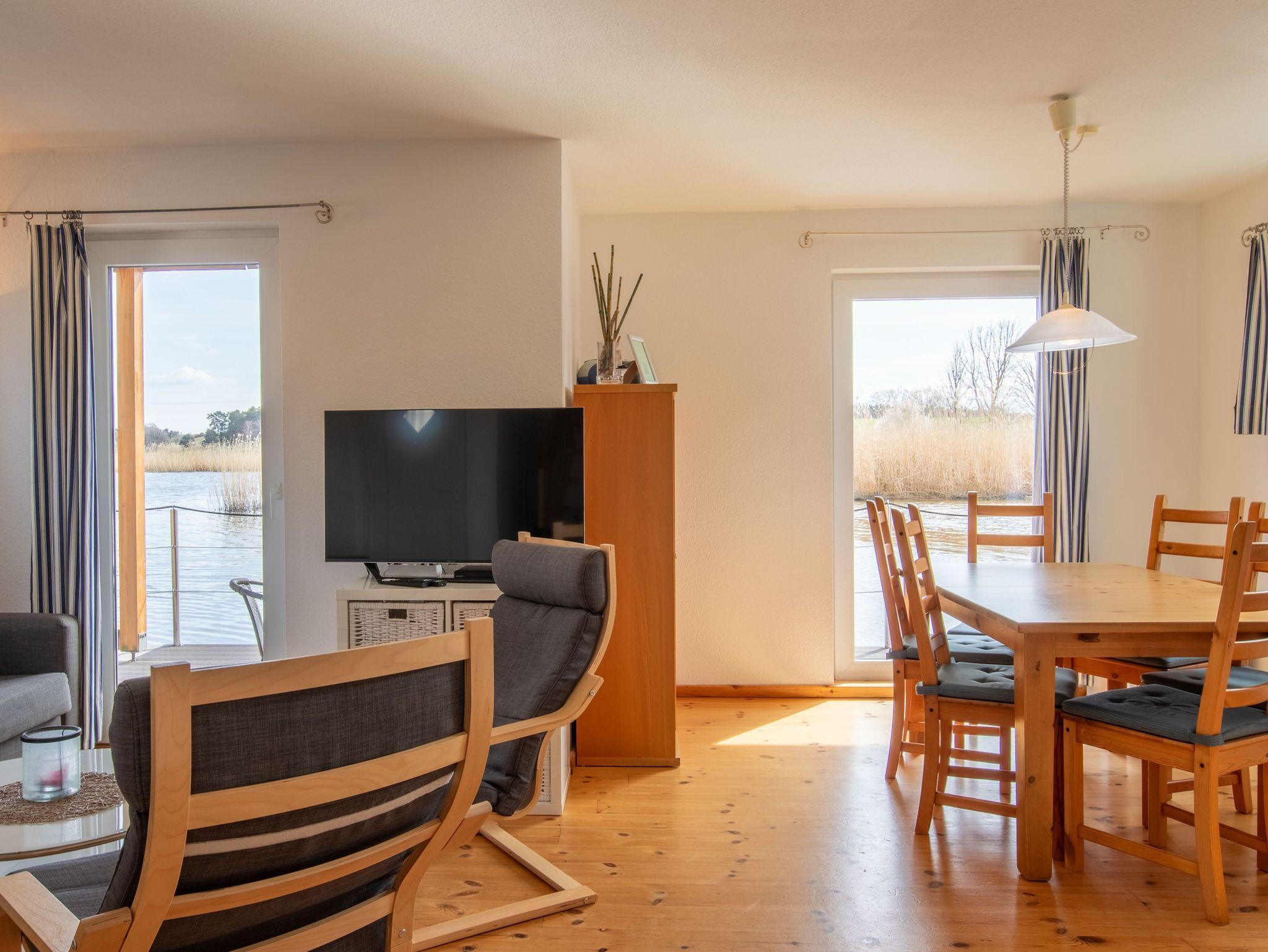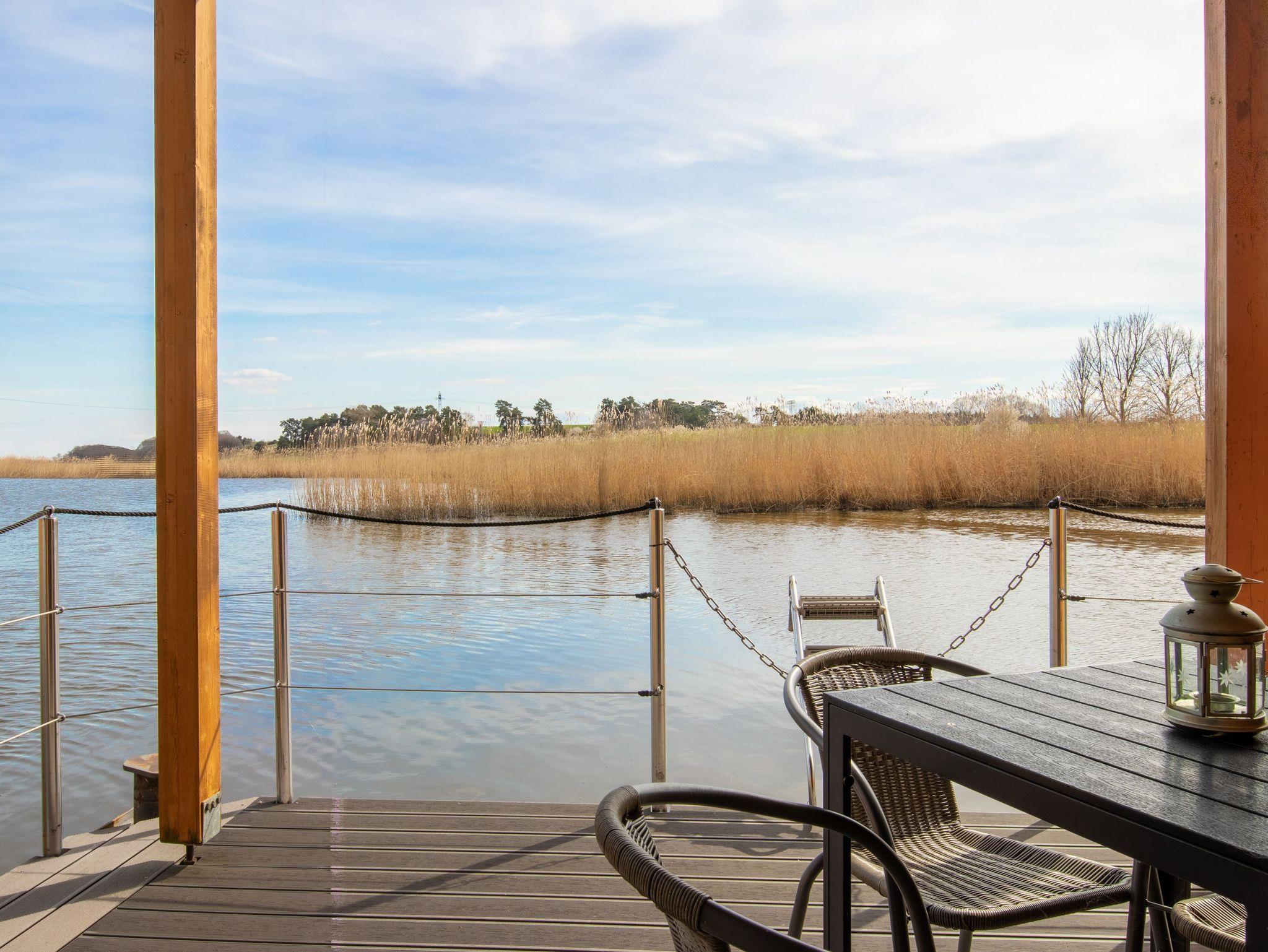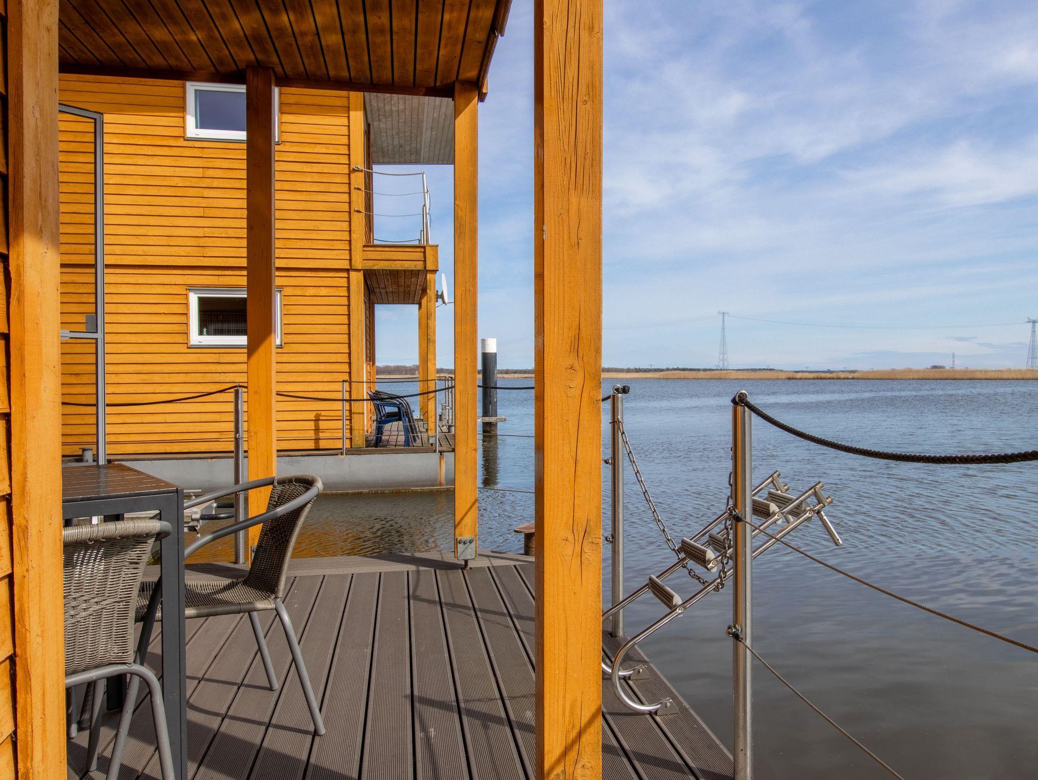 Floating Houses Kröslin ? das ist Urlaub mitten im Hafenleben, mit direktem Blick aufs Wasser, auf Segelboote und in die Natur. In der geschützten Lage am Rande der Marina erwarten dich fünf großzügige Hausboote mit 75m² Wohnfläche auf zwei Etagen ? eine perfekte Kombination aus maritimem Flair und modernem Ferienkomfort. Je nach Haus finden hier 4 bis 6 Personen Platz, verteilt auf 2 bis 3 Schlafzimmer ? ideal für Paare, Familien oder Freundesgruppen. In allen Häusern außer Haus 3 ist dein Hund herzlich willkommen. Die schwimmenden Ferienhäuser liegen fest verankert im Yachthafen von Kröslin ? mit Blick auf das Wasser, das angrenzende Naturschutzgebiet und von der oberen Etage sogar bis zu den Inseln Usedom und Rügen. Ob du vom Balkon aus das Hafentreiben beobachtest, auf der Terrasse die Sonne genießt oder einfach in der gemütlichen Sofaecke die Seele baumeln lässt ? hier spürst du in jeder Ecke: Du bist angekommen. Die Floating Houses verbinden das Gefühl von Freiheit auf dem Wasser mit dem Komfort eines echten Ferienhauses. WLAN ist im Hafen verfügbar, ein kostenfreier Parkplatz gehört ebenso zur Ausstattung wie ein gemütlicher Wohnbereich, eine moderne Küche, ein Bad und natürlich viel Licht und Luft durch große Fensterflächen. Und auch drumherum gibt?s viel zu entdecken: Die Marina Kröslin bietet dir saisonal zahlreiche Freizeitangebote ? von Fahrradverleih über Sauna bis hin zum Bootsverleih und Kinderspielplatz. Wenn du ein kleines Trailerboot mitbringen möchtest: Kein Problem ? Boote bis 4,50m Länge kannst du direkt am Hausboot anlegen. Ganz gleich, ob du aktiv sein möchtest oder einfach nur den Sonnenuntergang auf dem Balkon genießen willst ? in Kröslin findest du Urlaub auf dem Wasser, wie er sein sollte: entspannt, besonders und unvergesslich.