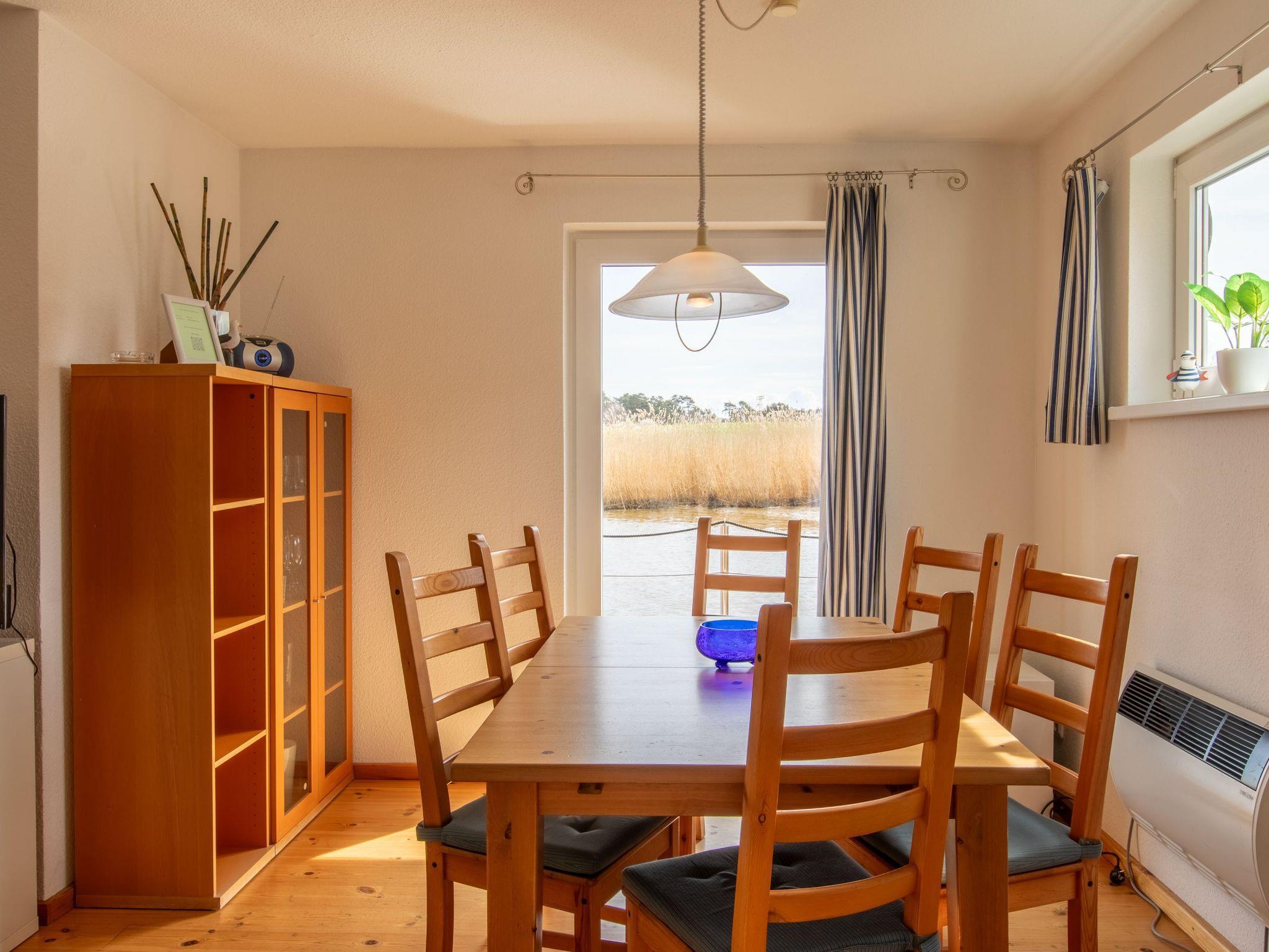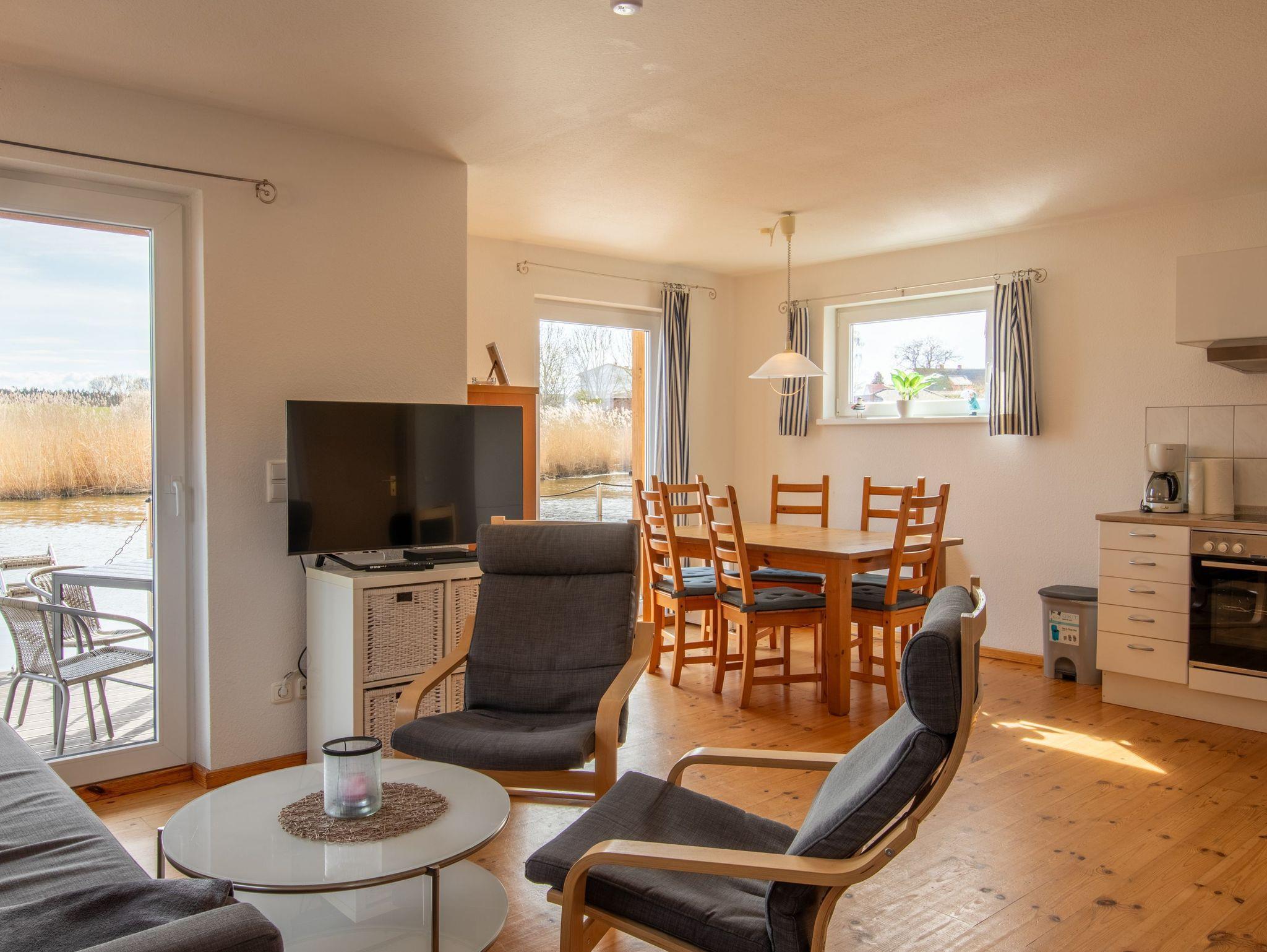 Floating House 2 in Kröslin ist dein schwimmender Wohlfühlort für einen Urlaub, der nach Wellenrauschen klingt und nach Freiheit schmeckt. Das Hausboot bietet Platz für bis zu 6 Personen und ist ideal für alle, die gemeinsam entspannen, kochen, lachen ? oder einfach die maritime Stimmung des Hafens genießen möchten. Auch ein Hund ist willkommen, wenn er gut erzogen ist und sich auf dem Steg zu benehmen weiß. Auf zwei Etagen und rund 75m² Wohnfläche findest du alles, was du für deine Auszeit brauchst: Im Erdgeschoss erwartet dich ein großzügiger Wohnbereich mit gemütlichem Sofa, Schwing-Sessel und großem Esstisch. Die angrenzende Küche ist offen und komplett ausgestattet ? mit Ceranfeld, Backofen mit Grill, Mikrowelle, Geschirrspüler, Kühlschrank, Kaffeemaschine, Wasserkocher und Toaster. In der oberen Etage befinden sich zwei separate Schlafzimmer mit Doppelbett (180x200) sowie ein zusätzliches Zimmer mit ausziehbarer Schlafcouch (140x200) ? perfekt als Rückzugsort oder Kinderzimmer. Zwei der Schlafzimmer führen direkt auf den großzügigen Balkon mit Relax-Liegen und traumhaftem Ausblick über den Bodden. Das moderne Duschbad, ausgestattet mit Waschtisch, Spiegel und Fön macht deinen Aufenthalt rundum komfortabel. Für Unterhaltung sorgen Sat-TV, CD-Radio und WLAN über das Hafennetz. In allen Räumen sorgt eine moderne Elektro-Heizung für angenehmes Raumklima. Dein Lieblingsplatz? Wahrscheinlich die Terrasse am Bug, ausgestattet mit Gartenmöbeln und nur wenige Zentimeter über dem Wasser. Oder doch lieber oben auf dem Balkon mit weitem Blick? Ein eigenes Sportboot bis 4,5m Länge kannst du direkt am Haus anlegen ? oder du leihst dir eins in der Marina. Direkt vor der Tür wartet die Marina Kröslin mit Restaurant, Bistro, Tapasbar, Wellnessbereich, Sauna, Fahrradverleih, Bootsverleih, Kinderspielplatz, Waschsalon, Shops und sogar einer Fähre nach Usedom für Fußgänger und Radfahrer. Perfekt, um spontan auf Entdeckungstour zu gehen. Bitte beachte: Die Einrichtung kann leicht variieren.