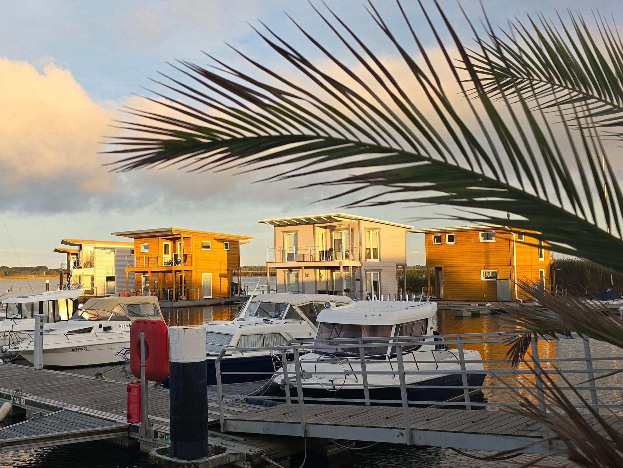 Bewundern Sie das abendliche Lichtspiel auf dem Wasser und entspannen Sie bei einem Gläschen Wein auf der Terrasse. Atmen Sie die herrliche Meeresluft ein und hören Sie das Rauschen der Wellen- Die Marina Kröslin wird Sie verzaubern! Bereits beim Blick aus dem Fenster fühlen Sie sich der Natur verbunden- Fische springen durch das Wasser, Vögel ziehen ihre Kreise und im Frühjahr und Herbst können Sie Kraniche beobachten. Der letzte Schliff für einen rundum gelungenen Tag, könnte ein Besuch unserer Wellnessanlage in der Seestraße sein. Hier können Sie hier Ihre Seele baumeln lassen. Auch an die Bootseigner unter Ihnen ist gedacht. Jedes Floating Haus verfügt über seinen eigenen Bootsliegeplatz, bis zu 6 Metern Länge (kostenpflichtig).