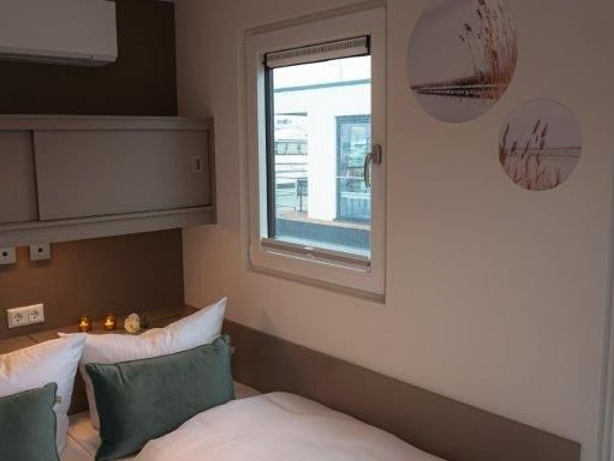 Auf einer Grundfläche von insgesamt etwa 45 m² befinden sich der Wohnraum mit offener Wohnküche, die Terrasse und weitere Lauffläche im Außenbereich des Hausbootes, 2 Schlafzimmer, ein Bad mit Dusche und ein WC mit Waschtisch. Auf der oberen Etage befindet sich die zusätzliche Sonnenterrasse mit Sonnenliege und Loungemöbel. In der Küche finden Sie Kühlschrank mit Gefrierfach, Spülmaschine, Mikrowelle, Kaffeemaschine. Im Wohnzimmer sorgt der Fernseher für Unterhaltung.