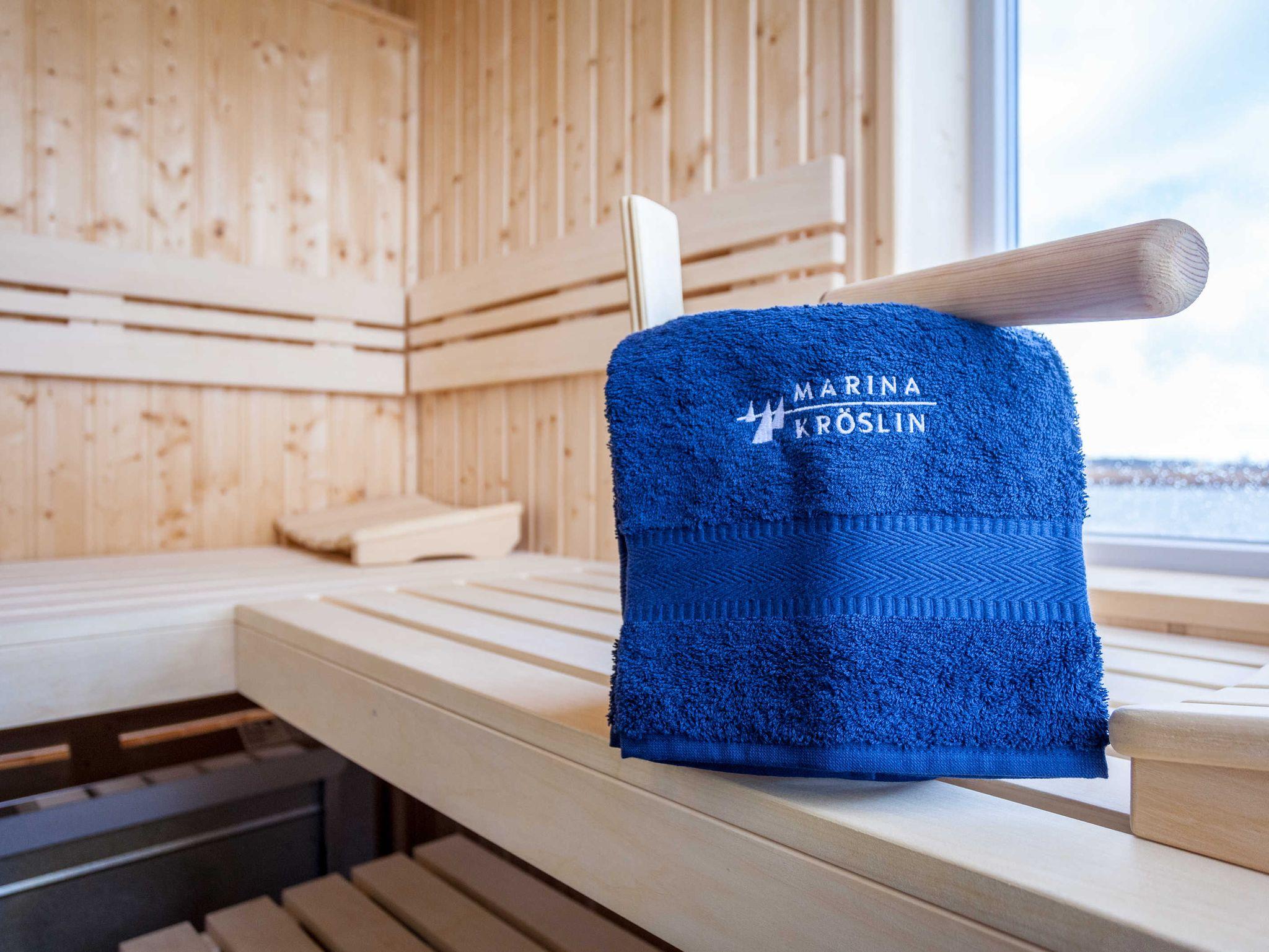 Bewundern Sie das abendliche Lichtspiel auf dem Wasser und entspannen Sie bei einem Gläschen Wein auf der Terrasse. Atmen Sie die herrliche Meeresluft ein und hören Sie das Rauschen der Wellen - Die Marina Kröslin wird Sie verzaubern! Bereits beim Blick aus dem Fenster fühlen Sie sich der Natur verbunden- Fische springen durch das Wasser, Vögel ziehen ihre Kreise und im Frühjahr und Herbst können Sie Kraniche beobachten. Der letzte Schliff für einen rundum gelungenen Tag, könnte ein Besuch unserer Wellnessanlage in der Seestraße sein. können Sie hier Ihre Seele baumeln lassen.