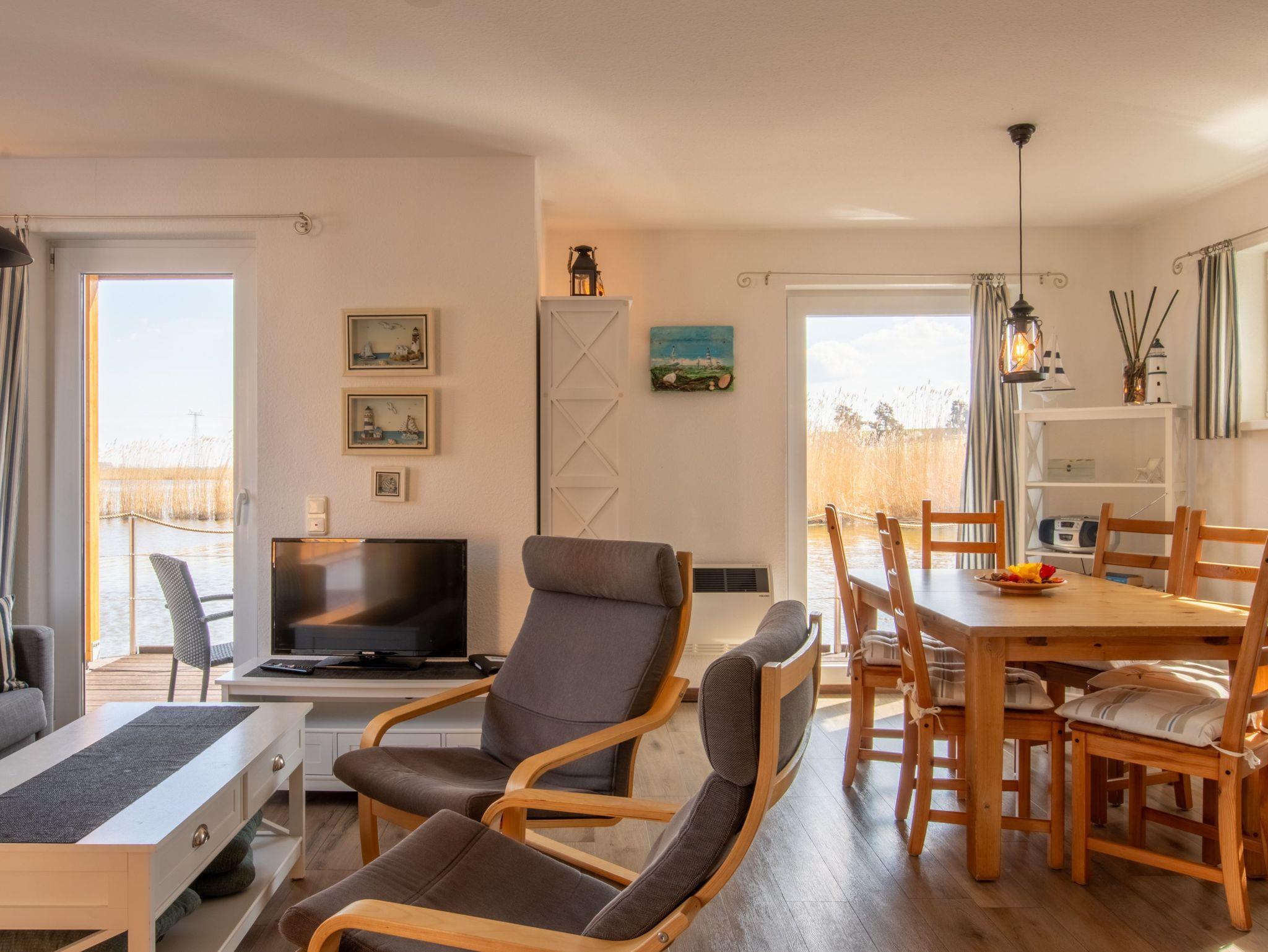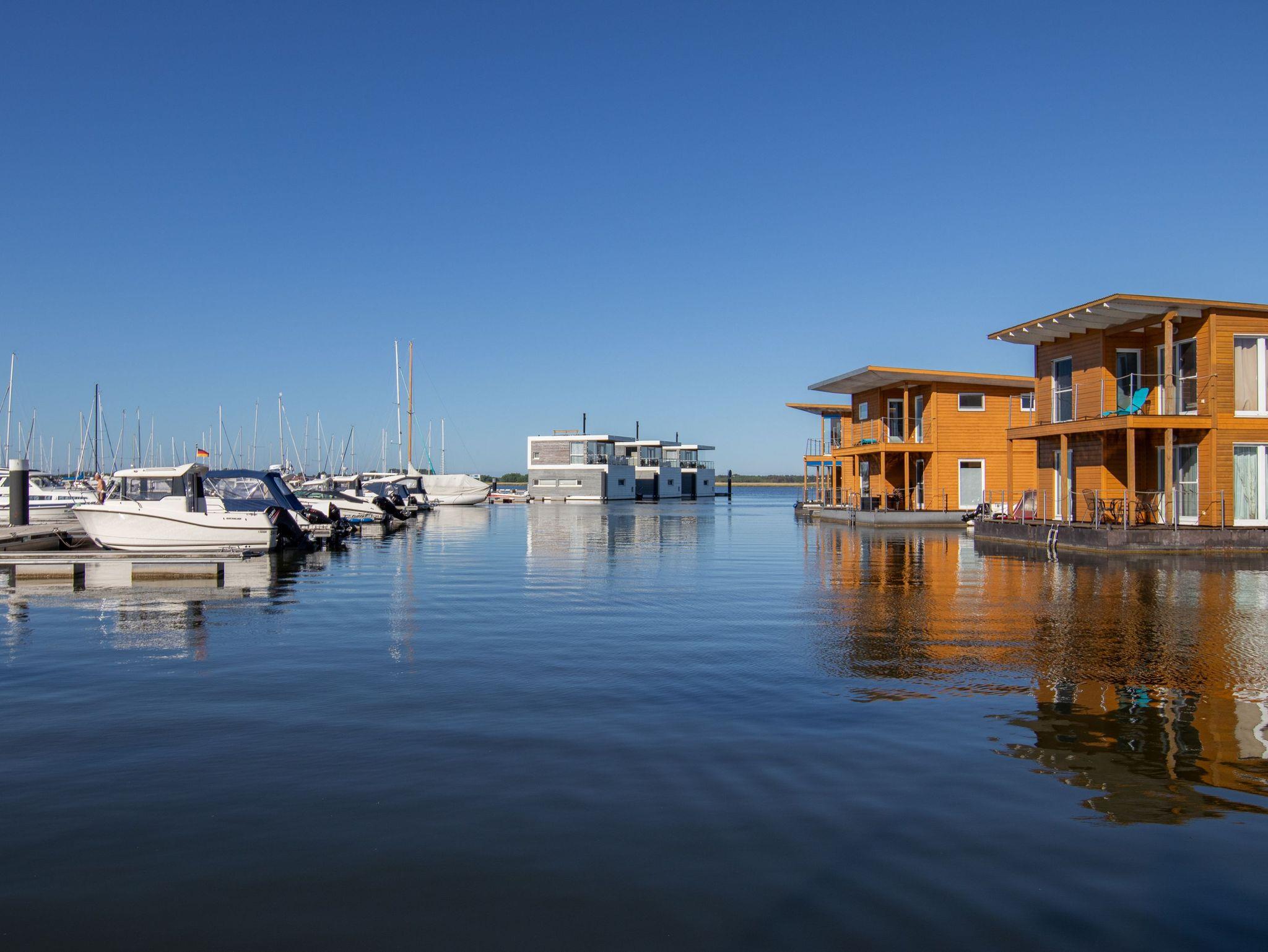 Floating Houses Kröslin ? das ist Urlaub mitten im Hafenleben, mit direktem Blick aufs Wasser, auf Segelboote und in die Natur. In der geschützten Lage am Rande der Marina erwarten dich fünf großzügige Hausboote mit 75m² Wohnfläche auf zwei Etagen ? eine perfekte Kombination aus maritimem Flair und modernem Ferienkomfort. Je nach Haus finden hier 4 bis 6 Personen Platz, verteilt auf 2 bis 3 Schlafzimmer ? ideal für Paare, Familien oder Freundesgruppen. In allen Häusern außer Haus 3 ist dein Hund herzlich willkommen. Die schwimmenden Ferienhäuser liegen fest verankert im Yachthafen von Kröslin ? mit Blick auf das Wasser, das angrenzende Naturschutzgebiet und von der oberen Etage sogar bis zu den Inseln Usedom und Rügen. Ob du vom Balkon aus das Hafentreiben beobachtest, auf der Terrasse die Sonne genießt oder einfach in der gemütlichen Sofaecke die Seele baumeln lässt ? hier spürst du in jeder Ecke: Du bist angekommen. Die Floating Houses verbinden das Gefühl von Freiheit auf dem Wasser mit dem Komfort eines echten Ferienhauses. WLAN ist im Hafen verfügbar, ein kostenfreier Parkplatz gehört ebenso zur Ausstattung wie ein gemütlicher Wohnbereich, eine moderne Küche, ein Bad und natürlich viel Licht und Luft durch große Fensterflächen. Und auch drumherum gibt?s viel zu entdecken: Die Marina Kröslin bietet dir saisonal zahlreiche Freizeitangebote ? von Fahrradverleih über Sauna bis hin zum Bootsverleih und Kinderspielplatz. Wenn du ein kleines Trailerboot mitbringen möchtest: Kein Problem ? Boote bis 4,50m Länge kannst du direkt am Hausboot anlegen. Ganz gleich, ob du aktiv sein möchtest oder einfach nur den Sonnenuntergang auf dem Balkon genießen willst ? in Kröslin findest du Urlaub auf dem Wasser, wie er sein sollte: entspannt, besonders und unvergesslich.