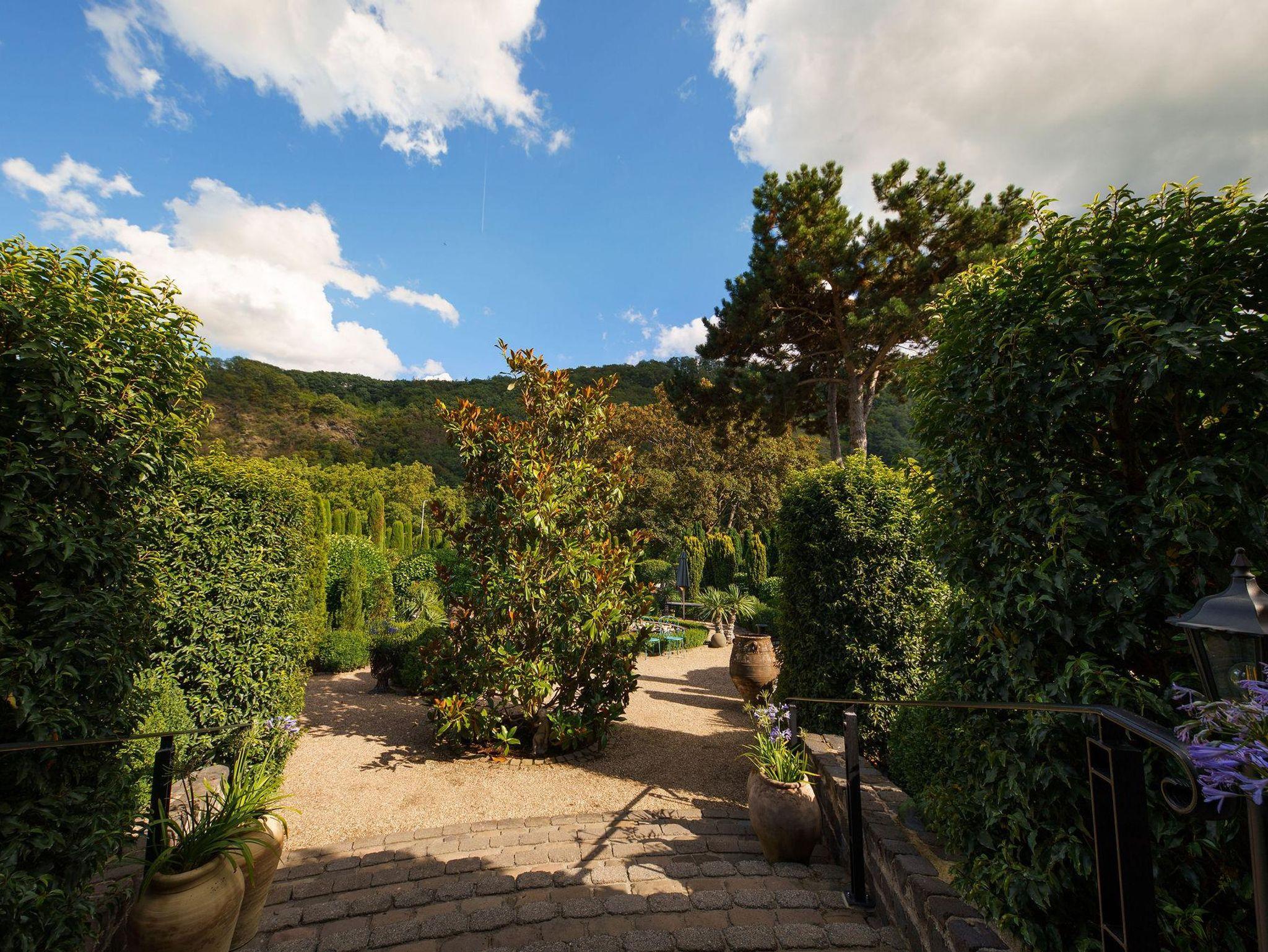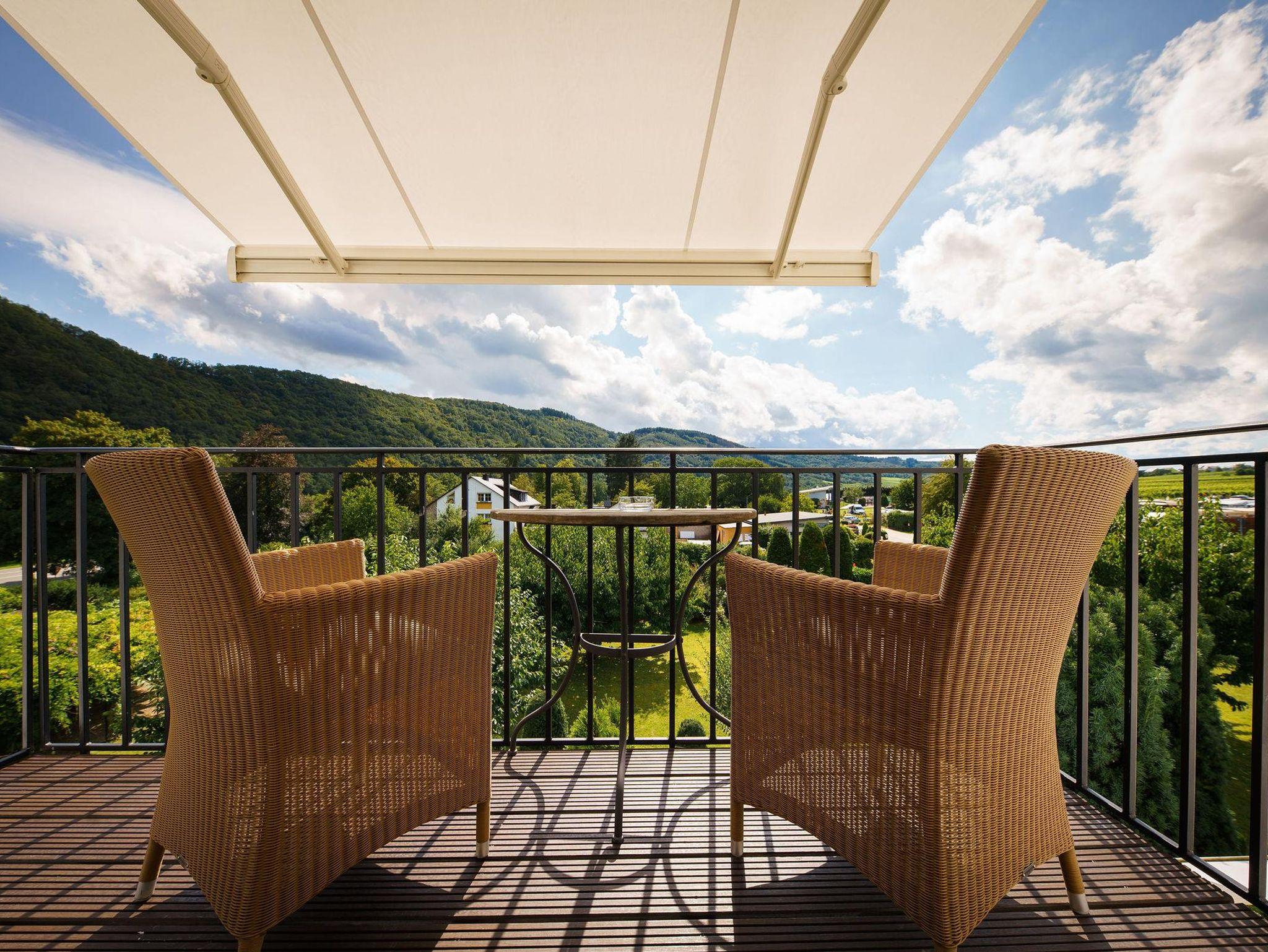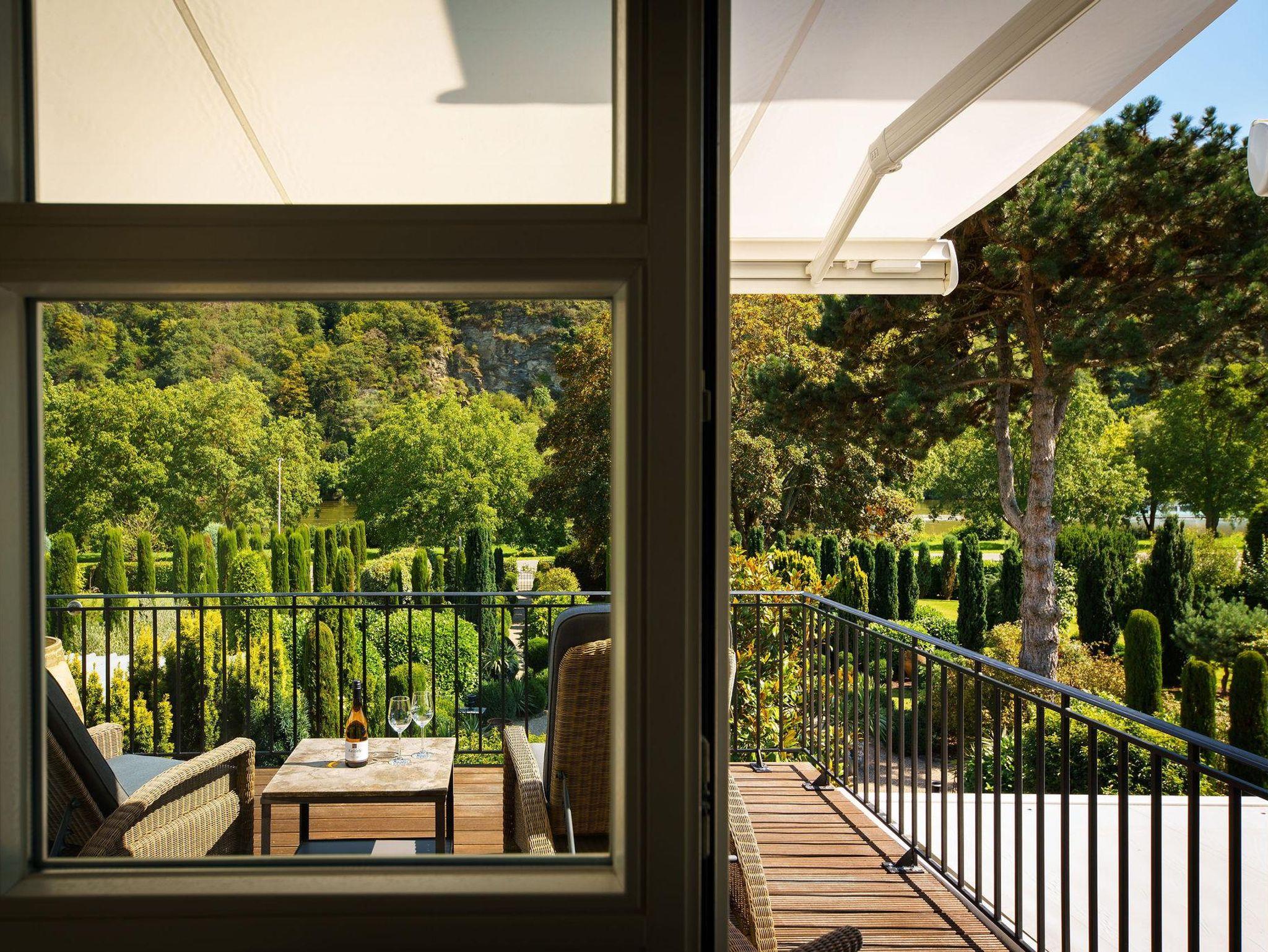 Warme Farben und hochwertige aufeinander abgestimmte Stoffe im Landhausstil geben jedem Zimmer eine individuelle Gemütlichkeit. Der Blick auf den mediterranen Garten und die prächtige Mosellandschaft machen den Aufenthalt zu einem Erlebnis.
