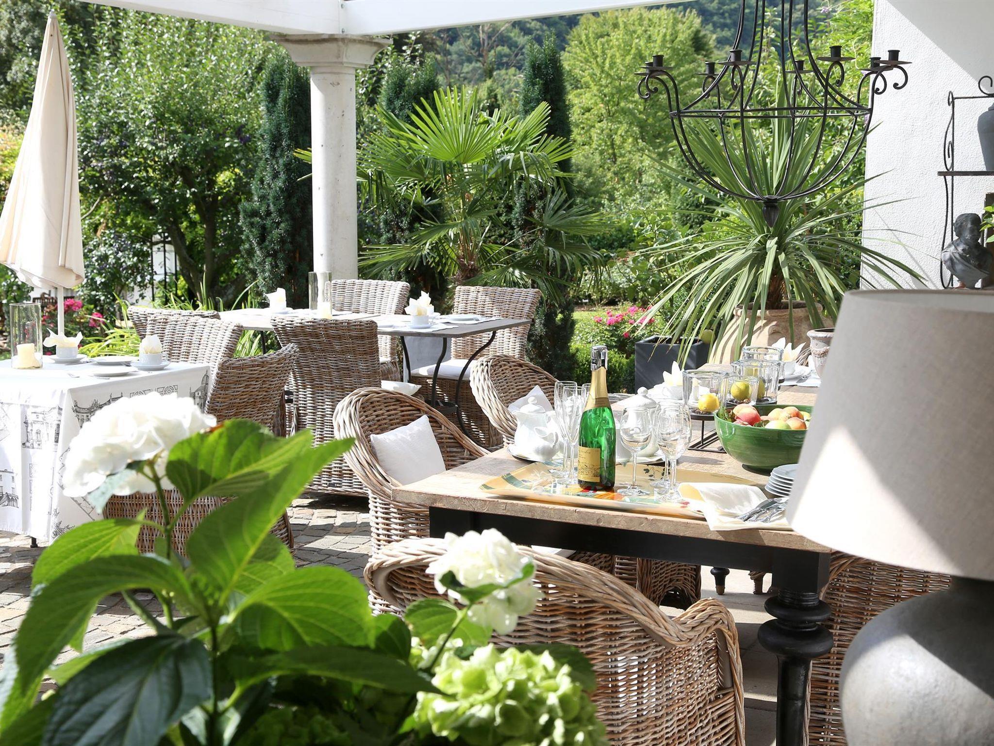 An schönen Tagen genießen Sie ihr Frühstück auf unserer Terrasse mit Blick auf den Garten.