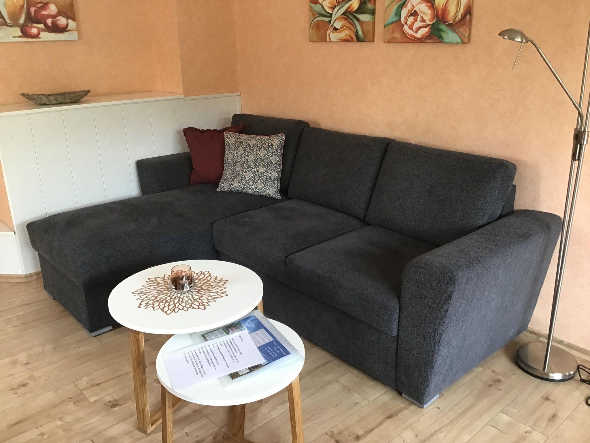 Helle Ferienwohnung 40qm groß auf der 1 Etage. Die Wohnung hat ein seperates Schlafzimmer mit Boxspringbett. Die Küche ist ausgestattet mit einem Ceranfeld mit Backofen, Mikrowelle, Kühlschrank mit Gefrierschublade.