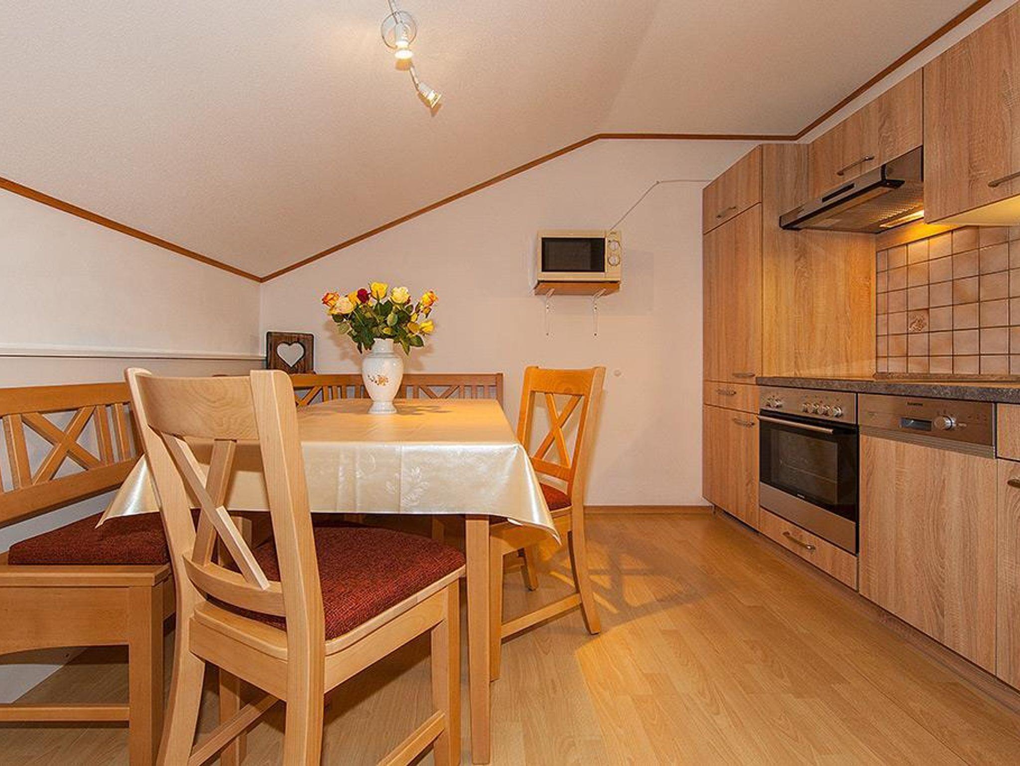 Diese charmante Ferienwohnung im 2. Stock überzeugt mit einem hohen Kniestock und einer angenehmen Raumhöhe. Der große, möblierte Ostbalkon mit Blick in den Wald lädt mit Liegestühlen zum Entspannen und Verweilen ein – ideal für Naturfreunde und Ruhesuchende.