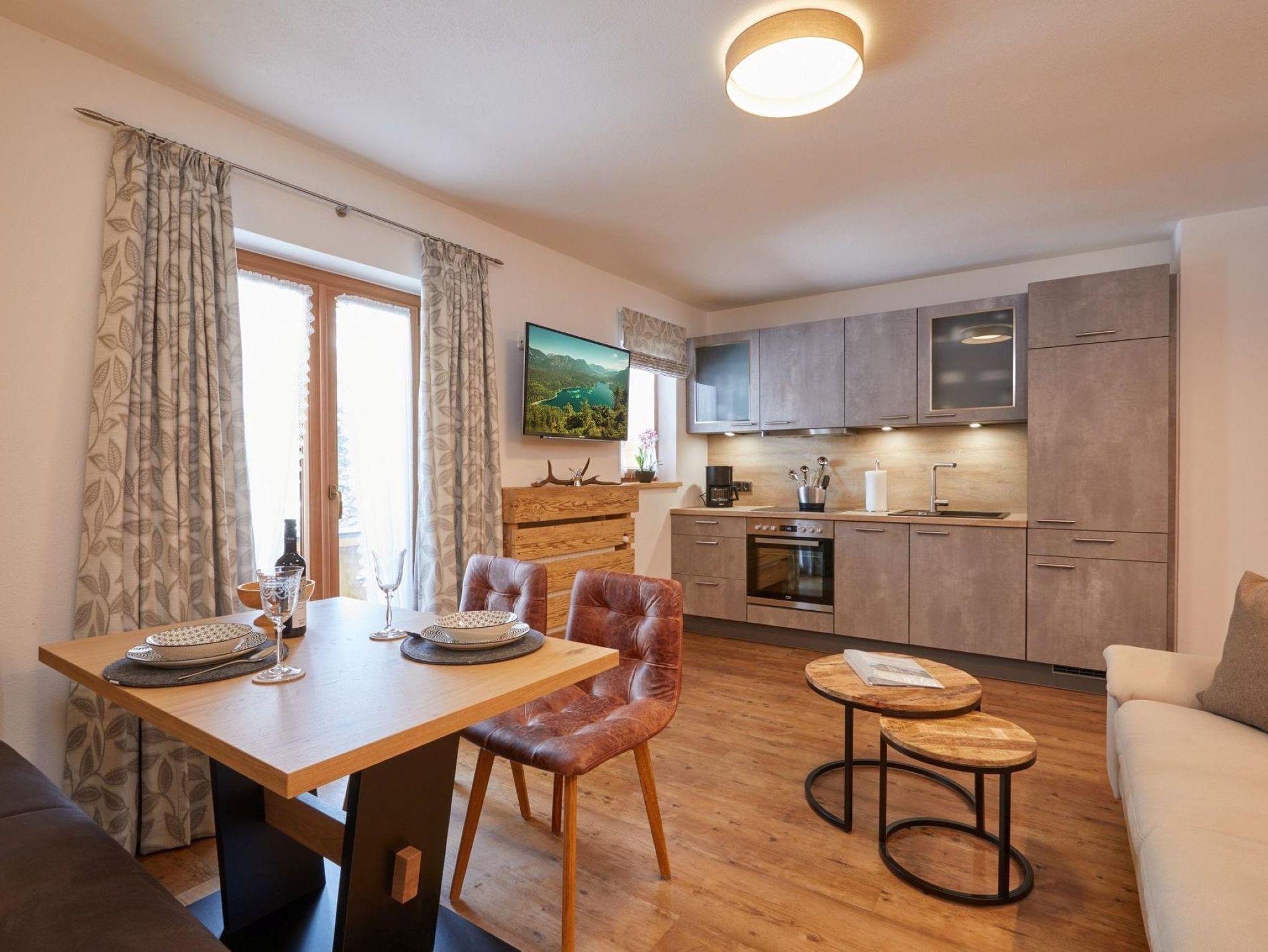 Wohnküche mit Küchenzeile, Spülmaschine, Backofen mit Ceranfeld, elektr. Geräte. Kabel-TV mit Videotext, Digitalradio, Zimmersafe, Granderwasser (belebtes Wasser) W-LAN kostenlos, Sitzbank mit Tisch und Stühle, Funktionssofa elktr. verstellbar, Holzvinylboden, Altholzwand