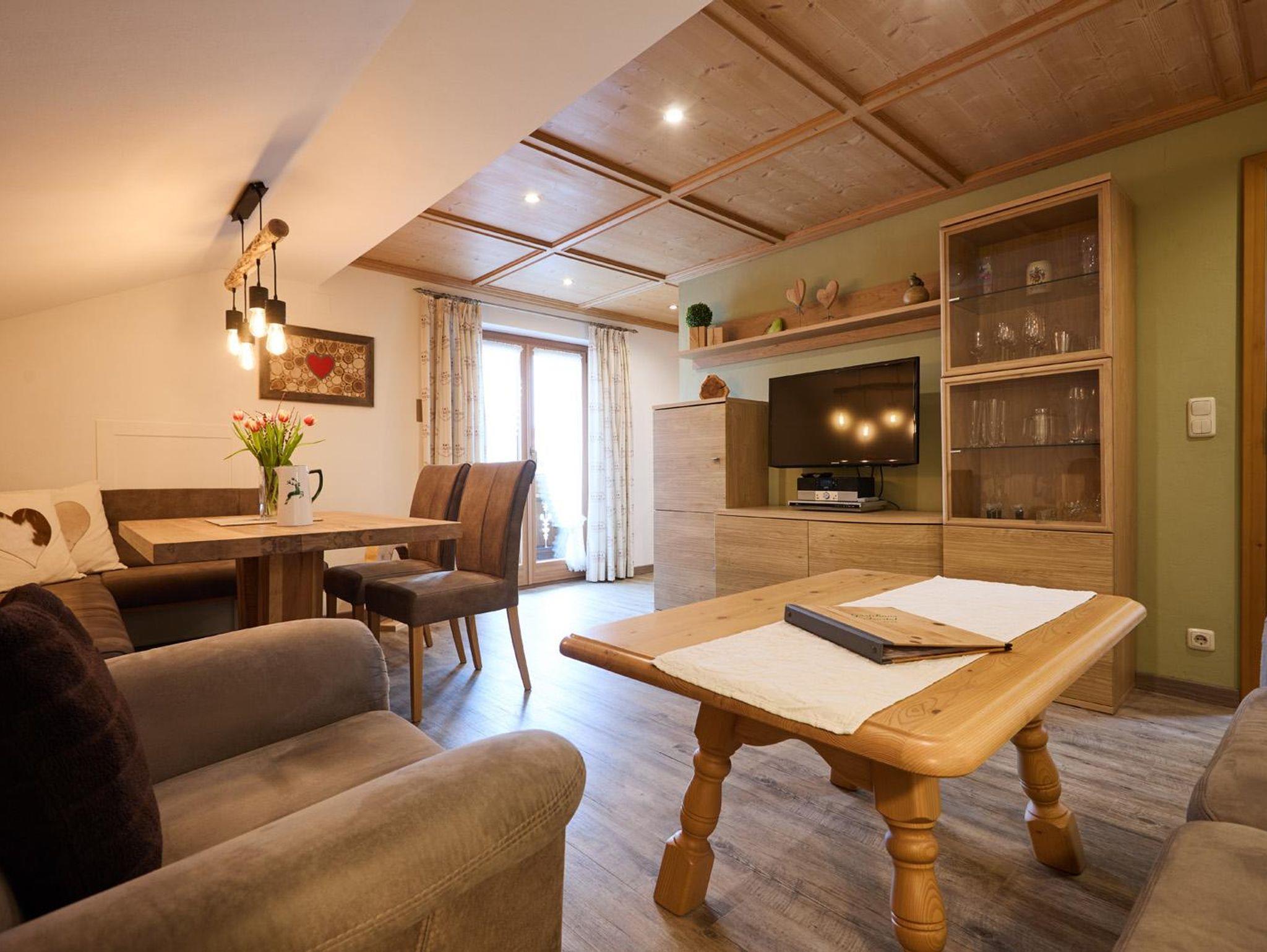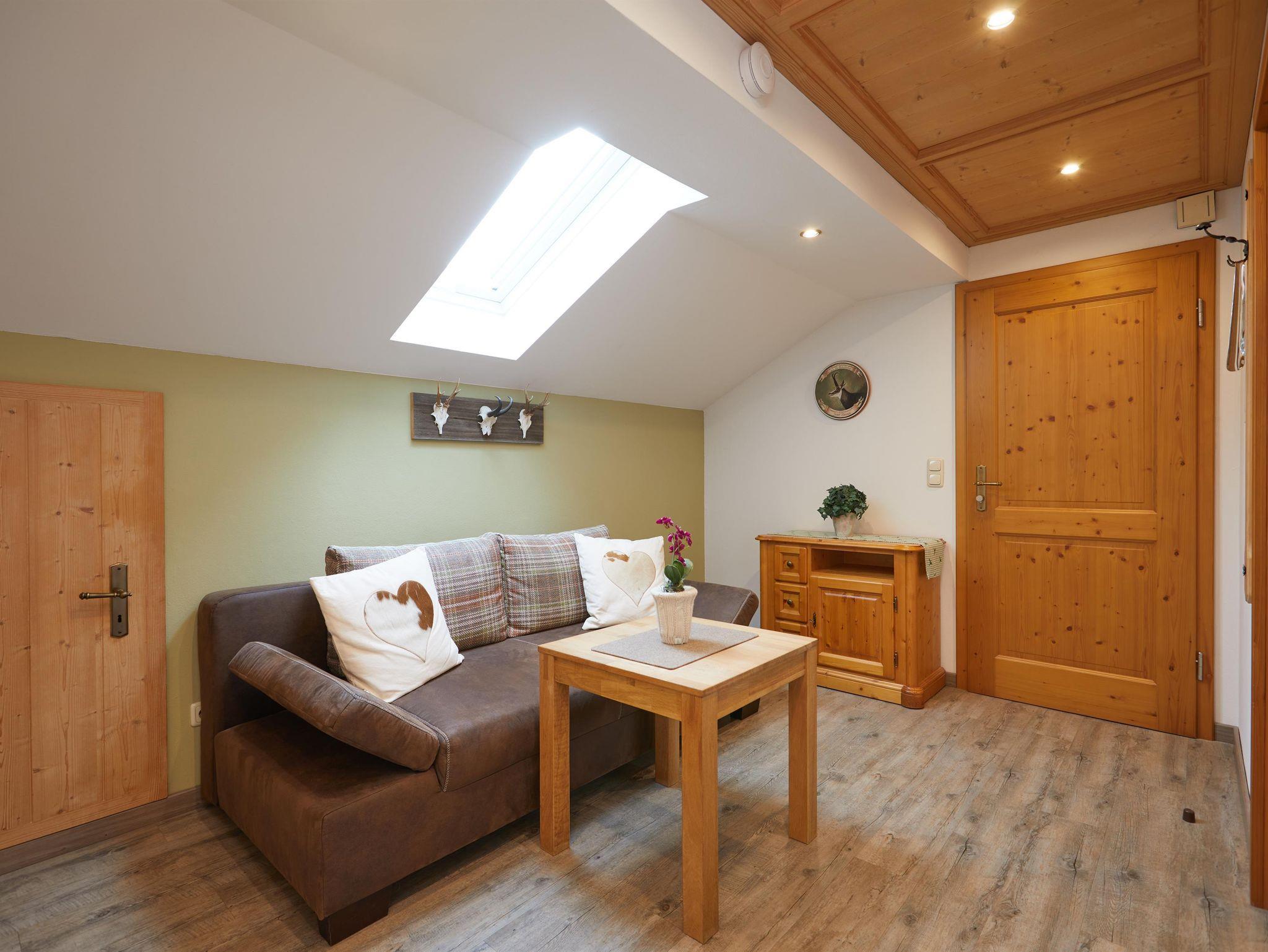 ****Wohnung Gams 63 qm, 2.Stock Dachgeschoß mit Südbalkon, Panoramablick auf das Karwendel- und Zugspitzmassiv. Hochwertige Ausstattung, Holzvinylboden, Eingangsbereich mit Leseecke, Schlafzimmer mit Boxspringbett (2x2m), Wohnzimmer mit Couch und Fernsehsessel, gemütliche Eckbank, Küchenzeile mit Spülmaschine, Backofen mit Ceranfeld und sämtl. elektr. Geräten. Dusche/WC mit Regenwalddusche, LED-Beleuchtung, Handtuchwärmer, Kosmetikspiegel und Haarfön. Flachbildschirm, Stereo-Anlage, Safe. kostenloser W-LAN Internetzugang.