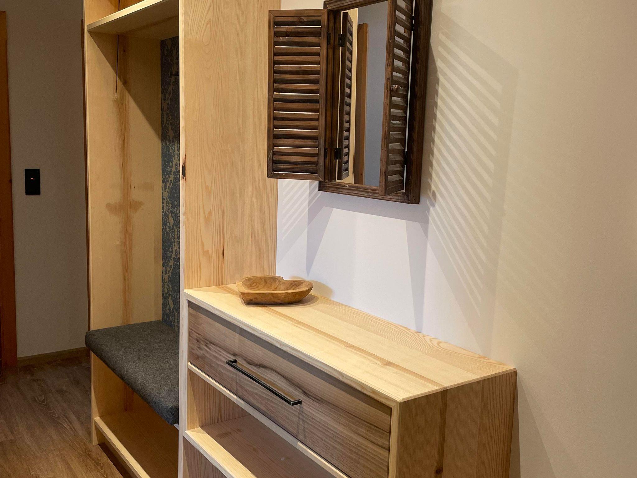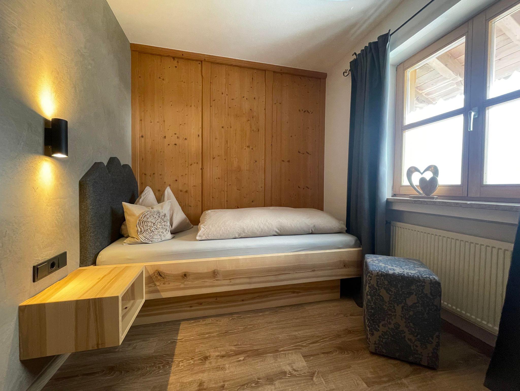 Wohnung Herzenslust: Liebevoll eingerichtete Wohnung im 1. Stock für 1-3 Personen, großem Süd/Westbalkon mit Gebirgsblick und Balkonmöbeln, 2 seperaten Schlafzimmern - 1 Schlafzimmer mit Doppelbett und ein kleineres Zimmer mit Einzelbett, Dusche/WC, komplett eingerichtete Küchenzeile mit Cerankochfeld, Spülmaschine, Backofen und gemütlicher Eckbank, Couch, Radio und Digitalem TV.