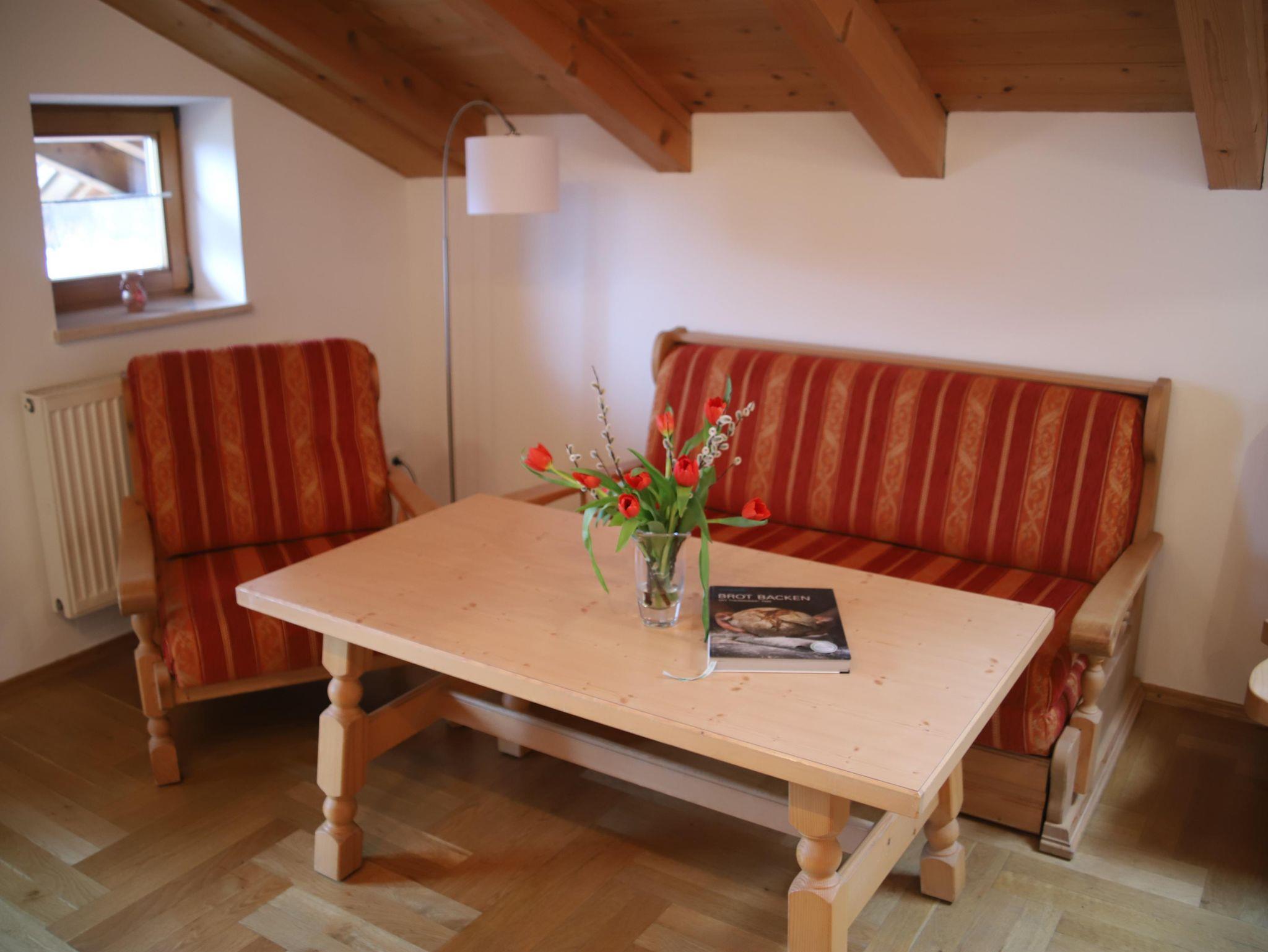 Das Schlafzimmer bestehst aus Fichtenholz für Ihren erholsamen Schlaf. Im Wohnraum befindet sich eine