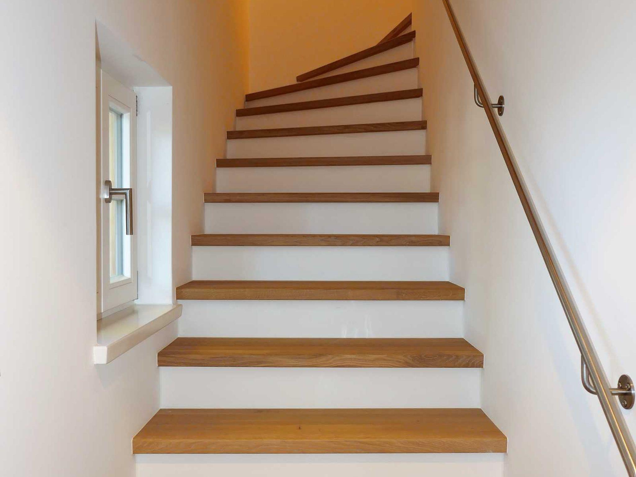 Behagliche, aber moderne Ferienwohnung mit Schwedenofen und Balkon und kleinem Sitzbereich vor dem Haus.