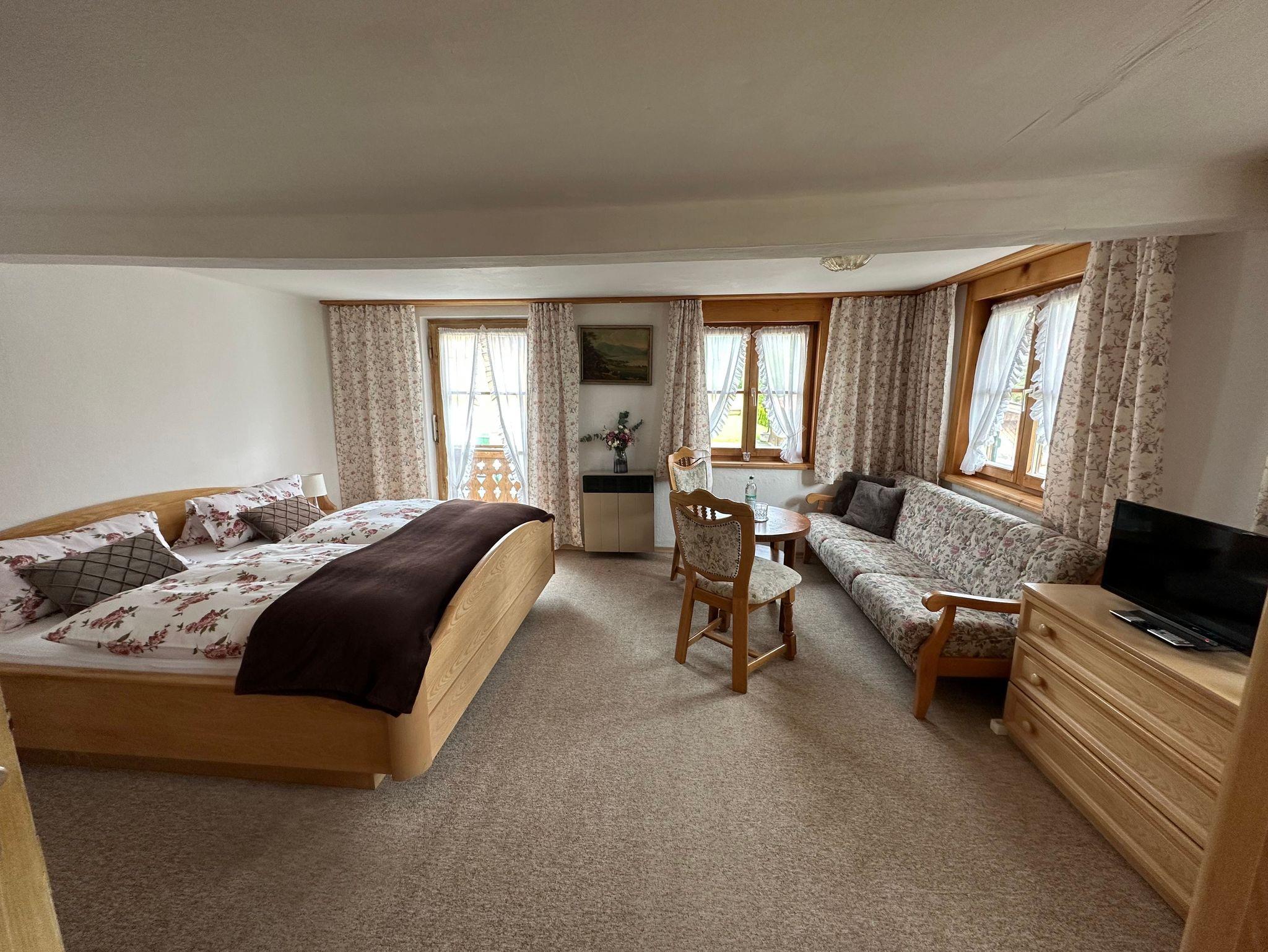 Es erwartet Sie ein, im bäuerlichen Landhausstil eingerichtetes, gemütliches Doppelzimmer mit Dusche/WC und Balkon Richtung Osten/Süden. Das Nichtraucherzimmer befindet sich auf der 1. Etage und ist ausgestattet mit Teppichboden und einer Sitzgelegenheit.