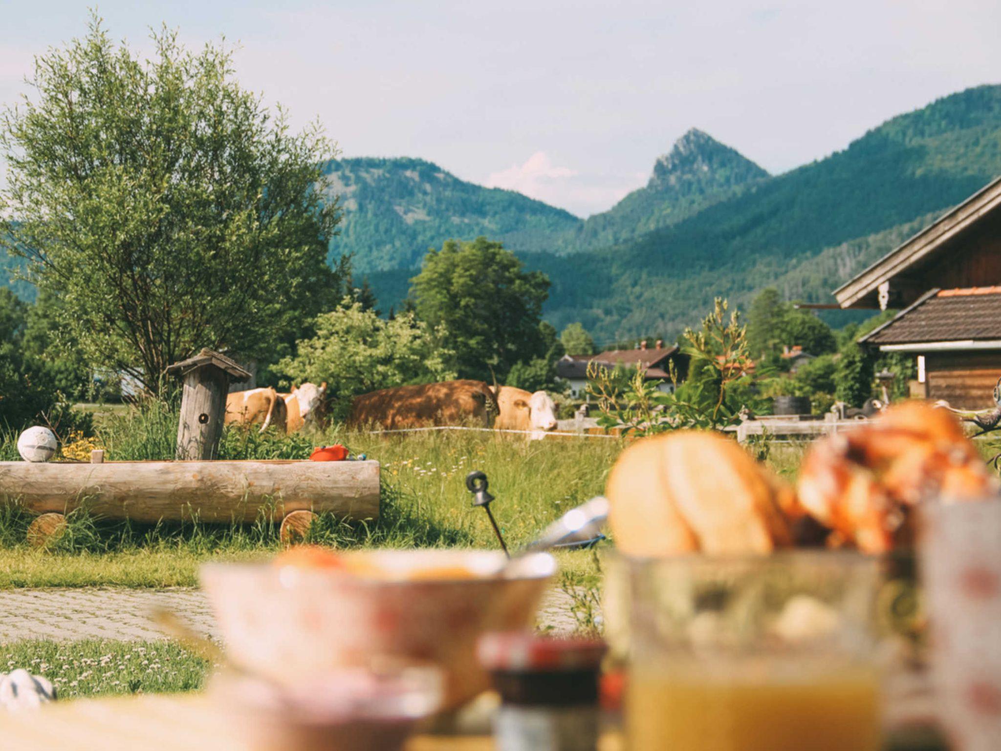 Unser Hof liegt auf ca. 780 Höhenmeter in sonniger und ruhiger Lage in der Gemeinde Kreuth. Umgeben von Wiesen und Bäumen haben Sie einen herrlichen Blick auf die Kreuther Bergwelt. Der Tegernsee sowie seine wunderschönen Promenaden liegen nur wenige Radl- oder Fahrminuten entfernt.