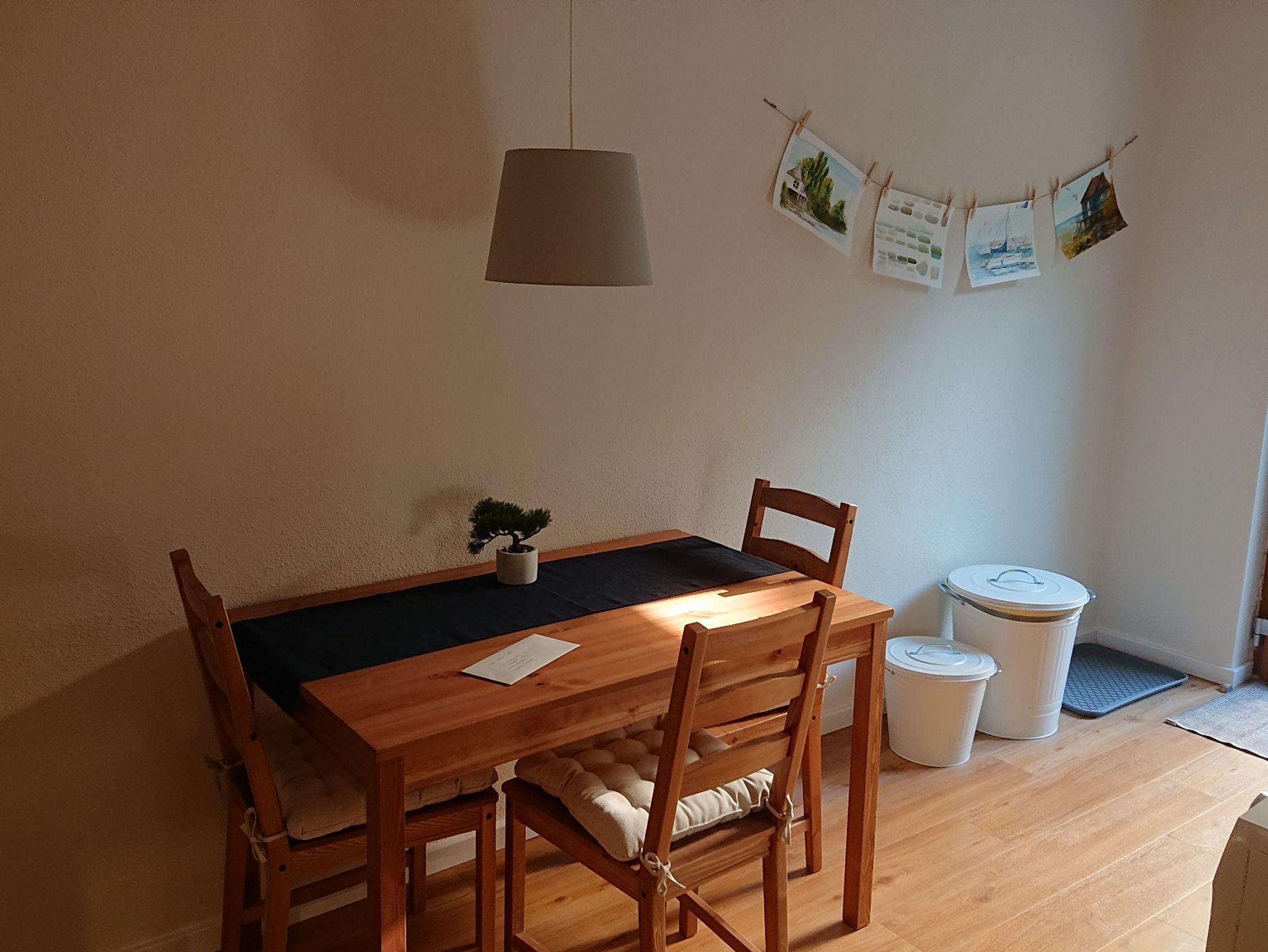 Die Wohnung wurde mit viel Liebe zum Detail eingerichtet. Die kleine, voll ausgestattete Küche bietet alles, was Sie für die Zubereitung Ihrer Mahlzeiten benötigen - incl. Mikrowelle mit Grillfunktion, Kaffeemaschiene und Spülmaschine. Zum Reinigen Ihrer Kleidung steht ein Waschtrockner zur Verfügung. In dem modernen, geschmackvoll eingerichteten Bad fühlt man sich auf Anhieb wohl. Ein Fernseher im Schlafzimmer, Wlan und einen Parkplatz auf dem Grundstück gehören ebefalls dazu.