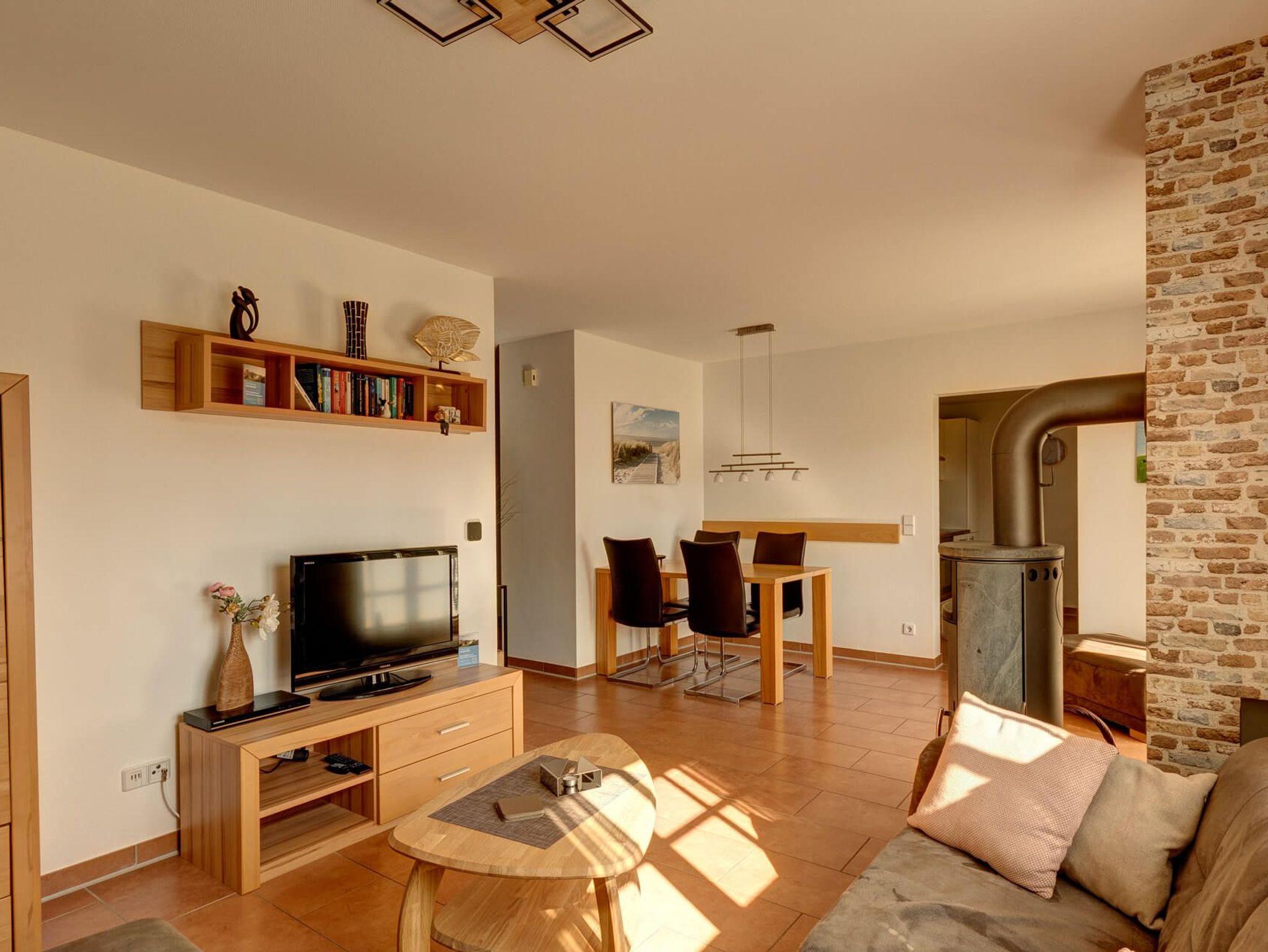 Das Herzstück bildet der offene Wohn- und Essbereich, der durch große Fenster viel Licht hereinlässt und mit seiner gemütlichen Einrichtung zum Verweilen einlädt. Hier können Sie entspannte Abende vor dem Kamin genießen, gemeinsam kochen und die Seele baumeln lassen.