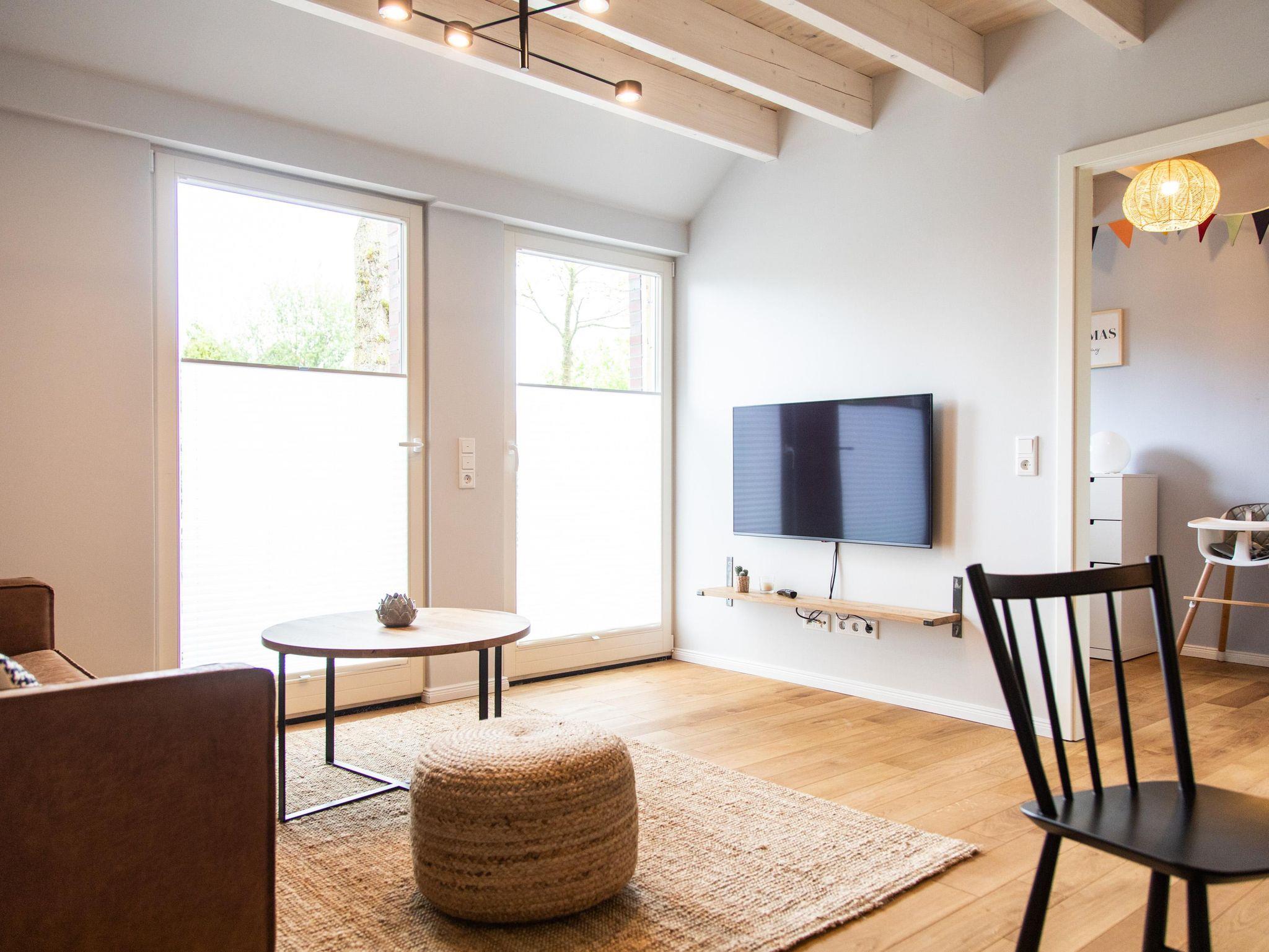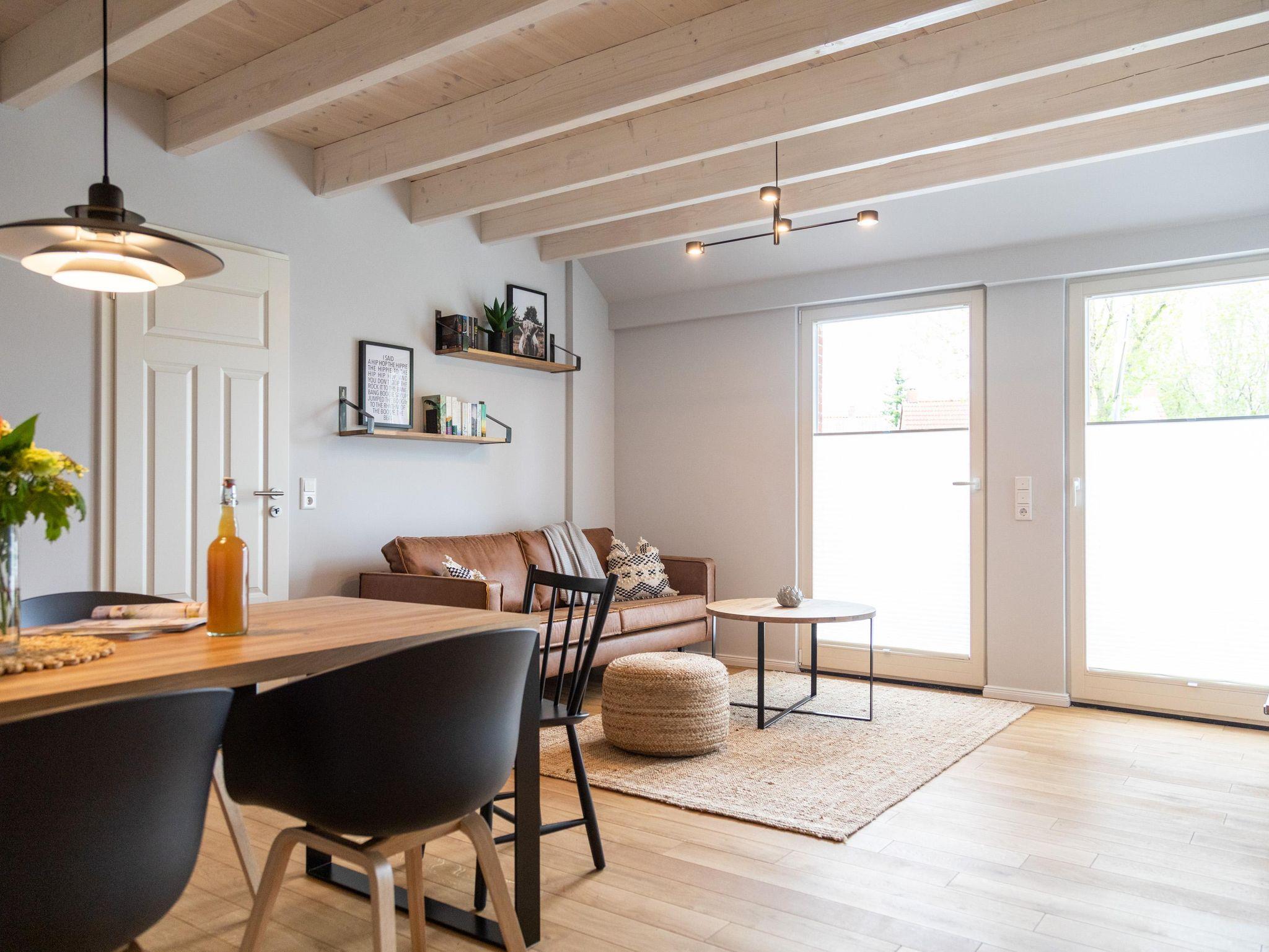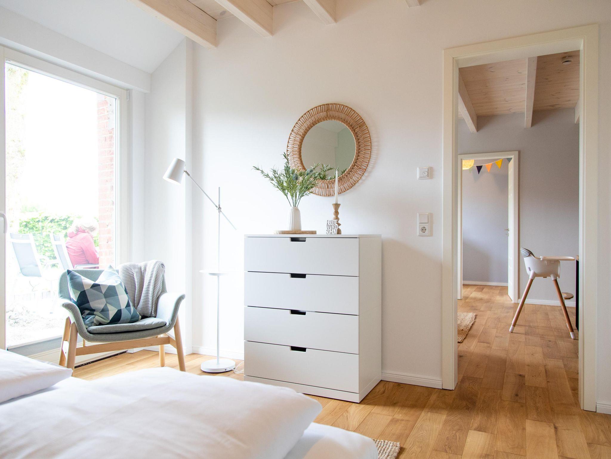Familienurlaub an der Nordsee – mit unserer Ferienwohnung Hinrich habt ihr den perfekten Wohlfühlort für eine tolle Auszeit am Meer gefunden. Die Unterkunft liegt ebenerdig im historischen Scheunentraktes des liebevoll restaurierten Gulfhofes und bietet mit 69 qm genug Platz für einen entspannten Familienaufenthalt. Der Charme des alten Hofes wird Euch begeistern! Hier könnt ihr dem stressigen Alltag entfliehen. Für einen rundum komfortablen Urlaub sorgt die moderne Ausstattung der Unterkunft mit Echtholzböden, Fußbodenheizung, Smart-TV und bodentiefen Fenstern. Das Herz der Wohnung bietet der harmonische Wohn-/Essbereich, der sich nahtlos an die voll ausgestattete Küche anschließt. Kochliebhaber kommen hier voll auf ihre Kosten. Zwei separate Schlafzimmer sorgen für erholsame Nächte. Schlafzimmer 1 ist ein gemütlicher Rückzugsort mit Doppelbett und komfortablen Matratzen für die Eltern, ein eigens vom Tischler konzipiertes Hochbett im Schlafzimmer 2 bietet Platz für 2 Kinder. Das Bad mit Dusche und Badewanne lässt keine Wünsche offen. Für kleine Nordlichter stehen ein Kinderhochstuhl, Kinderreisebett und Kindergeschirr bereit. Im Kinderzimmer ist neben einer bunten Auswahl von Kinderbüchern, Bausteinen und Spielen auch ein kleiner Mal-und Spieltisch vorhanden.