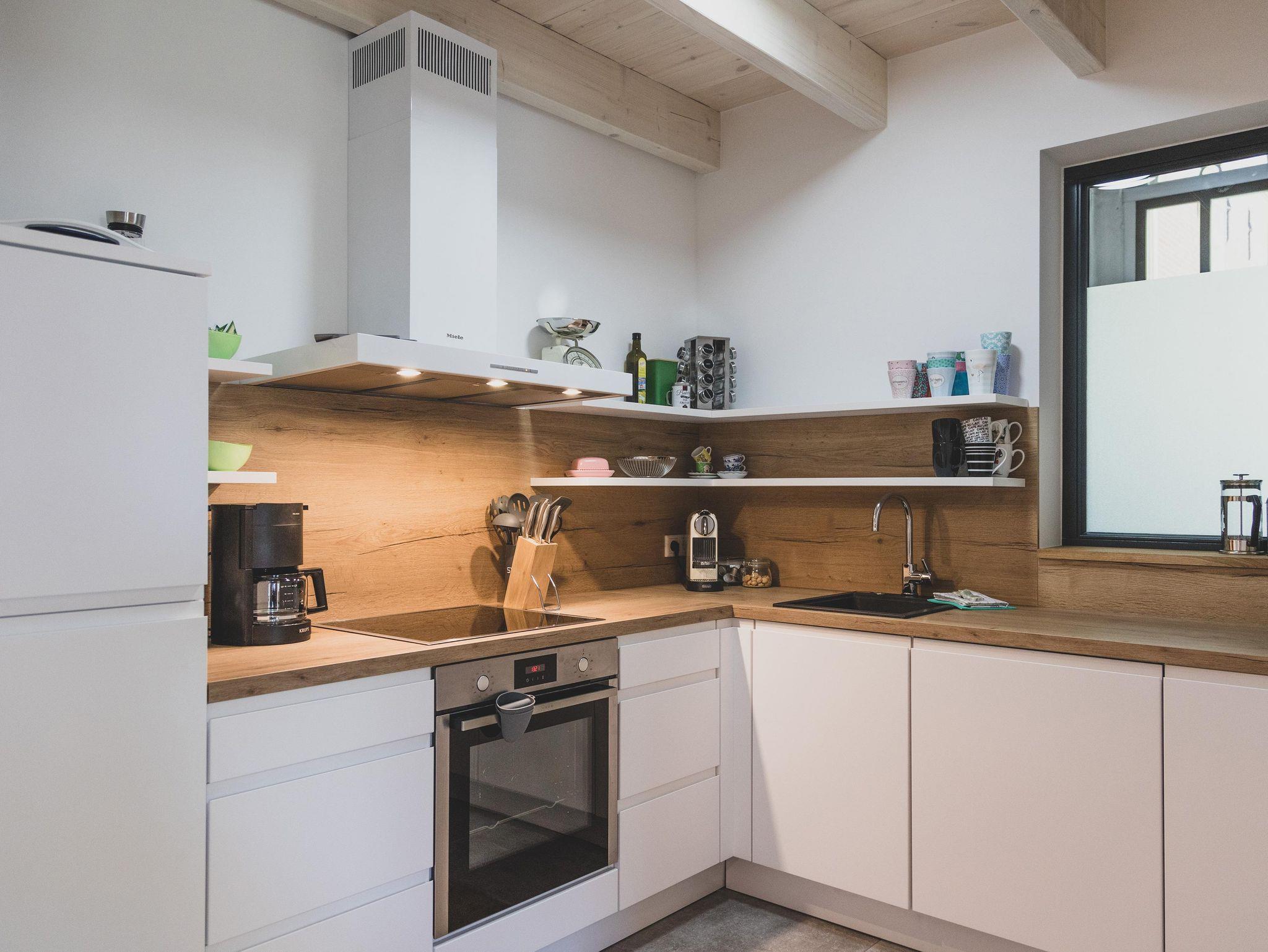 In der voll ausgestatteten Küche finden Sie alles, was das Kochen im Urlaub zur puren Freude werden lässt – Induktionskochfeld, Backofen mit Pyrolyse, Backformen, Mikrowelle, Toaster, Kaffee-, Nespressomaschine, Geschirrspülmaschine und vieles mehr.