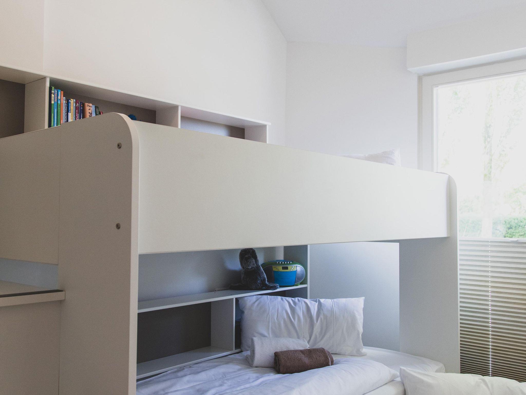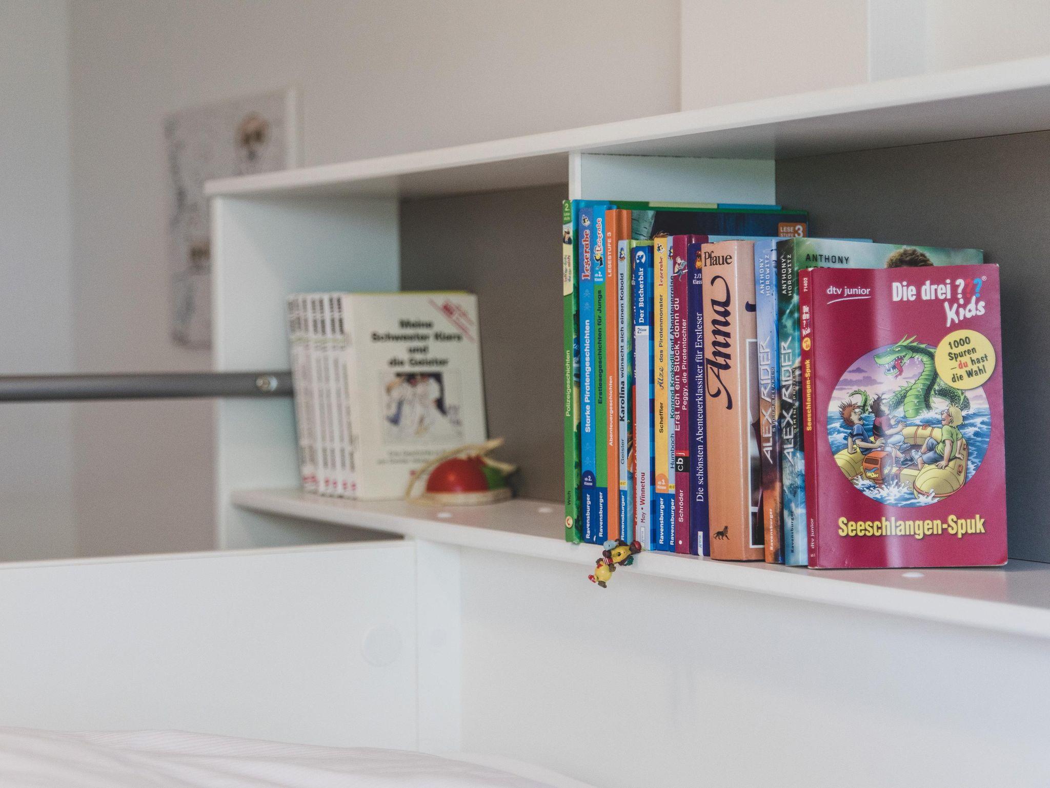 Die Wohnung verfügt über 2 Schlafräume – ein großzügiges Schlafzimmer mit einem himmlischen Doppelbett, Matratzen in unterschiedlichen Härtegraden und Schminktisch und ein weiteres Schlafzimmer mit einem Stockbett für bis zu 3 Personen, Büchern und vielen Spielsachen. Im Badezimmer sorgt eine Walk-in-Dusche für zusätzlichen Komfort und eine barrierearme Nutzbarkeit.