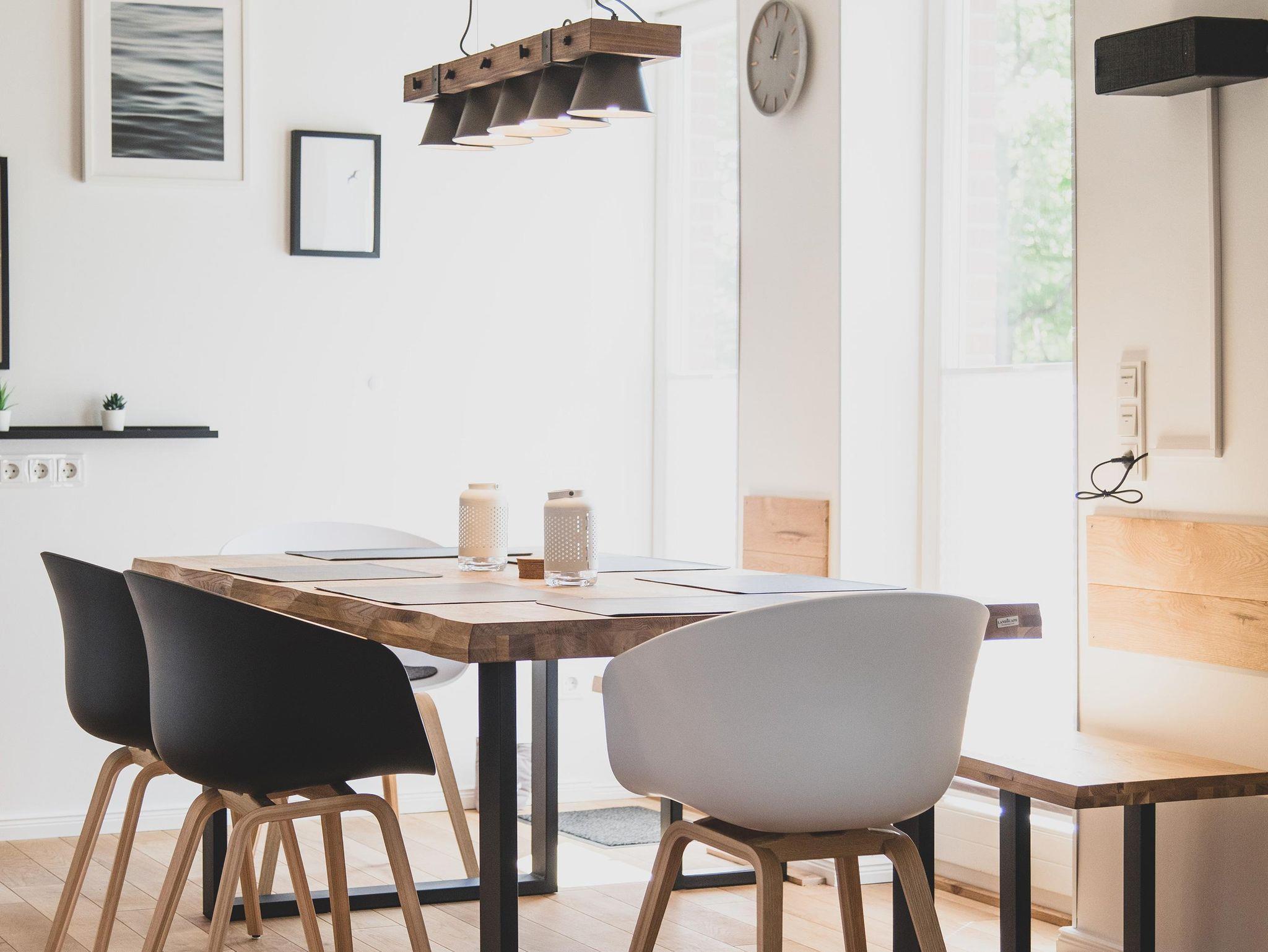 Unsere Wohnungen im Vorderhaus des Ferienhofs verfügen über hohe Decken mit durchgehend erhaltenen alten Deckenbalken. Die historischen Blockrahmenfenster und Fensterläden wurden in Handarbeit neu erstellt und runden den Anblick des denkmalgeschützten Gulfhofs ab. Im ehemaligen Scheunentrakt befinden sich durch bodentiefe Fenster helle und großzügig geschnittene Wohnungen. Alle Ferienwohnungen sind individuell, modern und mit viel Liebe zum Detail eingerichtet und bieten von der Terrasse einen erholsamen Blick auf die Grünflächen mit altem Baumbestand.