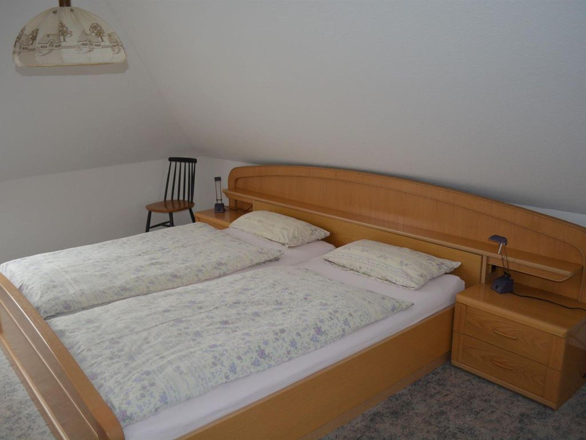 Die liebevoll eingerichtete Ferienwohnung (ca. 85 qm) befindet sich im Obergeschoss des Wohnhauses und bietet Platz für bis zu 4 Personen. Sie verfügt über zwei separate Schlafzimmer (ein Schlafzimmer mit Doppelbett 2,00 m x 2,00 m und ein Schlafzimmer mit einem französischem Bett 1,40 m x 2,00 m), einer Küche mit Cerankochfeld und Backofen, Kühlschrank mit Gefrierfach, Toaster, Wasserkocher und Kaffeemaschine. Alle Zimmer verfügen über Tageslicht und sind mit elektrischen Außenjalousien ausgestattet. Kinderreisebett sowie ein Hochstuhl werden bei Bedarf kostenlos zur Verfügung gestellt. Zur Ferienwohnung gehört auch eine eigene Terrasse welche mit Gartenmöbeln, Sonnenschirm und einem Grill ausgestattet ist. Eine Wachmaschine befindet sich ebenfalls in der Wohnung und kann gegen Gebühr genutzt werden. Handtücher und Bettwäsche werden einmalig gestellt (weitere Wechsel sind selbstverständlich gegen Gebühr möglich). Wir bitten im Interesse unserer allergischen Gäste um Verständnis, dass das Mitbringen von Haustieren nicht gestattet ist. Das Rauchen ist im Außenbereich möglich. Vermietung ausschließlich an Feriengäste, nicht an Firmen.