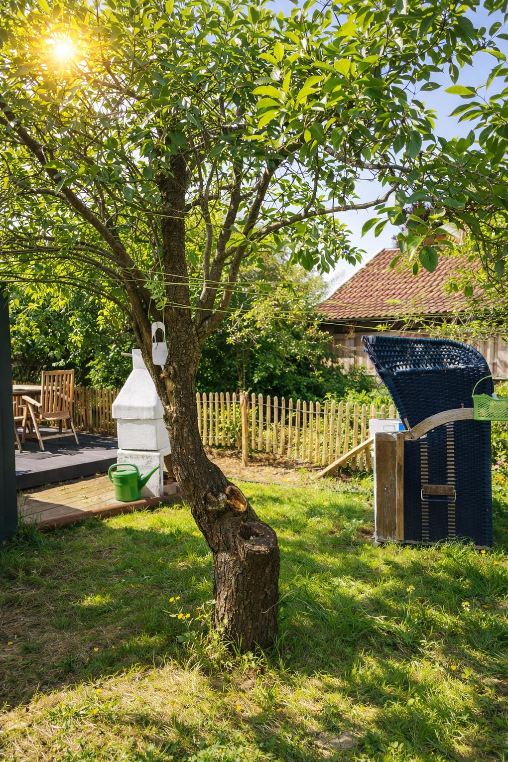 Ein weitläufiger Naturgarten wie aus einem Sommermärchen. Zwischen Pflaumen-, Mirabellen- und Apfelbäumen findet jeder seinen Lieblingsplatz: